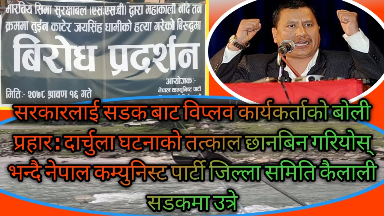 बौनिया बजार चौराहामा कोणसभा गरी विरोध सभामा बोल्दै लम्की चुहा नगर इन्चार्ज दिल बहादुर साउँदले भने भारतीय सीमा सुरक्षा बल एस.एस.बी द्वारा महाकाली नदी तर्ने क्रममा तुइन काटेर जयसिंह धामीको हत्याको विरोधमा सरकारले कुनै पनि विरोध नगरेका कारण हामी सडकमा आउन बाध्य भएर आएका हौ हाम्रो सरीलमा एक थोपा रगत भए सम्म देश र जनताको हित र अधिकारका लागि बोली रहने साउँदले बताएका हुन् ।