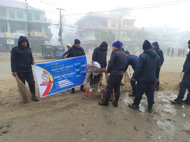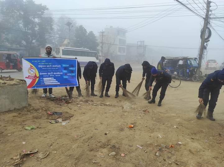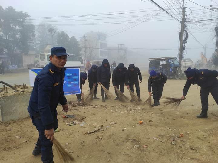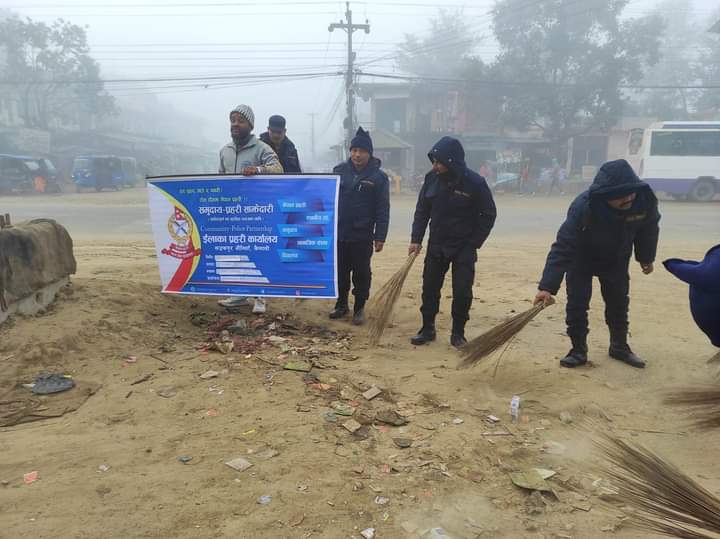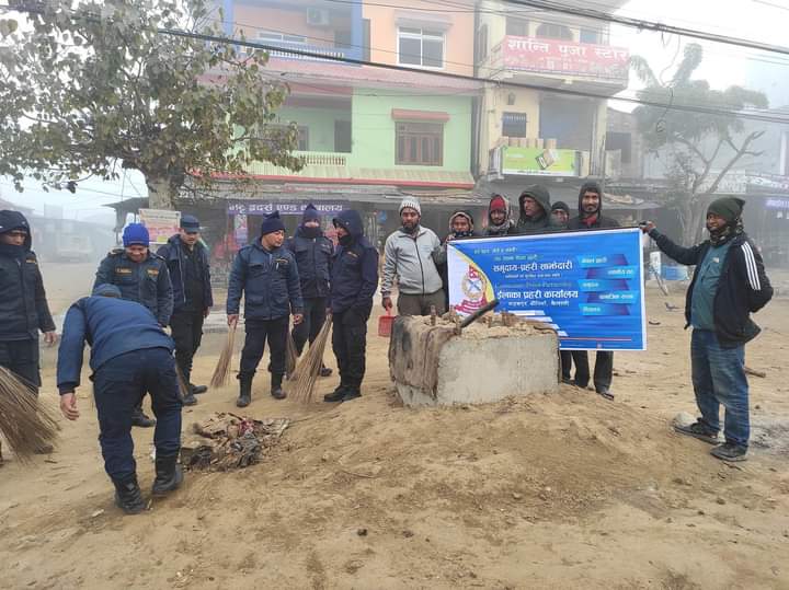 कैलाली । कैलालीको बौनियाँ बजारमा सरसफाइ गरिएको छ । मगलवार बिहान प्रहरीले बजार चोक परिसरमा सरसफाइ गरेका हुन् ।