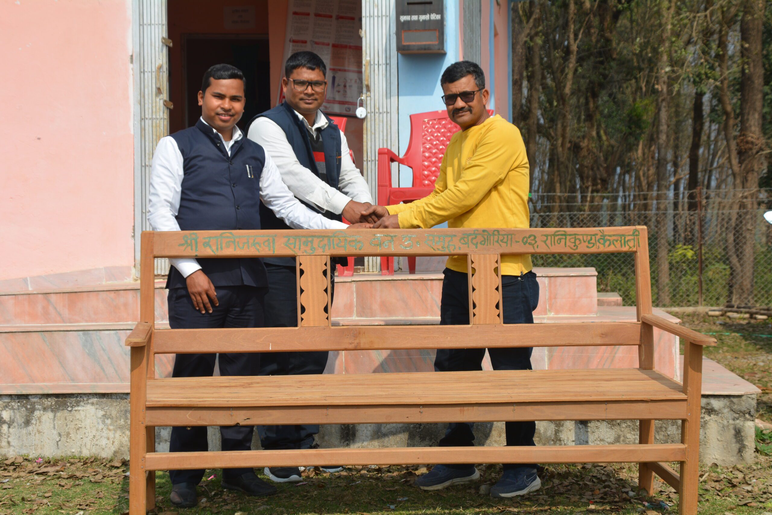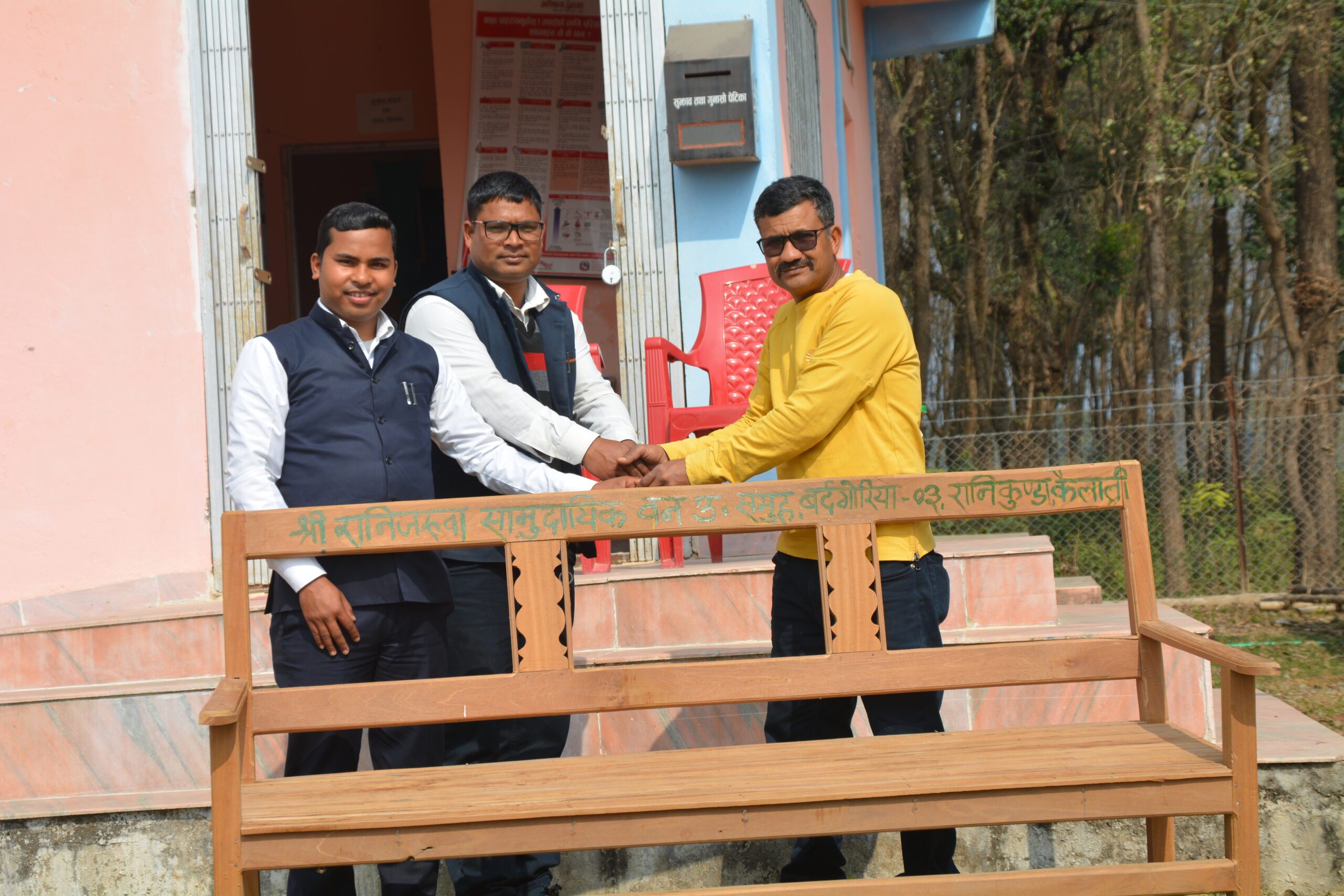 रानीजरुवा सामुदायिक वन उपभोक्ता समूहका अध्यक्ष लाल सिंह विश्वकर्माले सामुदायीक स्वास्थ्य इकाई रानीकुण्डाका प्रमुख टीकाराम चौधरीलाई एउटा आराम बेन्च स्वास्थ्य इकाई रानीकुण्डालाई हस्तान्तरण गरेका हुन । बर्दगोरिया गाउँपालिका गाउँकार्यपालिका सदस्य भिम बहादुर विश्वकर्माले आराम बेन्चको लागि पहल गर्नु भएको थियो ।