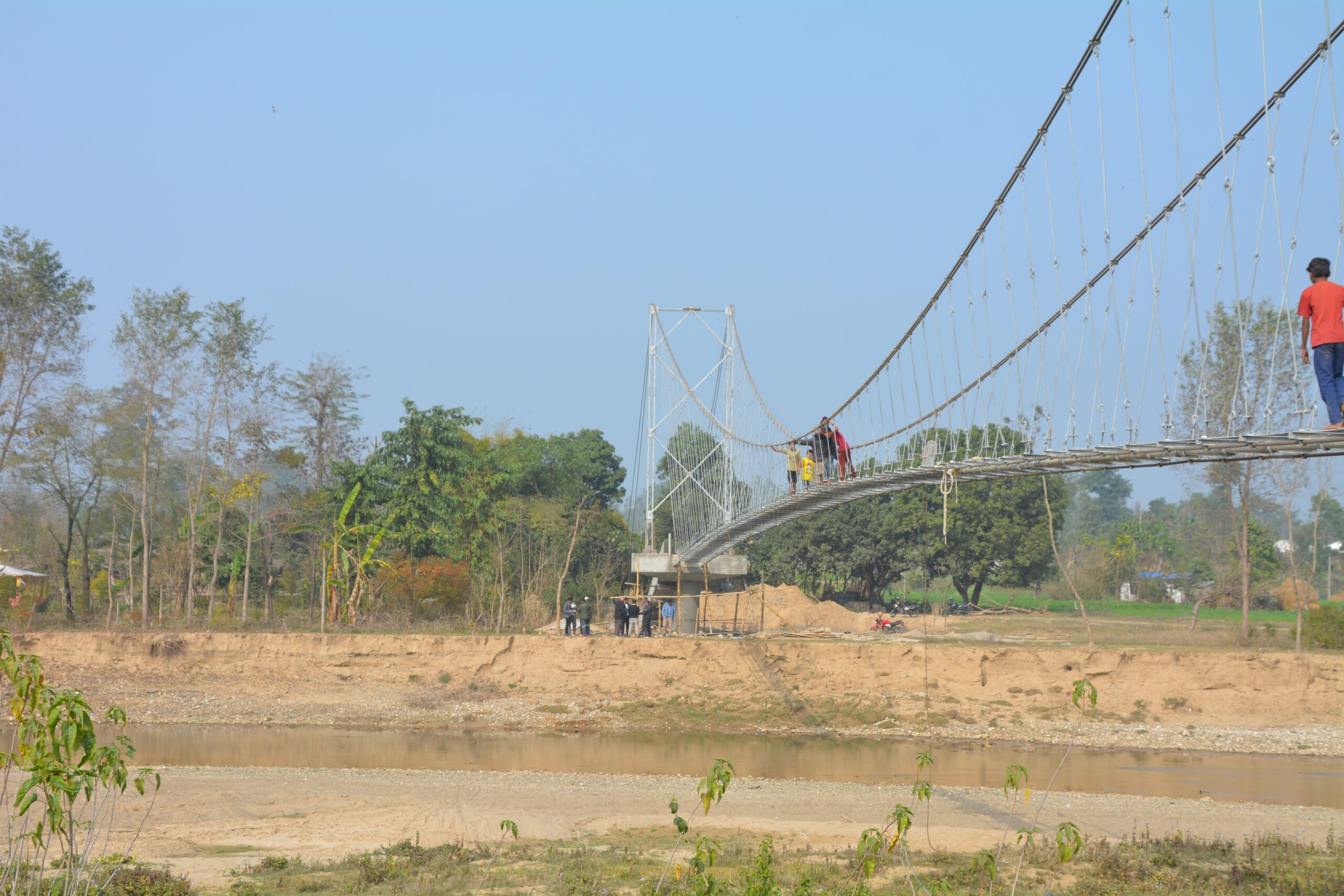 कैलाली । कैलाली जिल्लाको बर्दगोरिया गाउँपालिका वडा नम्बर ३ र ४ स्थित बुटकौवा र नौनियाँ सीमानामा रहेको काँडा खोलामा नवनिर्मित झोलुङ्गे पुलको बिहीबार उद्घाटन गरिएको छ । कुल १ सय ५.४० मी लम्बाइ रहेको छ भने चौडाइ १ मिटर २० सेन्टी रहेको झोलुङ्गे पुल विधिवत् रुपमा उद्घाटन गरिएको छ । ११८७ घरधुरी रहेको रानीकुण्डा, खैरेनी र बुटकौवा वडा नं ३ मा अन्य वडाका गाउँ र बजार जोड्ने पुल नहुँदा बर्खायाममा स्थानीय तथा विद्यार्थीलाई निकै समस्या थियो । पुल निर्माण भएपछि सम्पूर्णमा खुसियाली छाएको छ । विशेषगरी विद्यालय जाने आउने विद्यार्थीलाई झोलुङ्गे पुल नहुँदा समयमै विद्यालय आवतजावतमा निकै समस्या परेको थियो । एकसयभन्दा बढी विद्यार्थीले साइकल खोला पारि नै राख्ने गरेका थिए । पुल निर्माण भएपछि स–साना बालबालिकालाई पनि विद्यालय आउन/