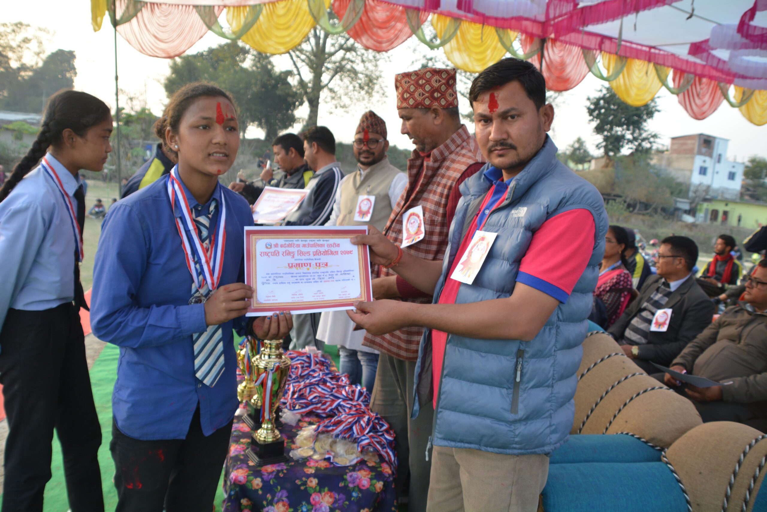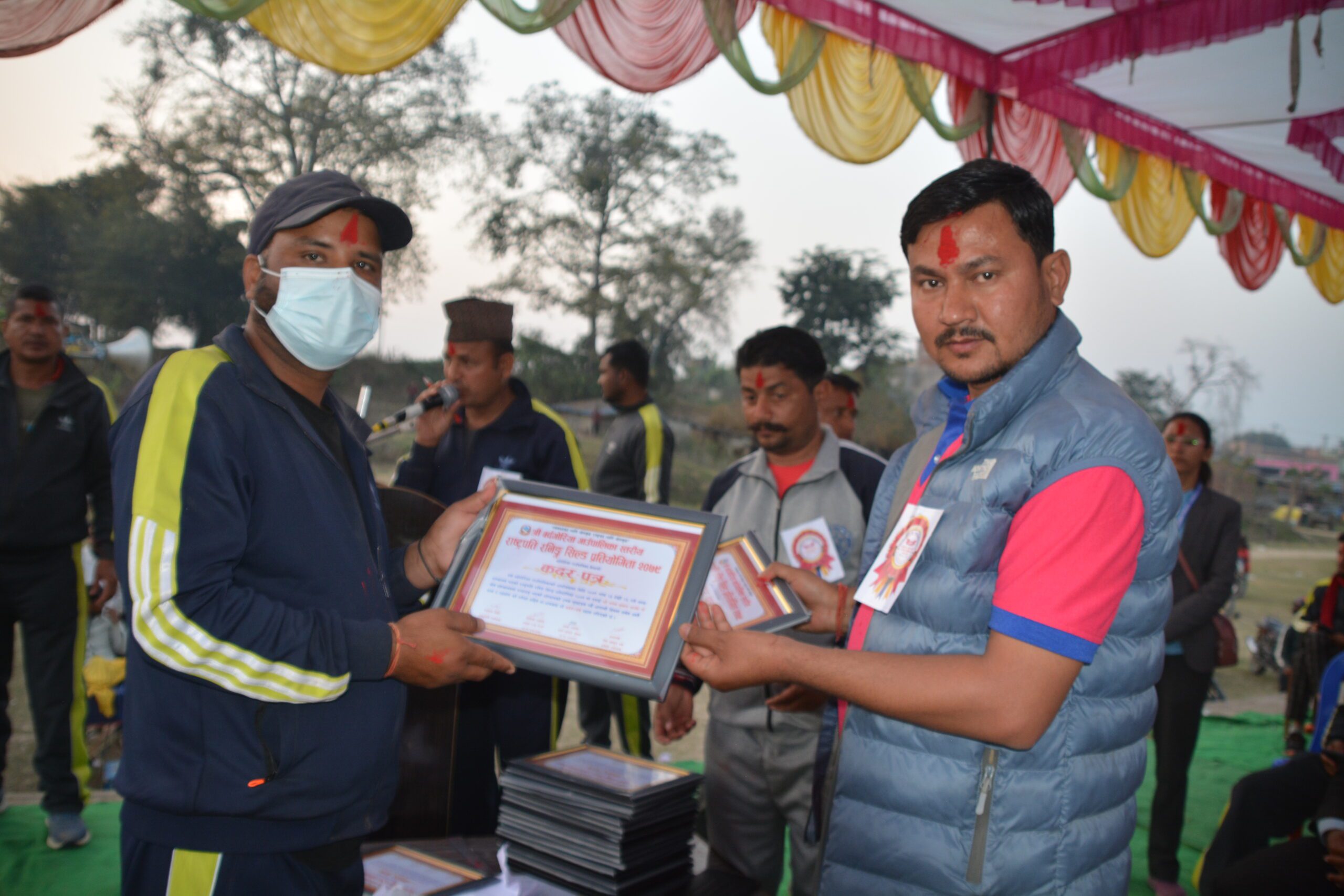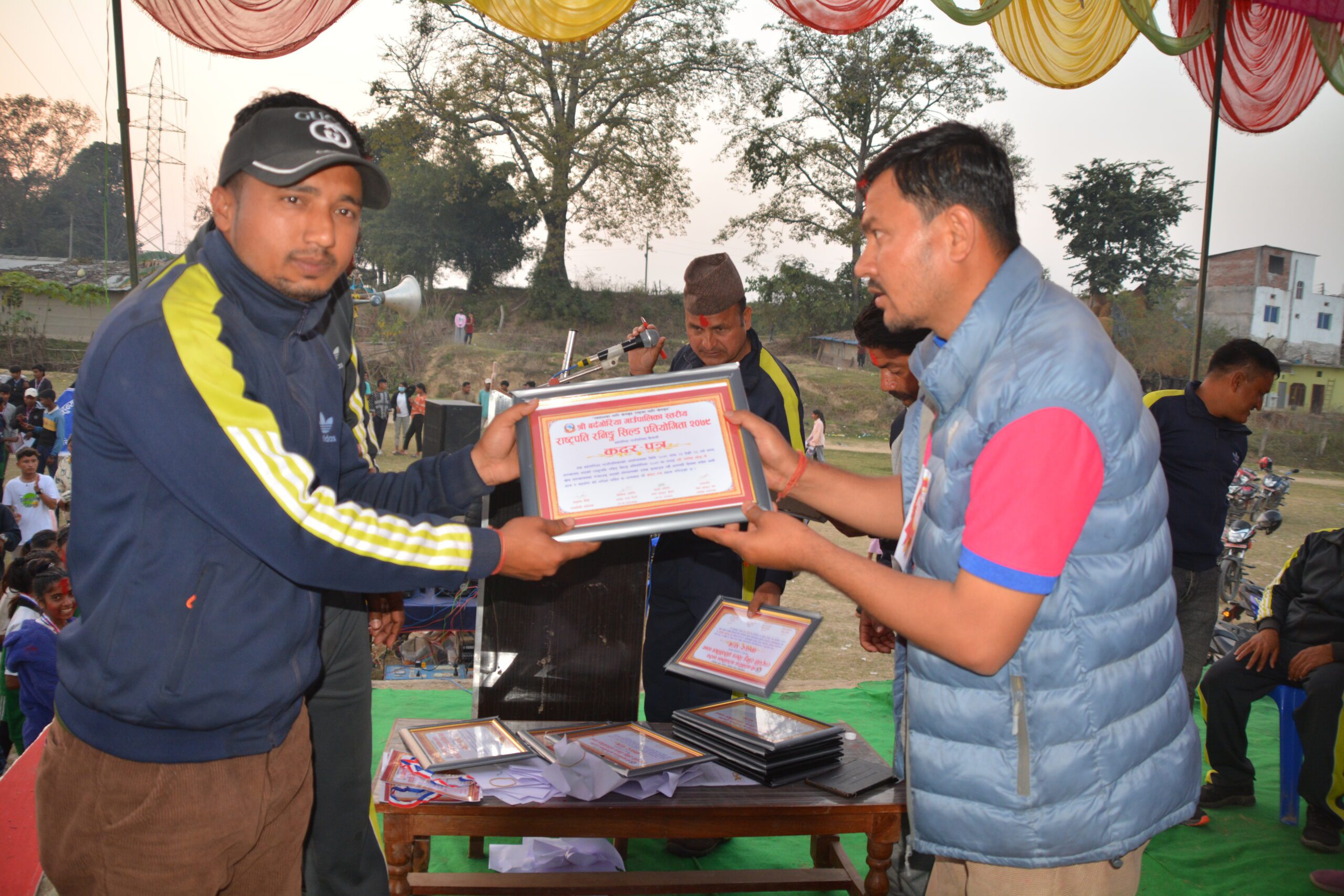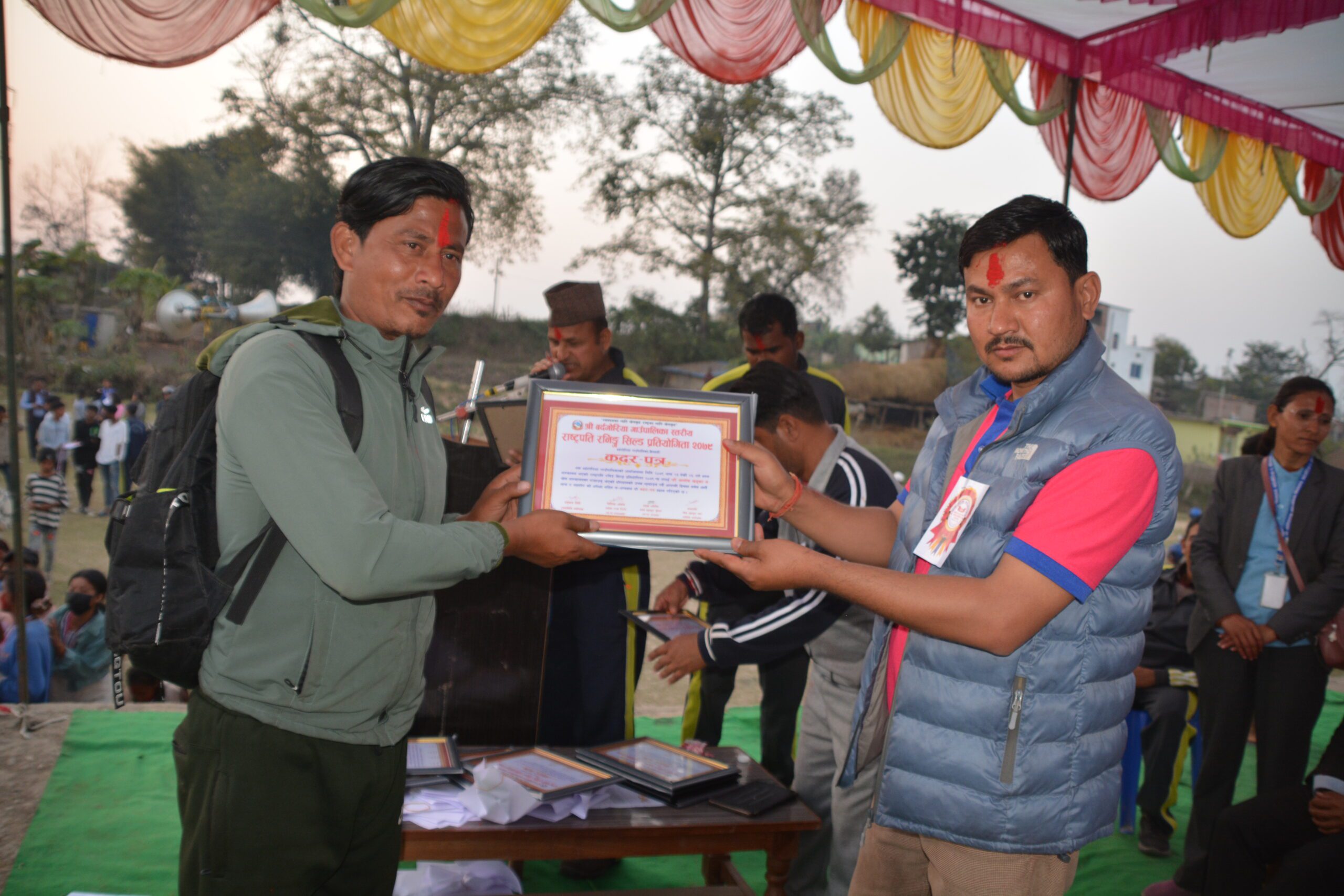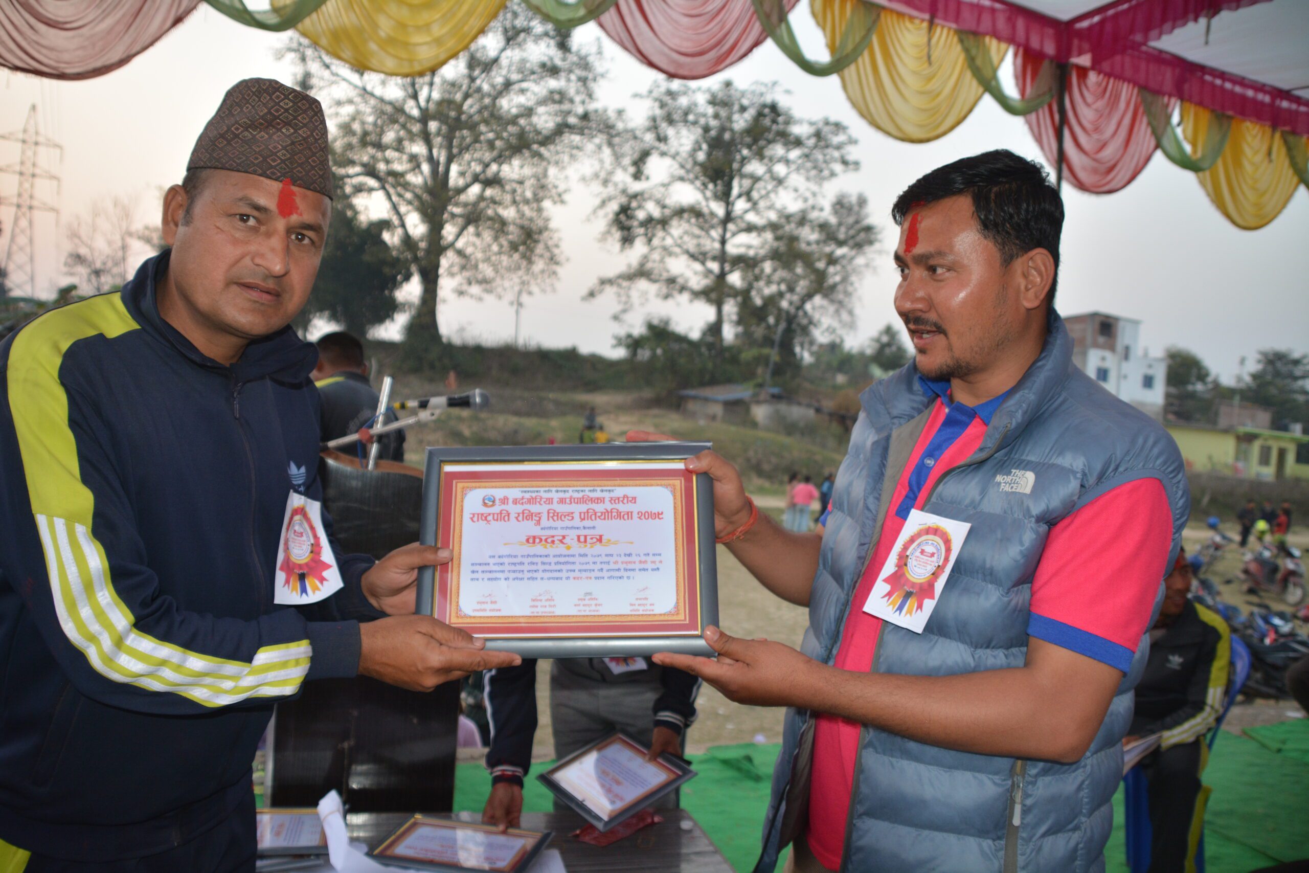 कैलाली । कैलालीको बर्दगोरिया गाउँपालिकामा गत मङ्गलवारबाट सुरु भएको पालिका स्तरीय राष्ट्रपति रनिङ्ग शिल्ड प्रतियोगिता सम्पन्न भएको छ । प्रतियोगितामा कक्षा ६ देखी १२ सम्मका १३ विद्यालयले भाग लिएका थिए । प्रतियोगिताका अधिकांश खेल विद्यालाई वसन्त मुरारी माध्यमिक विद्यालयले कब्जा गरेको छ । १० स्वर्ण, ७ रजत र २ कास्य सहित वसन्त मुरारी प्रथम हुँदा ५ स्वर्ण र ३ कास्य सहित नोबेल एकेडेमी दोस्रो बनेको छ । यस्तै ३ स्वर्ण, ८ रजत र २ कास्य सहित कालिका मा.वि. नौनिया तृतीय बनेको छ । प्रतियोगितामा मा.वि. कोटातुल्सीपुरले ३ स्वर्ण, ४ रजत र ७ कास्य हात पारेको छ । जगदम्बिके भगवती मा.वि. खैरेनीले ३ स्वर्ण, ४ रजत र ४ कास्य, महुन्याल मा.वि. बासकोटीले ३ स्वर्ण, २ रजत र ४ कास्य, बालकन्या मा.वि. कट्टीपुरले २ स्वर्ण, २ रजत र ७ कास्य र न्यु वालवाटीका मा.वि. बौनियाँले १ स्वर्ण, २ रजत र ३ कास्य हात पारेको छ । यस्तै द सनराईज मा.वि.बौनियाँले २ रजत र १ कास्य, आदर्श सामुदायिक मा.वि.ले १ कास्य, र माइकी मिडियमले १ कास्य प्राप्त गरेका छन् । प्रतियोगितामा १ सय, २ सय, ४ सय, ८ सय, १ हजार ५ सय र ३ हजार मिटर दौड, कबड्डी, १ सय मिटर र ४ सय मिटर रिले, भलिबल, हाई जम्प, लङ्ग जम्प, सट फुट, त्रिपल जम्प र ज्याइबलिन थ्रो गरी १५ विद्यामा खेल खेलाइएको थियो । जिल्ला स्तरमा हुने राष्ट्रपति रनिङ्ग शिल्डलाई मध्यनजर गरी सञ्चालन गरिएको यस प्रतियोगिताबाट खेलाडी तथा टिम समेट छनौट भएका छन् । हरेक खेल विद्याका प्रथम र द्धितिय हुने टिम तथा खेलाडी जिल्ला स्तरको प्रतियोगितामा सहभागी हुने छन् । यस अघि २०७६ मा जिल्ला स्तरमा भएको प्रतियोगितामा वसन्त मुरारी मा.वि.ले कबड्डी विद्यामा उपाधि हात पारेको थियो ।