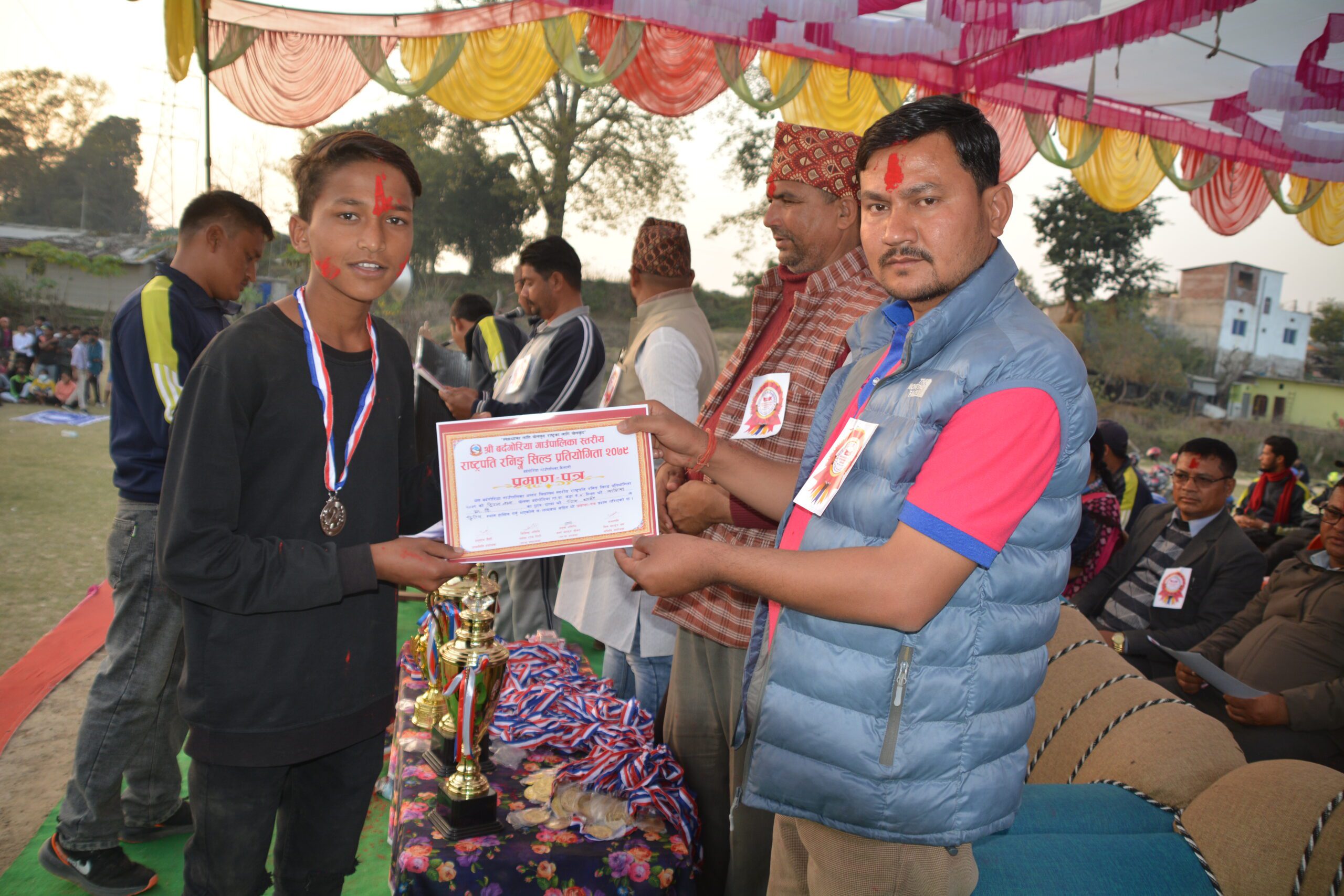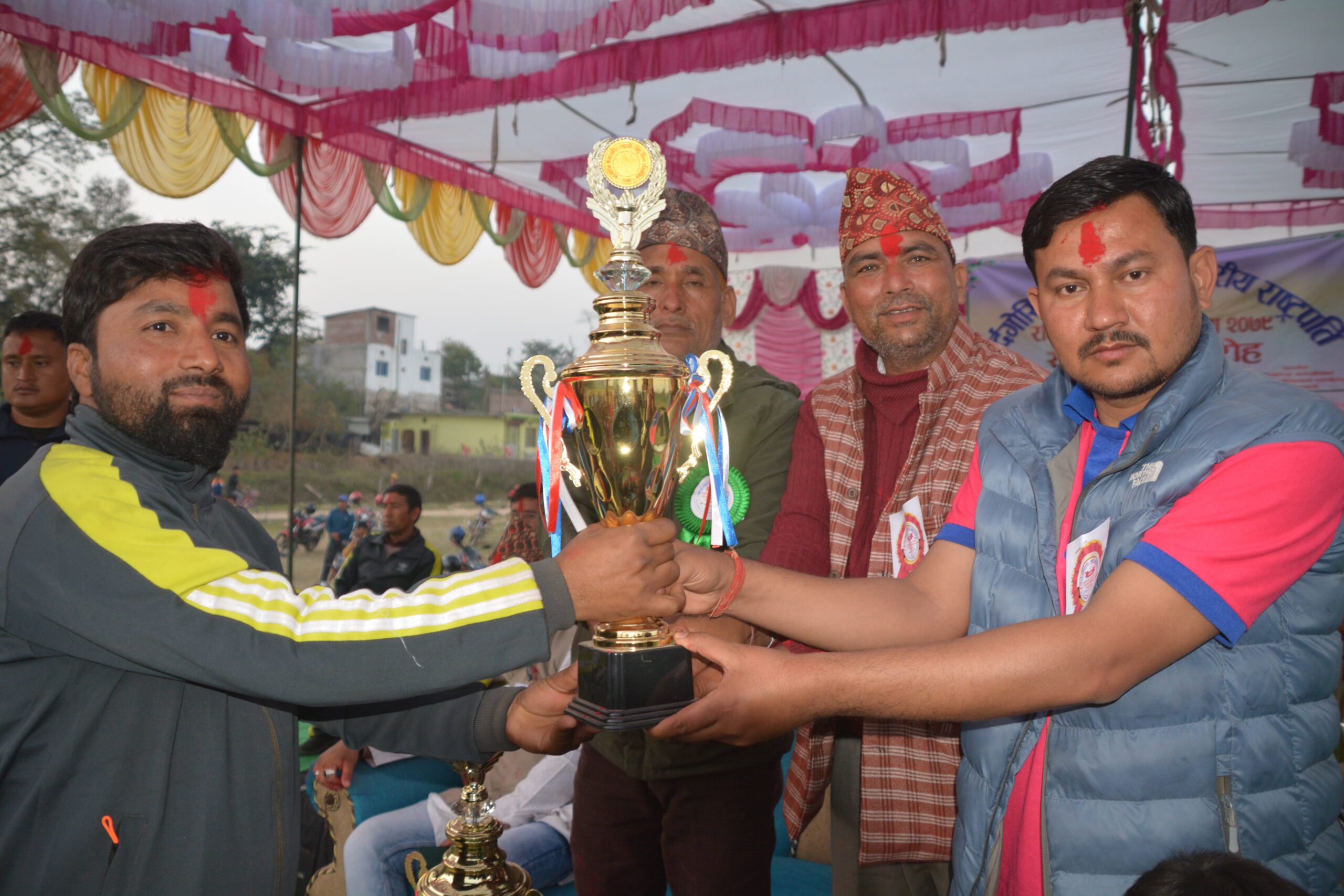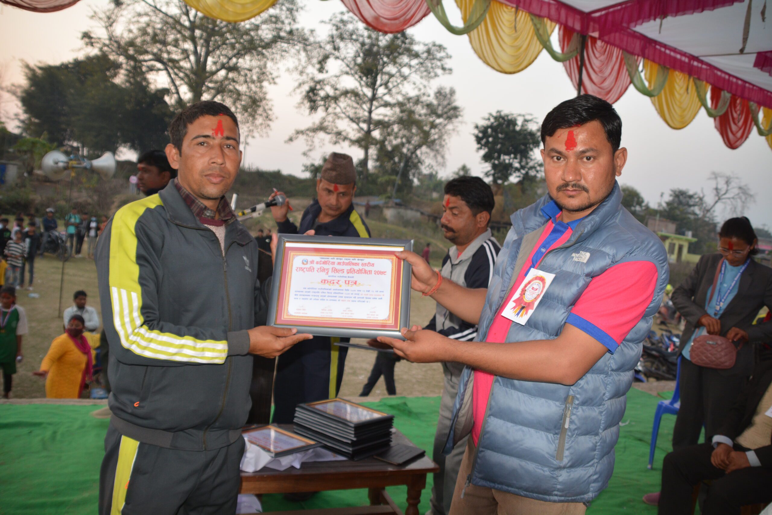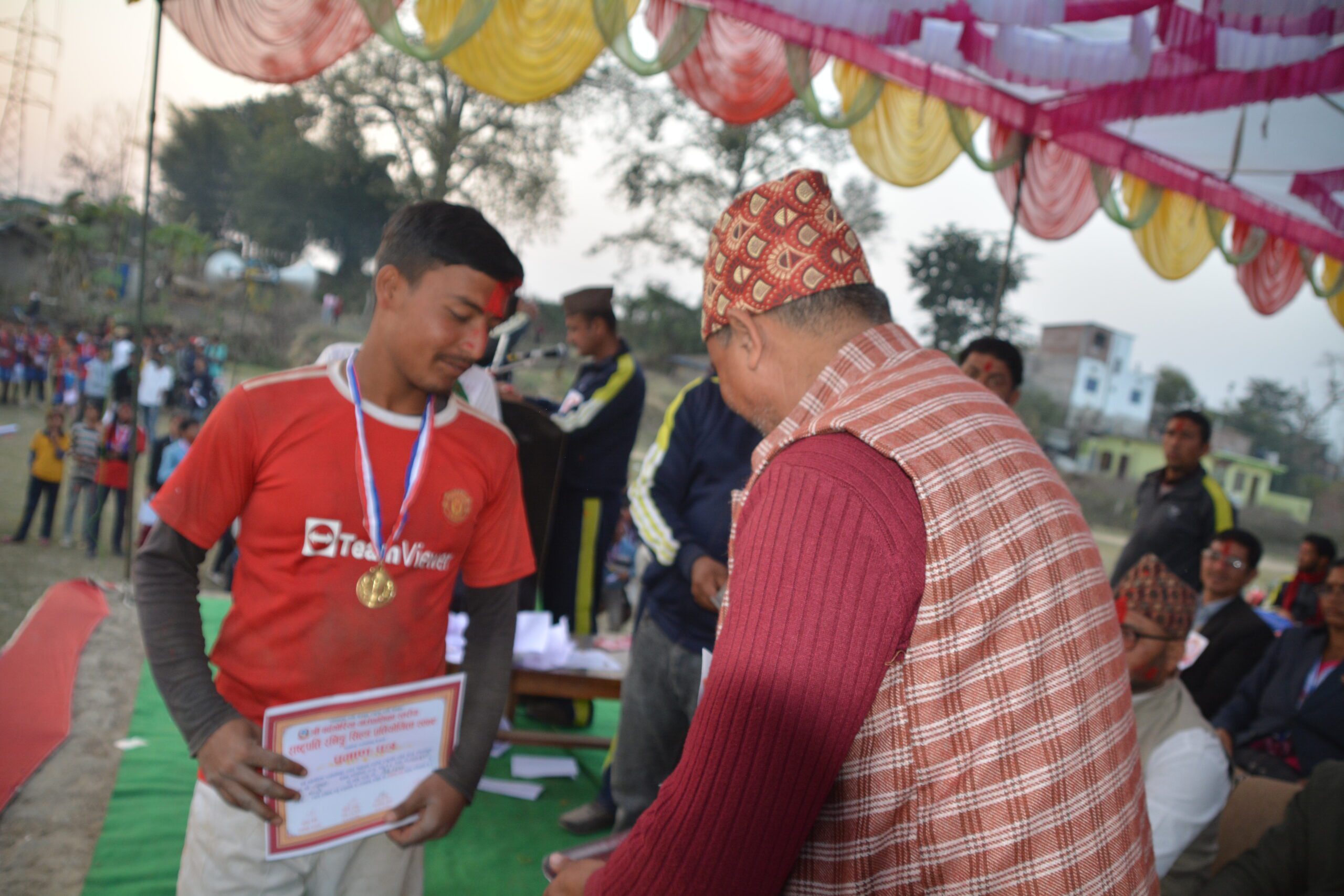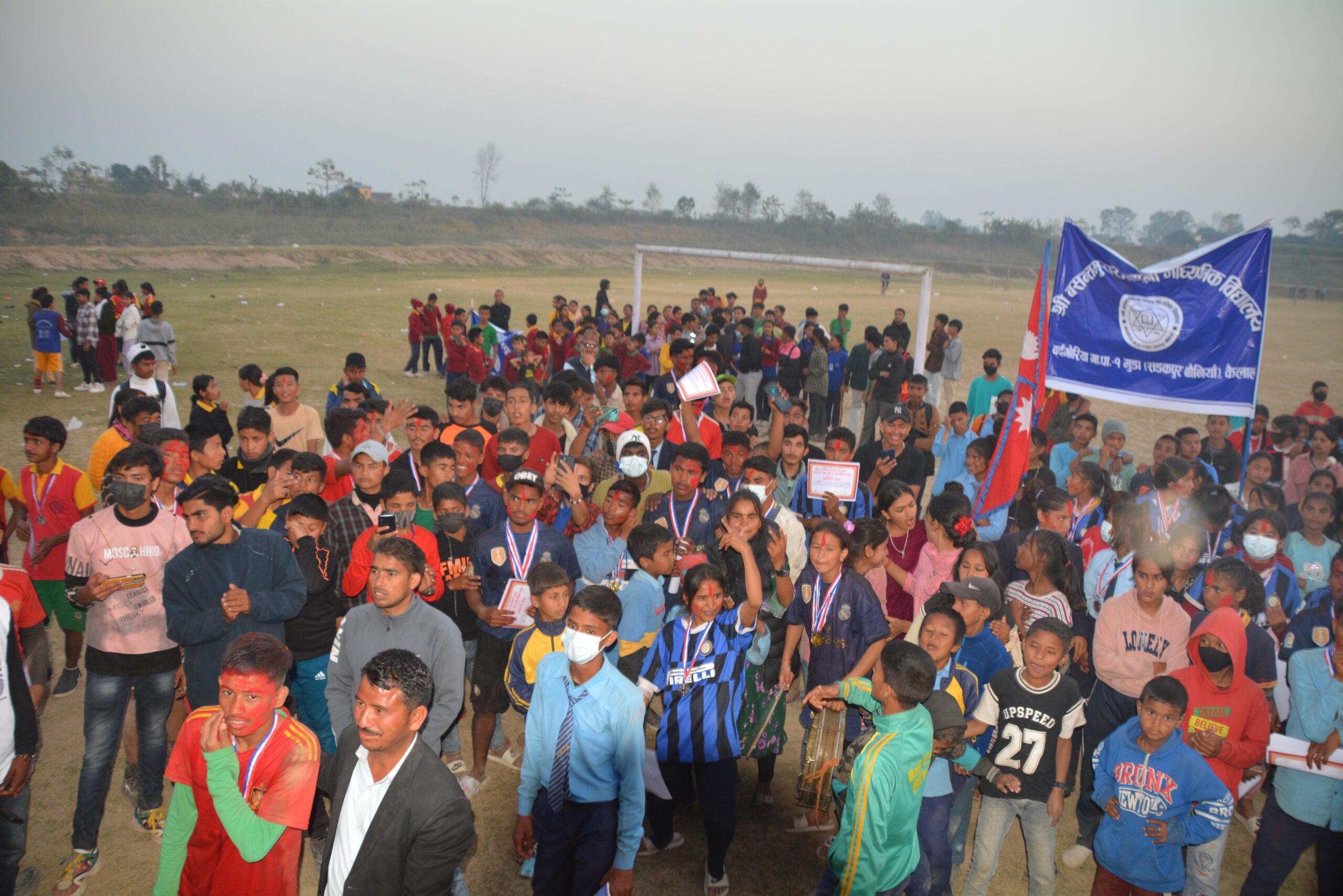 कैलाली । कैलालीको बर्दगोरिया गाउँपालिकामा गत मङ्गलवारबाट सुरु भएको पालिका स्तरीय राष्ट्रपति रनिङ्ग शिल्ड प्रतियोगिता सम्पन्न भएको छ । प्रतियोगितामा कक्षा ६ देखी १२ सम्मका १३ विद्यालयले भाग लिएका थिए । प्रतियोगिताका अधिकांश खेल विद्यालाई वसन्त मुरारी माध्यमिक विद्यालयले कब्जा गरेको छ । १० स्वर्ण, ७ रजत र २ कास्य सहित वसन्त मुरारी प्रथम हुँदा ५ स्वर्ण र ३ कास्य सहित नोबेल एकेडेमी दोस्रो बनेको छ । यस्तै ३ स्वर्ण, ८ रजत र २ कास्य सहित कालिका मा.वि. नौनिया तृतीय बनेको छ । प्रतियोगितामा मा.वि. कोटातुल्सीपुरले ३ स्वर्ण, ४ रजत र ७ कास्य हात पारेको छ । जगदम्बिके भगवती मा.वि. खैरेनीले ३ स्वर्ण, ४ रजत र ४ कास्य, महुन्याल मा.वि. बासकोटीले ३ स्वर्ण, २ रजत र ४ कास्य, बालकन्या मा.वि. कट्टीपुरले २ स्वर्ण, २ रजत र ७ कास्य र न्यु वालवाटीका मा.वि. बौनियाँले १ स्वर्ण, २ रजत र ३ कास्य हात पारेको छ । यस्तै द सनराईज मा.वि.बौनियाँले २ रजत र १ कास्य, आदर्श सामुदायिक मा.वि.ले १ कास्य, र माइकी मिडियमले १ कास्य प्राप्त गरेका छन् । प्रतियोगितामा १ सय, २ सय, ४ सय, ८ सय, १ हजार ५ सय र ३ हजार मिटर दौड, कबड्डी, १ सय मिटर र ४ सय मिटर रिले, भलिबल, हाई जम्प, लङ्ग जम्प, सट फुट, त्रिपल जम्प र ज्याइबलिन थ्रो गरी १५ विद्यामा खेल खेलाइएको थियो । जिल्ला स्तरमा हुने राष्ट्रपति रनिङ्ग शिल्डलाई मध्यनजर गरी सञ्चालन गरिएको यस प्रतियोगिताबाट खेलाडी तथा टिम समेट छनौट भएका छन् । हरेक खेल विद्याका प्रथम र द्धितिय हुने टिम तथा खेलाडी जिल्ला स्तरको प्रतियोगितामा सहभागी हुने छन् । यस अघि २०७६ मा जिल्ला स्तरमा भएको प्रतियोगितामा वसन्त मुरारी मा.वि.ले कबड्डी विद्यामा उपाधि हात पारेको थियो ।