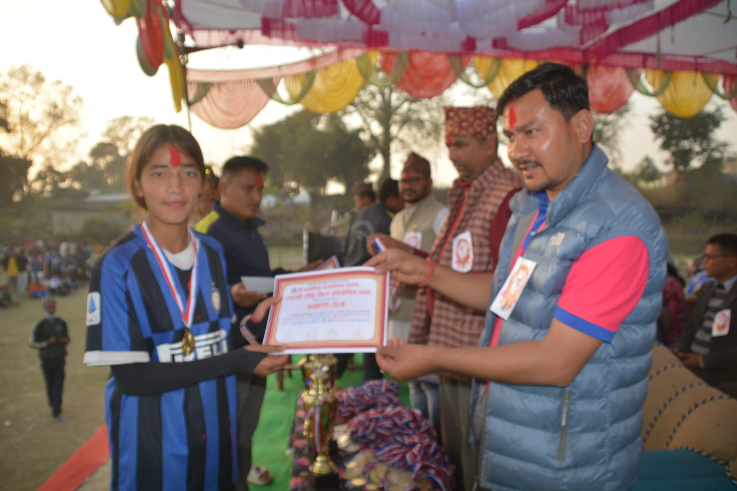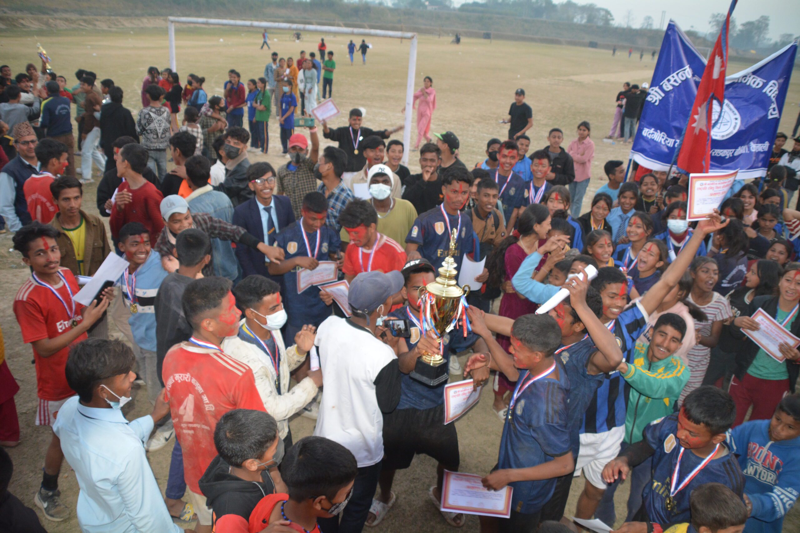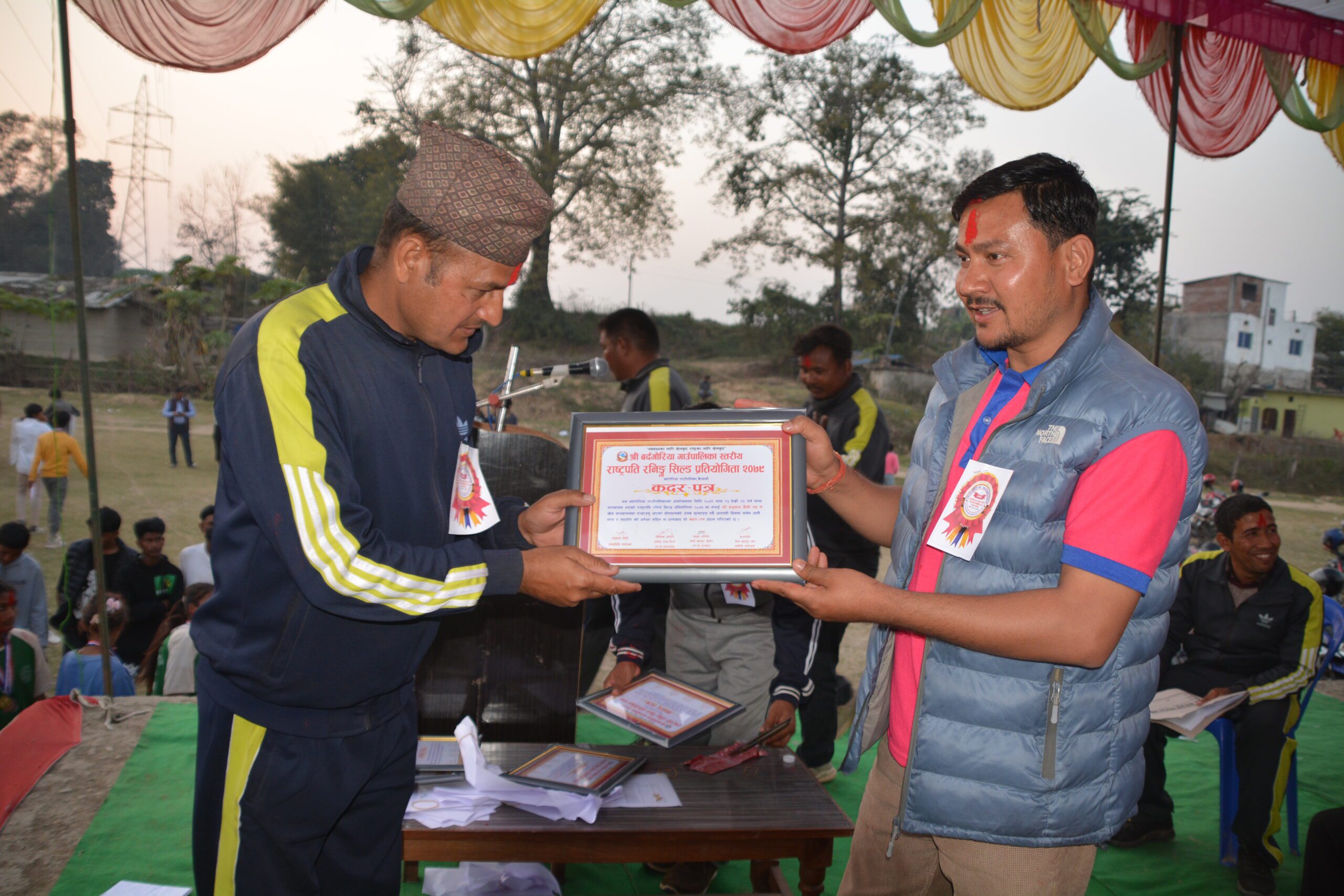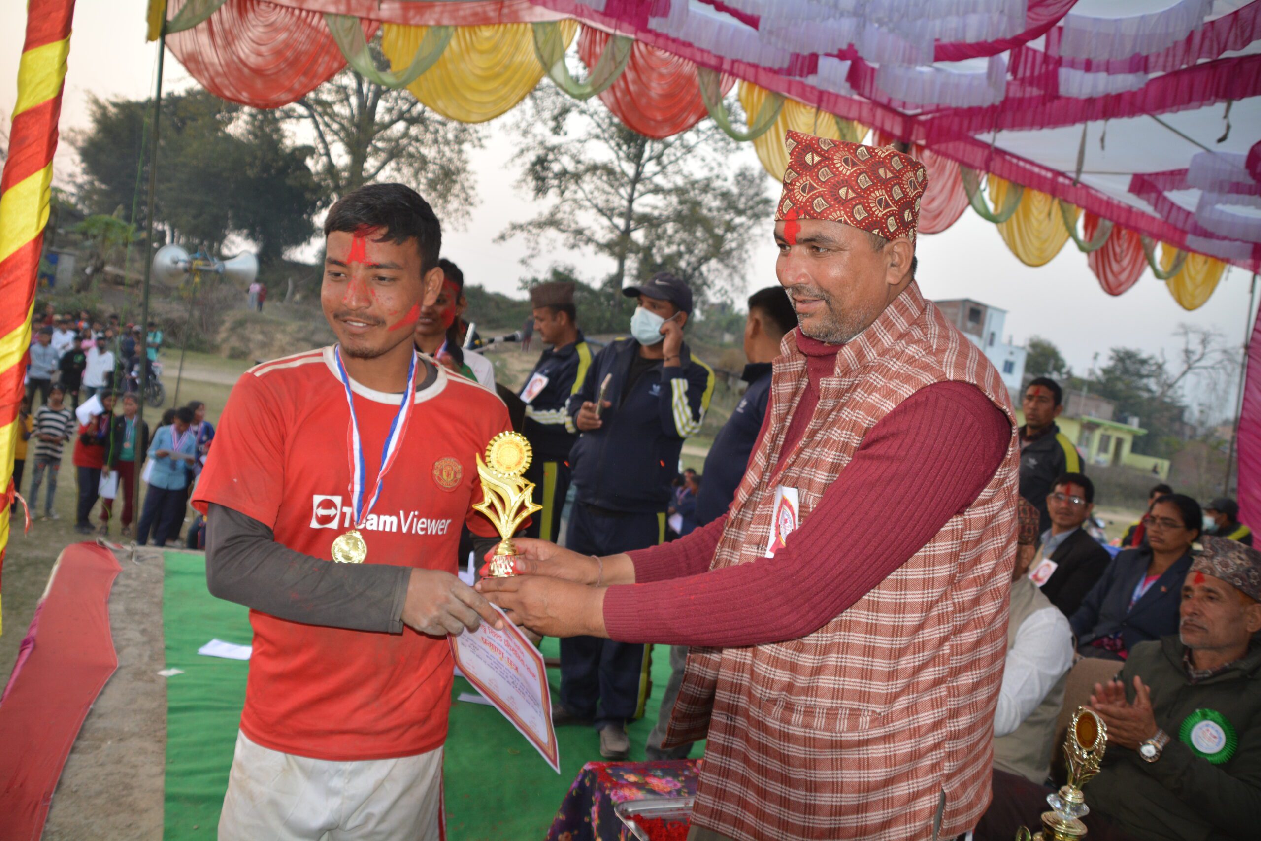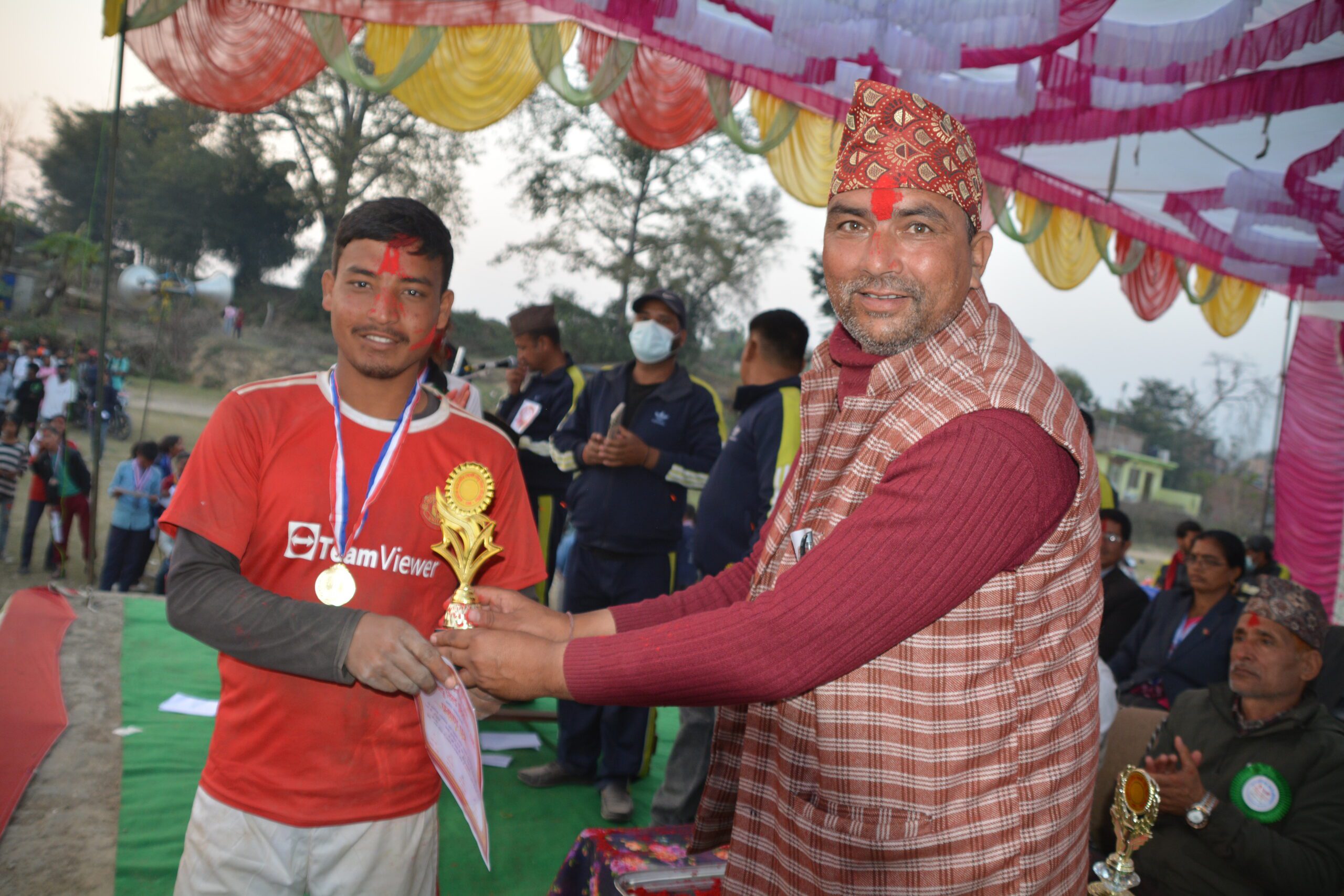 कैलाली । कैलालीको बर्दगोरिया गाउँपालिकामा गत मङ्गलवारबाट सुरु भएको पालिका स्तरीय राष्ट्रपति रनिङ्ग शिल्ड प्रतियोगिता सम्पन्न भएको छ । प्रतियोगितामा कक्षा ६ देखी १२ सम्मका १३ विद्यालयले भाग लिएका थिए । प्रतियोगिताका अधिकांश खेल विद्यालाई वसन्त मुरारी माध्यमिक विद्यालयले कब्जा गरेको छ । १० स्वर्ण, ७ रजत र २ कास्य सहित वसन्त मुरारी प्रथम हुँदा ५ स्वर्ण र ३ कास्य सहित नोबेल एकेडेमी दोस्रो बनेको छ । यस्तै ३ स्वर्ण, ८ रजत र २ कास्य सहित कालिका मा.वि. नौनिया तृतीय बनेको छ । प्रतियोगितामा मा.वि. कोटातुल्सीपुरले ३ स्वर्ण, ४ रजत र ७ कास्य हात पारेको छ । जगदम्बिके भगवती मा.वि. खैरेनीले ३ स्वर्ण, ४ रजत र ४ कास्य, महुन्याल मा.वि. बासकोटीले ३ स्वर्ण, २ रजत र ४ कास्य, बालकन्या मा.वि. कट्टीपुरले २ स्वर्ण, २ रजत र ७ कास्य र न्यु वालवाटीका मा.वि. बौनियाँले १ स्वर्ण, २ रजत र ३ कास्य हात पारेको छ । यस्तै द सनराईज मा.वि.बौनियाँले २ रजत र १ कास्य, आदर्श सामुदायिक मा.वि.ले १ कास्य, र माइकी मिडियमले १ कास्य प्राप्त गरेका छन् । प्रतियोगितामा १ सय, २ सय, ४ सय, ८ सय, १ हजार ५ सय र ३ हजार मिटर दौड, कबड्डी, १ सय मिटर र ४ सय मिटर रिले, भलिबल, हाई जम्प, लङ्ग जम्प, सट फुट, त्रिपल जम्प र ज्याइबलिन थ्रो गरी १५ विद्यामा खेल खेलाइएको थियो । जिल्ला स्तरमा हुने राष्ट्रपति रनिङ्ग शिल्डलाई मध्यनजर गरी सञ्चालन गरिएको यस प्रतियोगिताबाट खेलाडी तथा टिम समेट छनौट भएका छन् । हरेक खेल विद्याका प्रथम र द्धितिय हुने टिम तथा खेलाडी जिल्ला स्तरको प्रतियोगितामा सहभागी हुने छन् । यस अघि २०७६ मा जिल्ला स्तरमा भएको प्रतियोगितामा वसन्त मुरारी मा.वि.ले कबड्डी विद्यामा उपाधि हात पारेको थियो ।