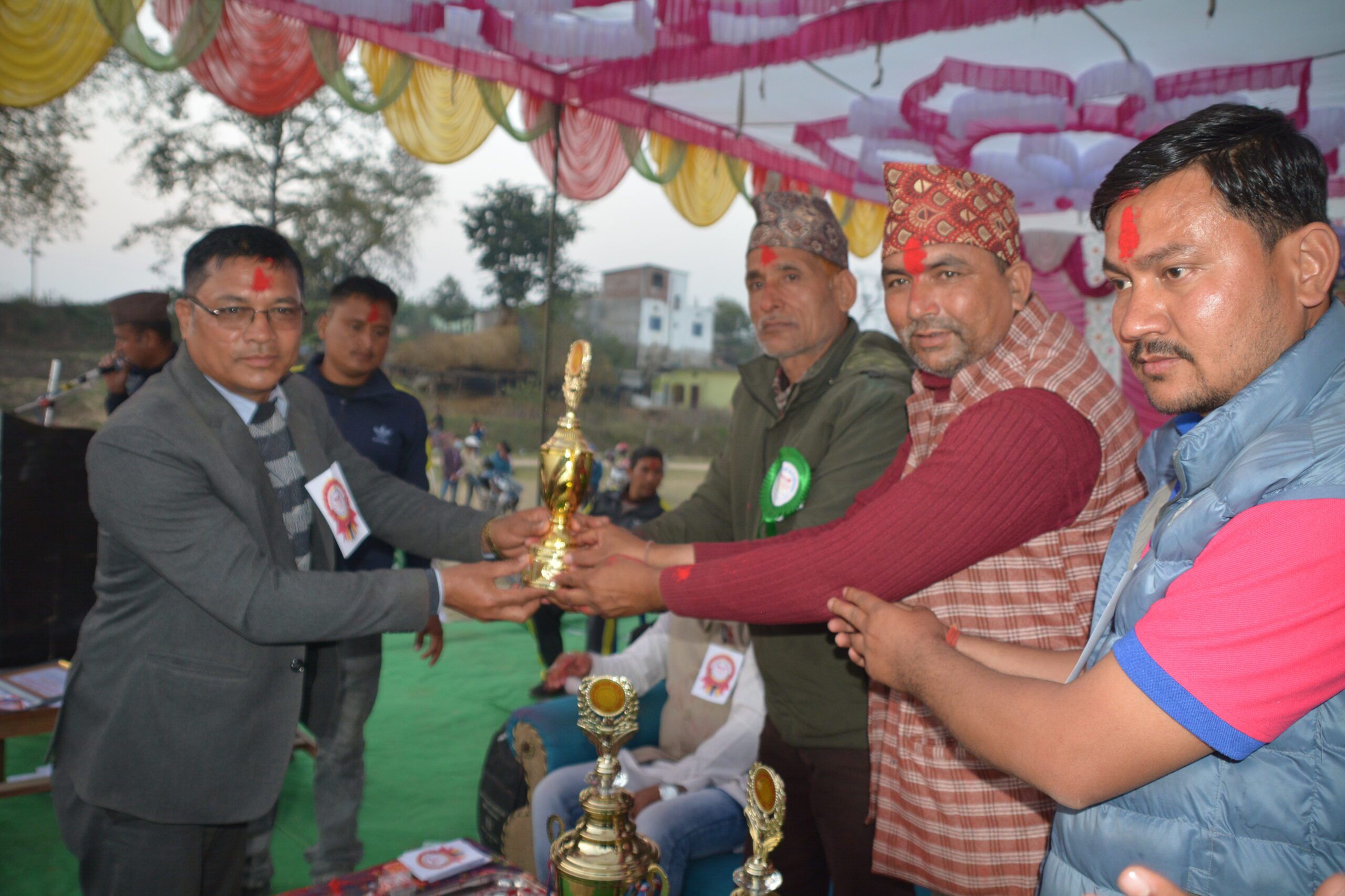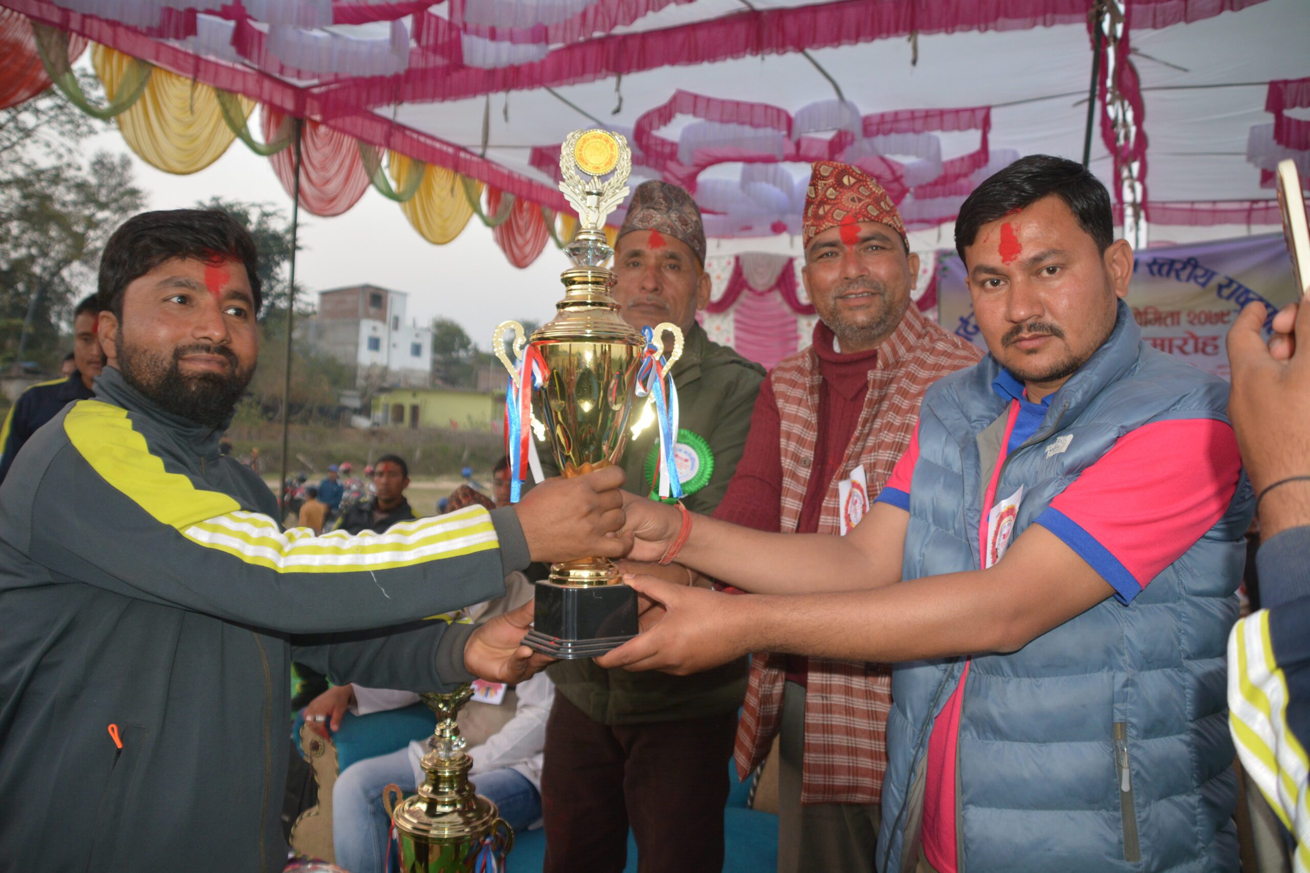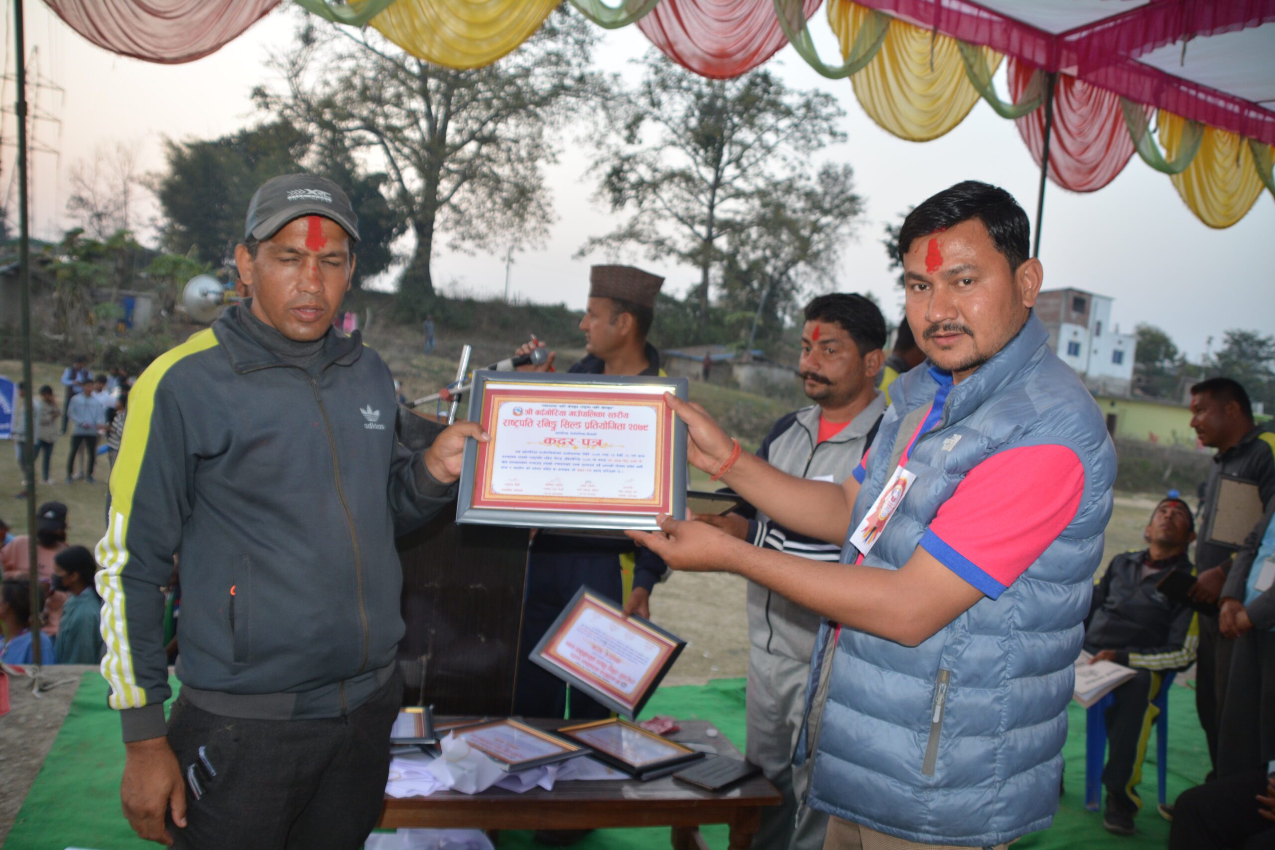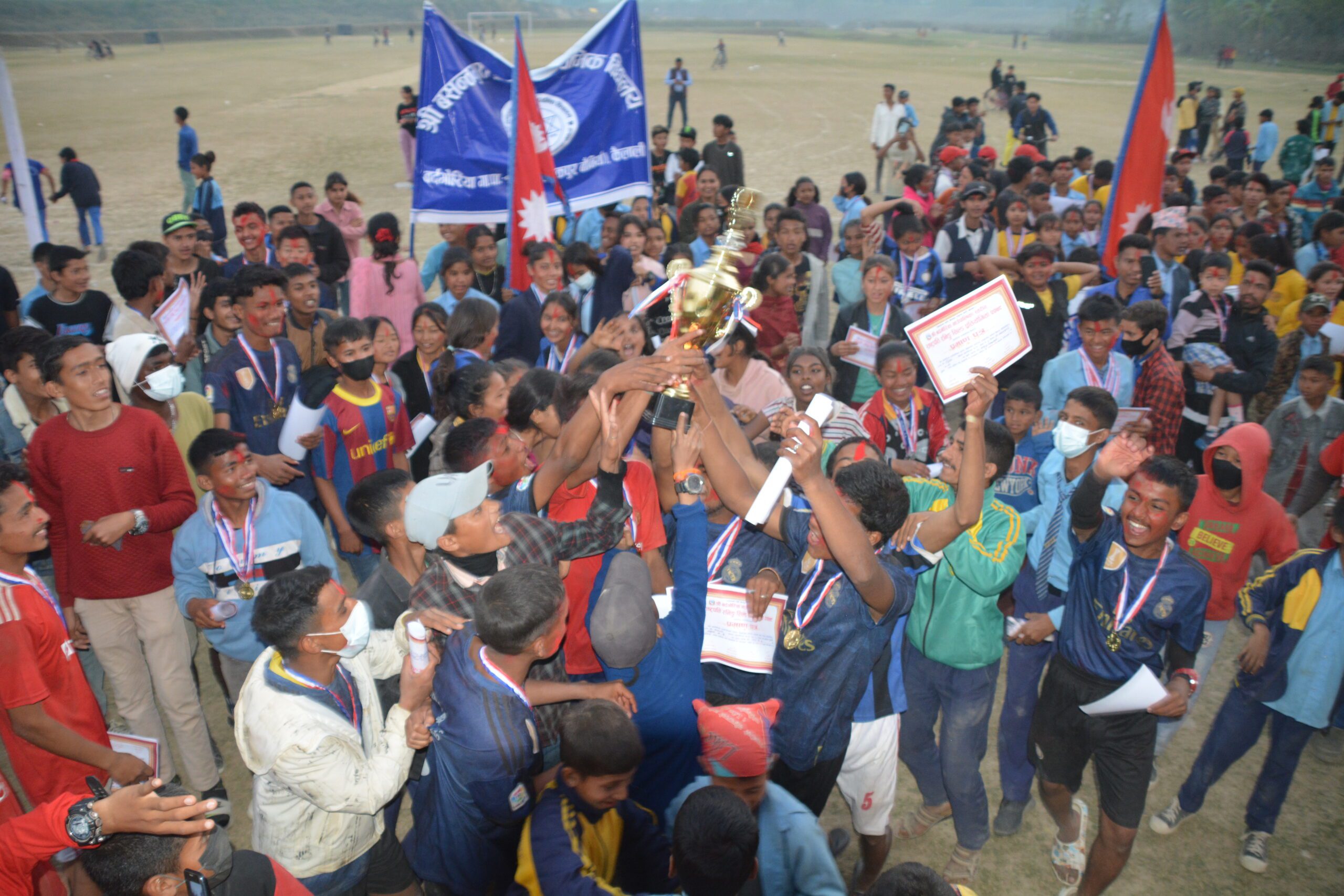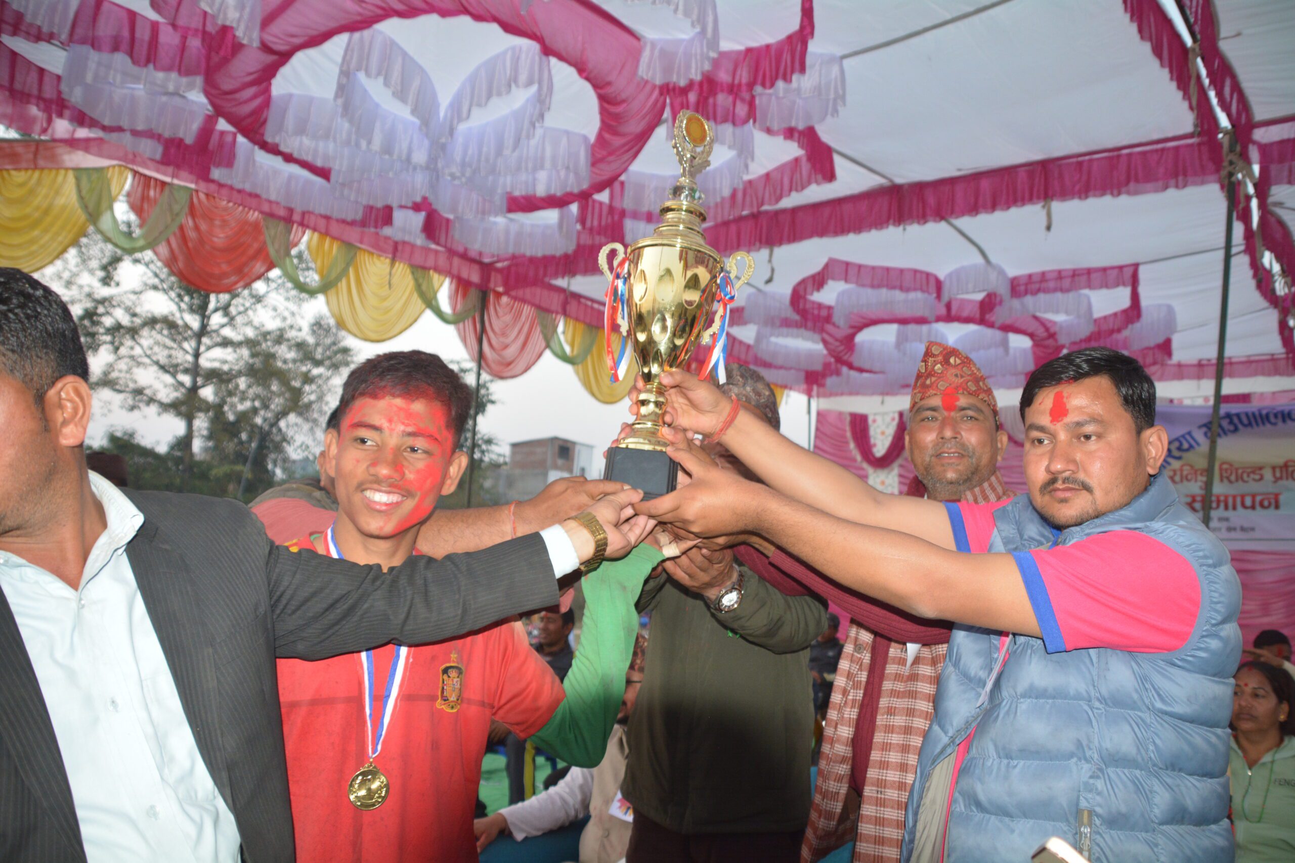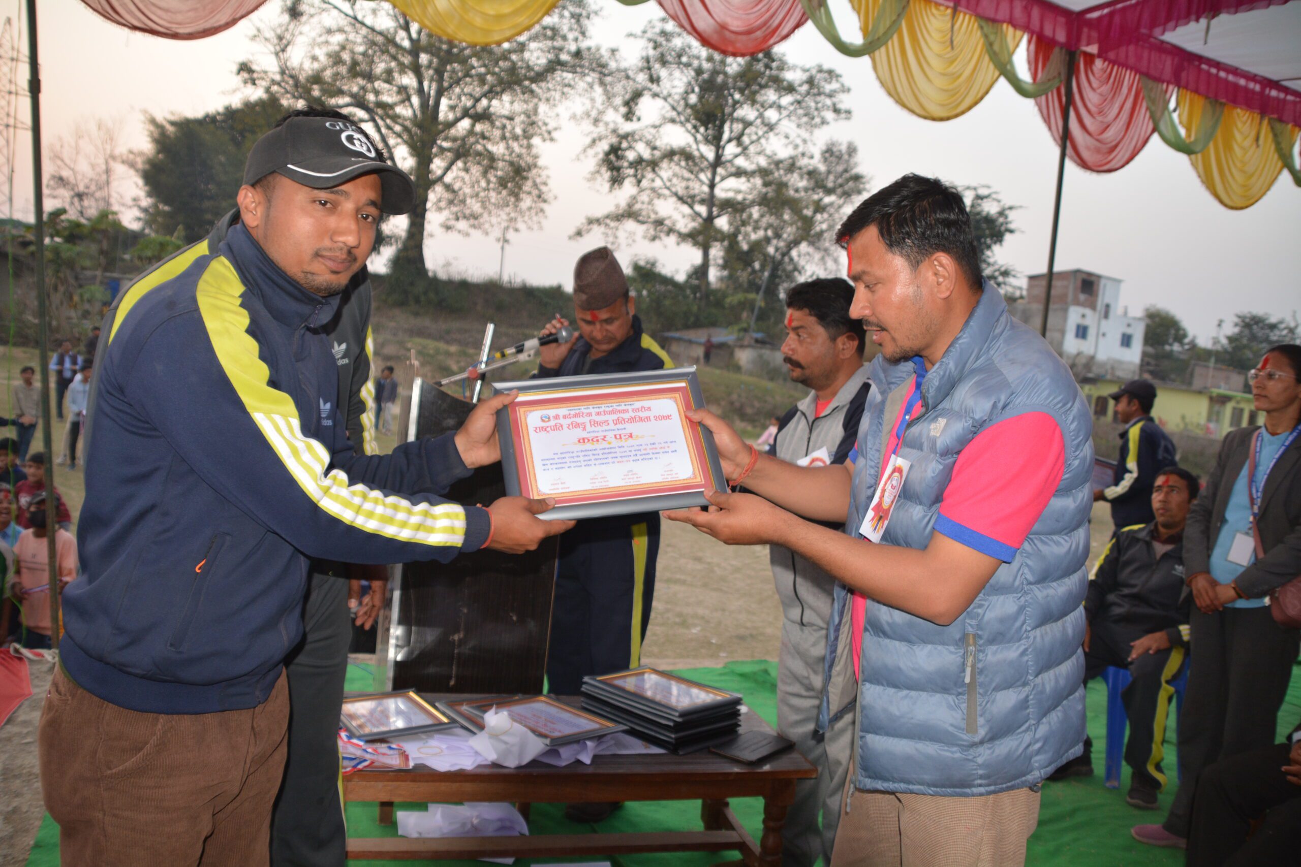 कैलाली । कैलालीको बर्दगोरिया गाउँपालिकामा गत मङ्गलवारबाट सुरु भएको पालिका स्तरीय राष्ट्रपति रनिङ्ग शिल्ड प्रतियोगिता सम्पन्न भएको छ । प्रतियोगितामा कक्षा ६ देखी १२ सम्मका १३ विद्यालयले भाग लिएका थिए । प्रतियोगिताका अधिकांश खेल विद्यालाई वसन्त मुरारी माध्यमिक विद्यालयले कब्जा गरेको छ । १० स्वर्ण, ७ रजत र २ कास्य सहित वसन्त मुरारी प्रथम हुँदा ५ स्वर्ण र ३ कास्य सहित नोबेल एकेडेमी दोस्रो बनेको छ । यस्तै ३ स्वर्ण, ८ रजत र २ कास्य सहित कालिका मा.वि. नौनिया तृतीय बनेको छ । प्रतियोगितामा मा.वि. कोटातुल्सीपुरले ३ स्वर्ण, ४ रजत र ७ कास्य हात पारेको छ । जगदम्बिके भगवती मा.वि. खैरेनीले ३ स्वर्ण, ४ रजत र ४ कास्य, महुन्याल मा.वि. बासकोटीले ३ स्वर्ण, २ रजत र ४ कास्य, बालकन्या मा.वि. कट्टीपुरले २ स्वर्ण, २ रजत र ७ कास्य र न्यु वालवाटीका मा.वि. बौनियाँले १ स्वर्ण, २ रजत र ३ कास्य हात पारेको छ । यस्तै द सनराईज मा.वि.बौनियाँले २ रजत र १ कास्य, आदर्श सामुदायिक मा.वि.ले १ कास्य, र माइकी मिडियमले १ कास्य प्राप्त गरेका छन् । प्रतियोगितामा १ सय, २ सय, ४ सय, ८ सय, १ हजार ५ सय र ३ हजार मिटर दौड, कबड्डी, १ सय मिटर र ४ सय मिटर रिले, भलिबल, हाई जम्प, लङ्ग जम्प, सट फुट, त्रिपल जम्प र ज्याइबलिन थ्रो गरी १५ विद्यामा खेल खेलाइएको थियो । जिल्ला स्तरमा हुने राष्ट्रपति रनिङ्ग शिल्डलाई मध्यनजर गरी सञ्चालन गरिएको यस प्रतियोगिताबाट खेलाडी तथा टिम समेट छनौट भएका छन् । हरेक खेल विद्याका प्रथम र द्धितिय हुने टिम तथा खेलाडी जिल्ला स्तरको प्रतियोगितामा सहभागी हुने छन् । यस अघि २०७६ मा जिल्ला स्तरमा भएको प्रतियोगितामा वसन्त मुरारी मा.वि.ले कबड्डी विद्यामा उपाधि हात पारेको थियो ।
