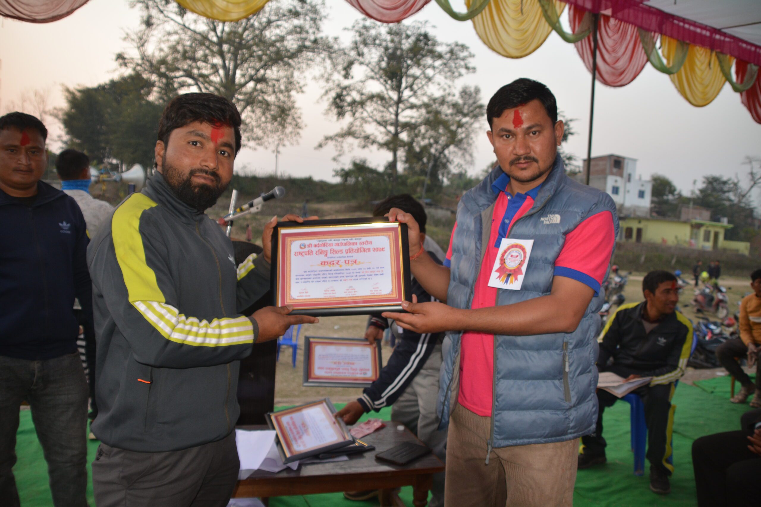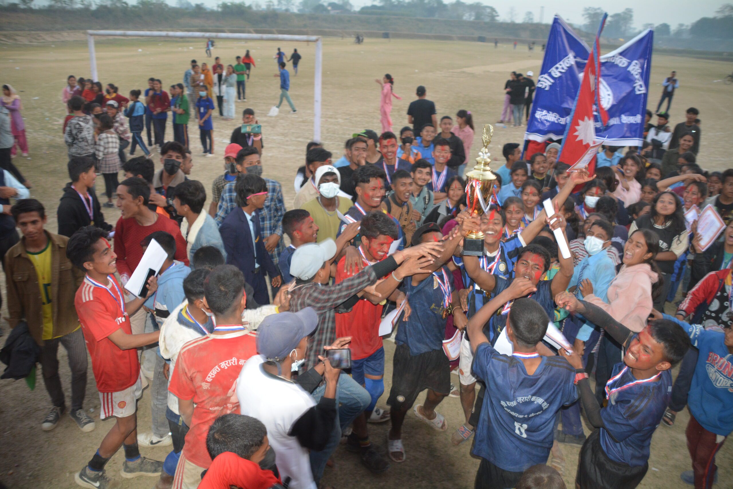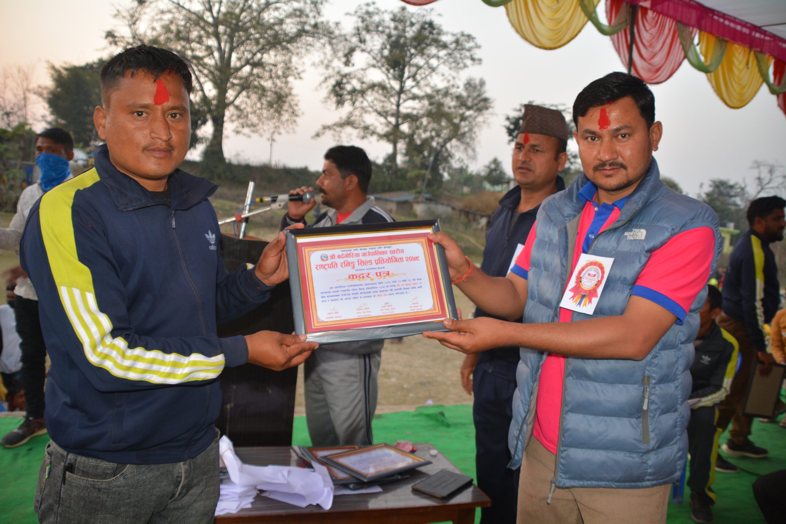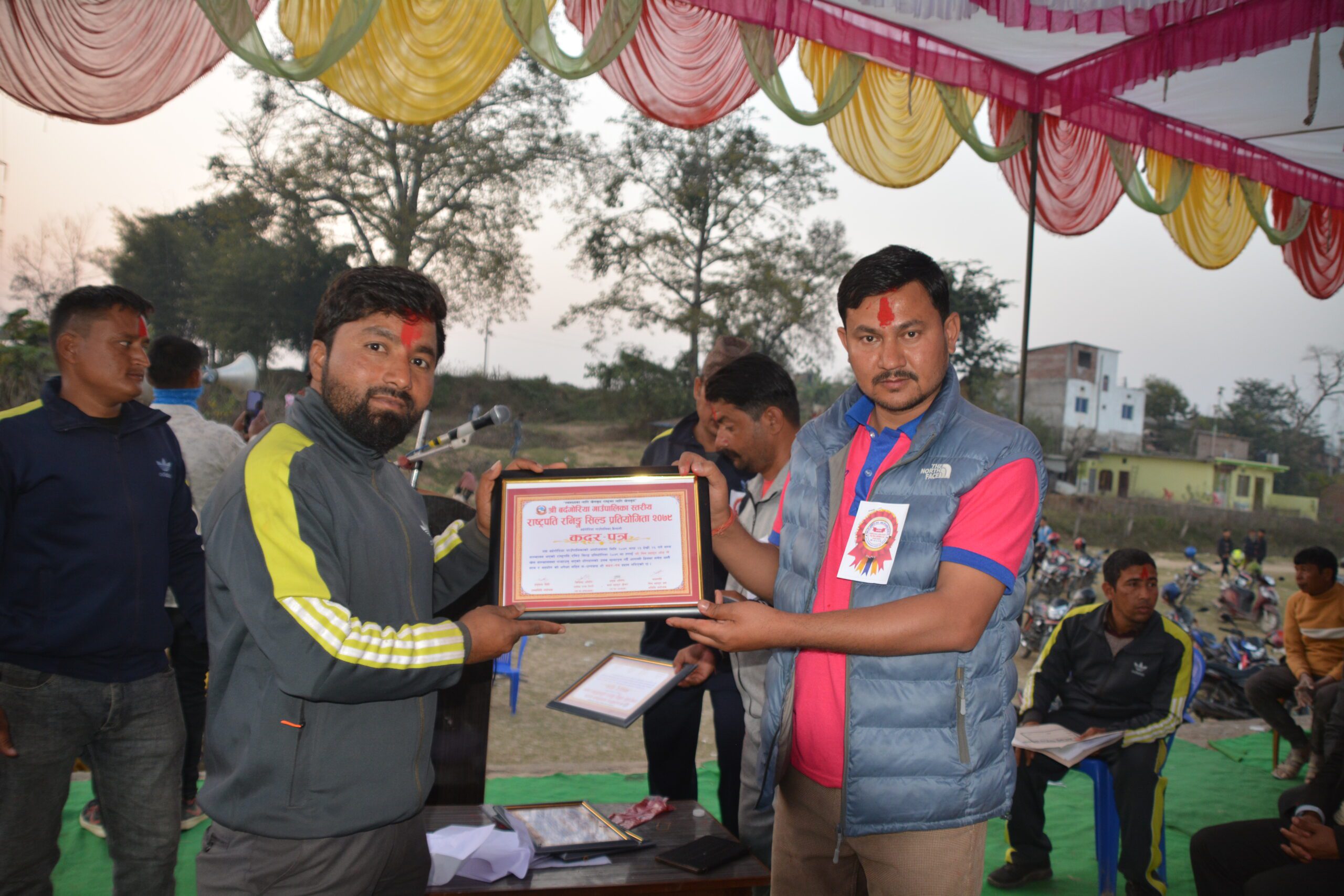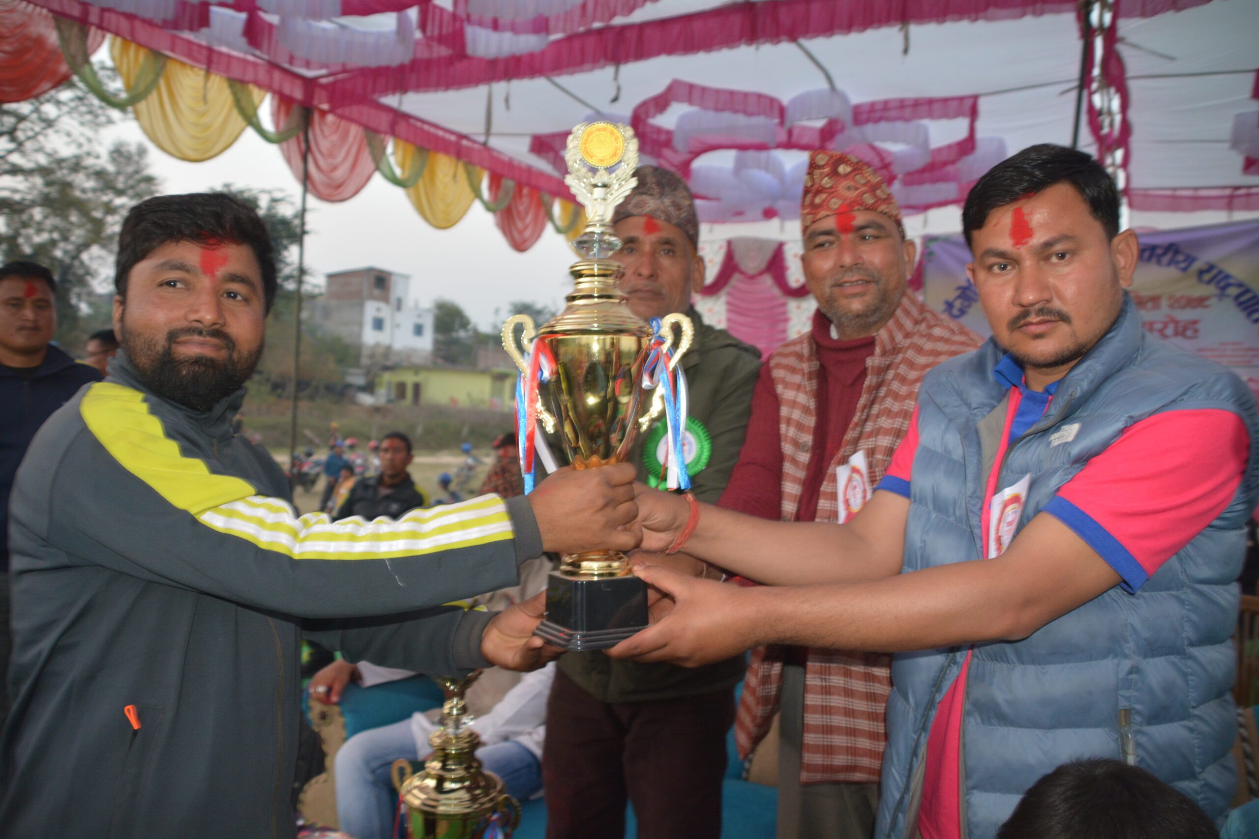 कैलाली । कैलालीको बर्दगोरिया गाउँपालिकामा गत मङ्गलवारबाट सुरु भएको पालिका स्तरीय राष्ट्रपति रनिङ्ग शिल्ड प्रतियोगिता सम्पन्न भएको छ । प्रतियोगितामा कक्षा ६ देखी १२ सम्मका १३ विद्यालयले भाग लिएका थिए । प्रतियोगिताका अधिकांश खेल विद्यालाई वसन्त मुरारी माध्यमिक विद्यालयले कब्जा गरेको छ । १० स्वर्ण, ७ रजत र २ कास्य सहित वसन्त मुरारी प्रथम हुँदा ५ स्वर्ण र ३ कास्य सहित नोबेल एकेडेमी दोस्रो बनेको छ । यस्तै ३ स्वर्ण, ८ रजत र २ कास्य सहित कालिका मा.वि. नौनिया तृतीय बनेको छ । प्रतियोगितामा मा.वि. कोटातुल्सीपुरले ३ स्वर्ण, ४ रजत र ७ कास्य हात पारेको छ । जगदम्बिके भगवती मा.वि. खैरेनीले ३ स्वर्ण, ४ रजत र ४ कास्य, महुन्याल मा.वि. बासकोटीले ३ स्वर्ण, २ रजत र ४ कास्य, बालकन्या मा.वि. कट्टीपुरले २ स्वर्ण, २ रजत र ७ कास्य र न्यु वालवाटीका मा.वि. बौनियाँले १ स्वर्ण, २ रजत र ३ कास्य हात पारेको छ । यस्तै द सनराईज मा.वि.बौनियाँले २ रजत र १ कास्य, आदर्श सामुदायिक मा.वि.ले १ कास्य, र माइकी मिडियमले १ कास्य प्राप्त गरेका छन् । प्रतियोगितामा १ सय, २ सय, ४ सय, ८ सय, १ हजार ५ सय र ३ हजार मिटर दौड, कबड्डी, १ सय मिटर र ४ सय मिटर रिले, भलिबल, हाई जम्प, लङ्ग जम्प, सट फुट, त्रिपल जम्प र ज्याइबलिन थ्रो गरी १५ विद्यामा खेल खेलाइएको थियो । जिल्ला स्तरमा हुने राष्ट्रपति रनिङ्ग शिल्डलाई मध्यनजर गरी सञ्चालन गरिएको यस प्रतियोगिताबाट खेलाडी तथा टिम समेट छनौट भएका छन् । हरेक खेल विद्याका प्रथम र द्धितिय हुने टिम तथा खेलाडी जिल्ला स्तरको प्रतियोगितामा सहभागी हुने छन् । यस अघि २०७६ मा जिल्ला स्तरमा भएको प्रतियोगितामा वसन्त मुरारी मा.वि.ले कबड्डी विद्यामा उपाधि हात पारेको थियो ।