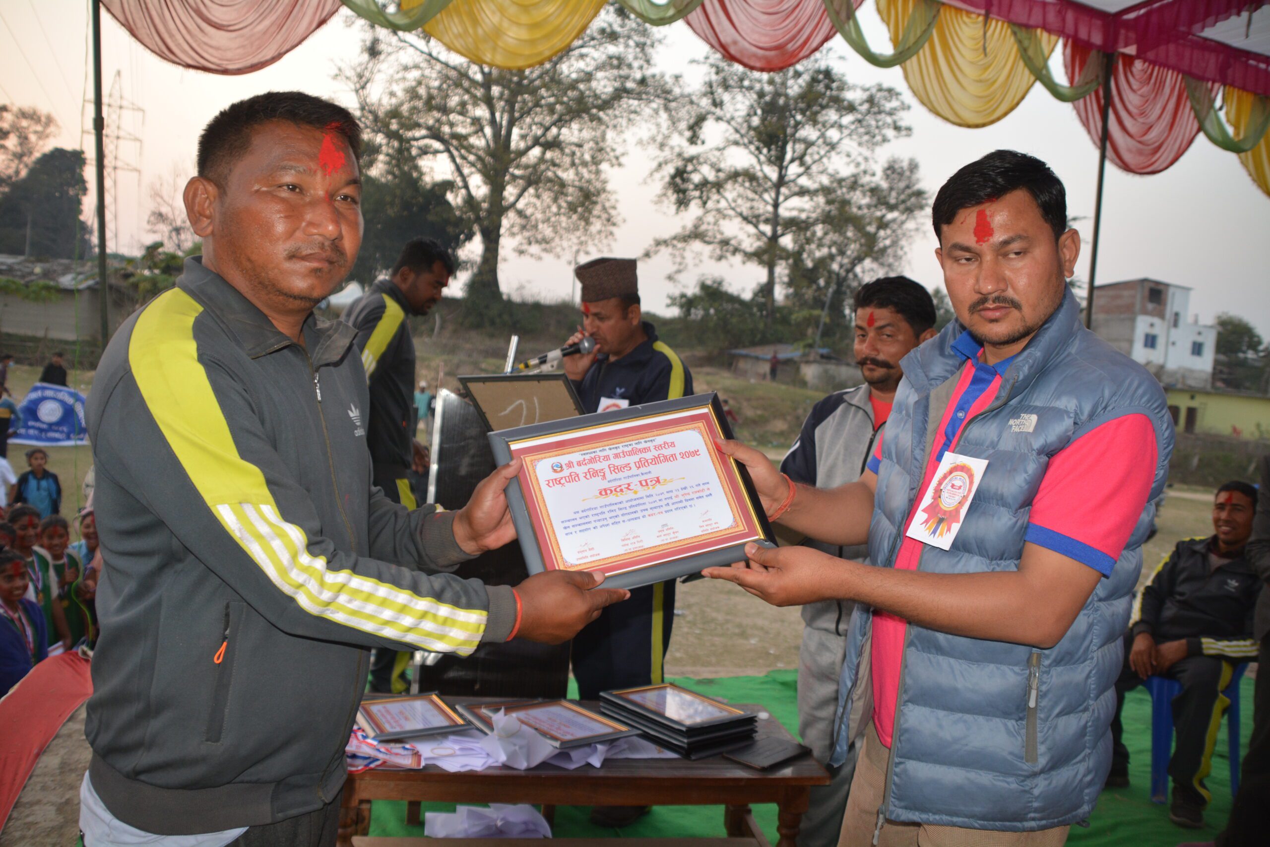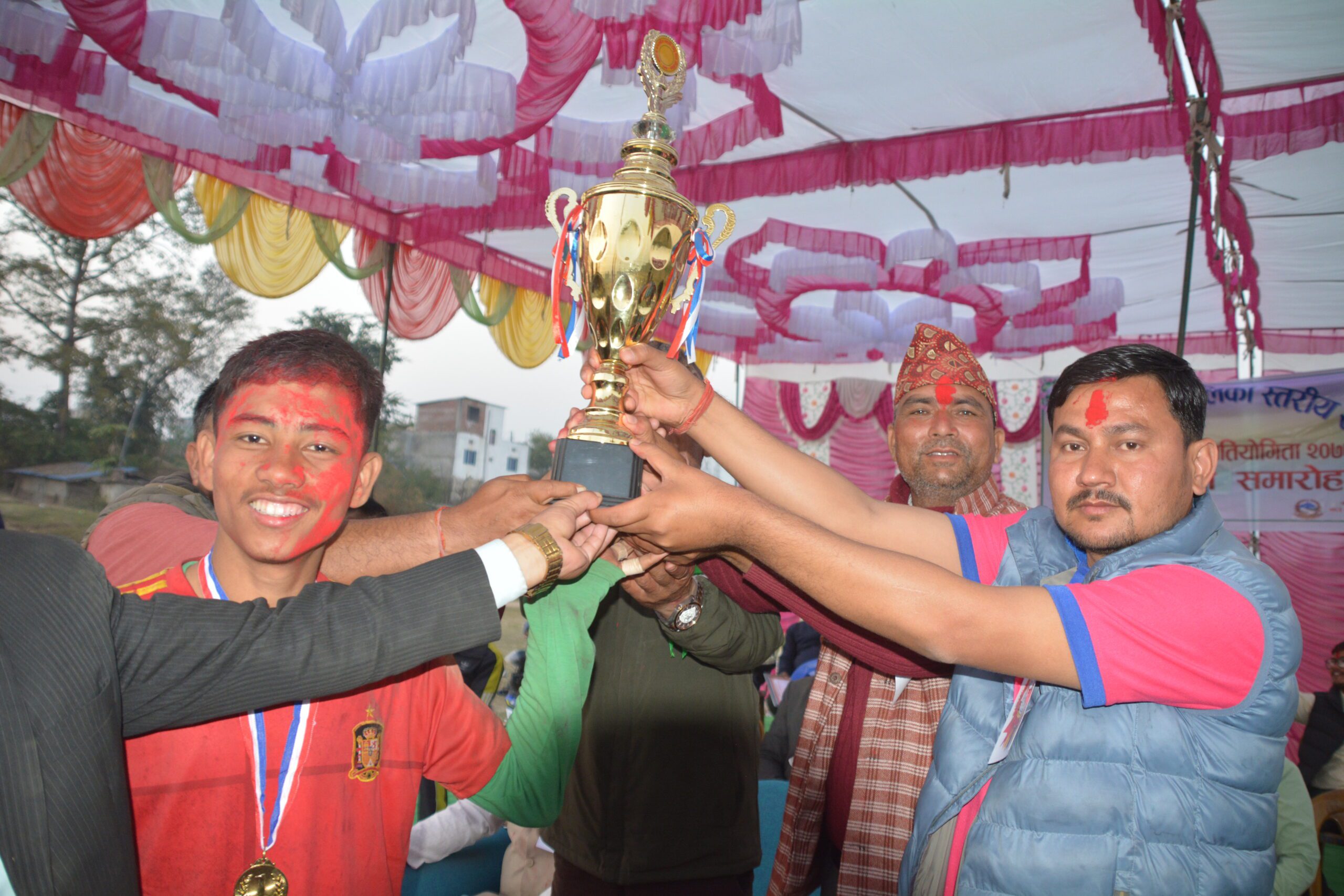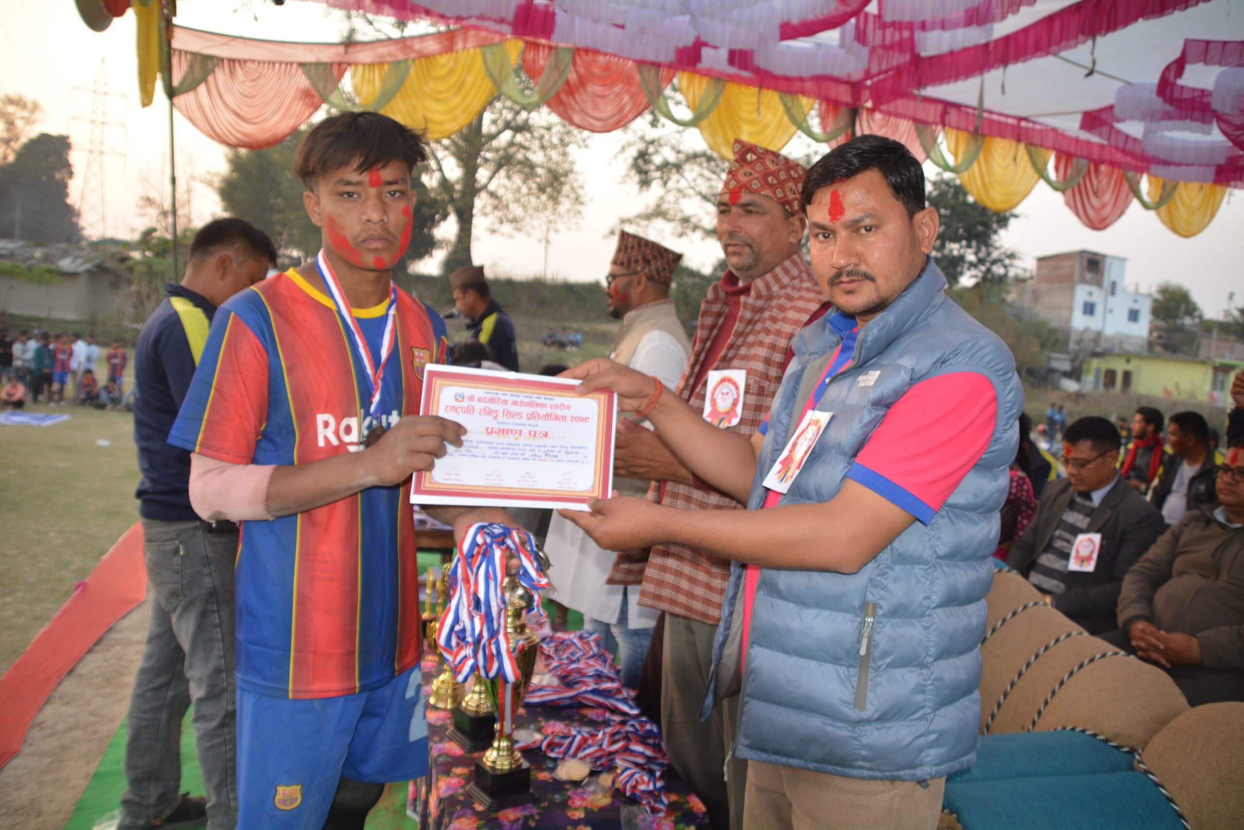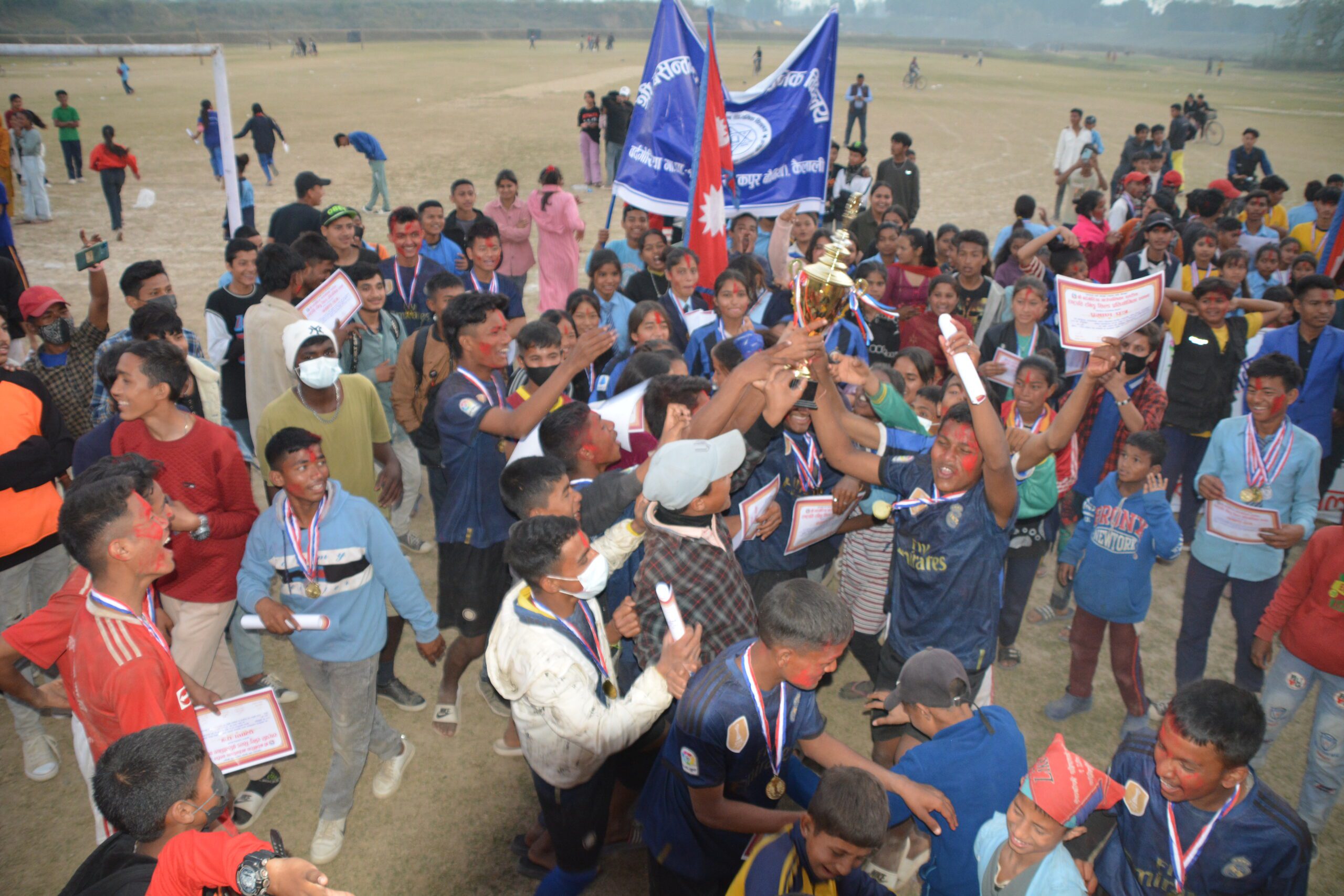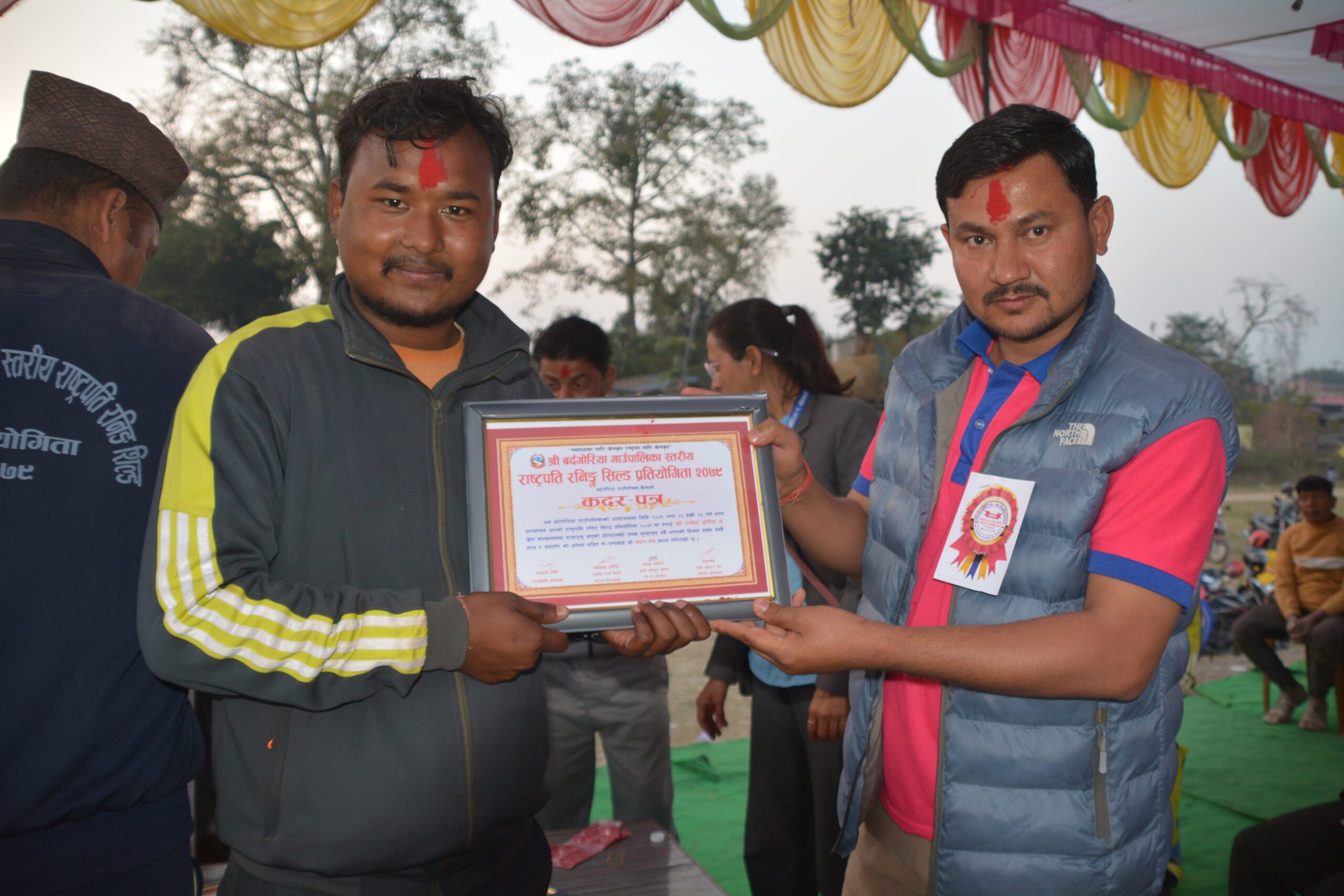 कैलाली । कैलालीको बर्दगोरिया गाउँपालिकामा गत मङ्गलवारबाट सुरु भएको पालिका स्तरीय राष्ट्रपति रनिङ्ग शिल्ड प्रतियोगिता सम्पन्न भएको छ । प्रतियोगितामा कक्षा ६ देखी १२ सम्मका १३ विद्यालयले भाग लिएका थिए । प्रतियोगिताका अधिकांश खेल विद्यालाई वसन्त मुरारी माध्यमिक विद्यालयले कब्जा गरेको छ । १० स्वर्ण, ७ रजत र २ कास्य सहित वसन्त मुरारी प्रथम हुँदा ५ स्वर्ण र ३ कास्य सहित नोबेल एकेडेमी दोस्रो बनेको छ । यस्तै ३ स्वर्ण, ८ रजत र २ कास्य सहित कालिका मा.वि. नौनिया तृतीय बनेको छ । प्रतियोगितामा मा.वि. कोटातुल्सीपुरले ३ स्वर्ण, ४ रजत र ७ कास्य हात पारेको छ । जगदम्बिके भगवती मा.वि. खैरेनीले ३ स्वर्ण, ४ रजत र ४ कास्य, महुन्याल मा.वि. बासकोटीले ३ स्वर्ण, २ रजत र ४ कास्य, बालकन्या मा.वि. कट्टीपुरले २ स्वर्ण, २ रजत र ७ कास्य र न्यु वालवाटीका मा.वि. बौनियाँले १ स्वर्ण, २ रजत र ३ कास्य हात पारेको छ । यस्तै द सनराईज मा.वि.बौनियाँले २ रजत र १ कास्य, आदर्श सामुदायिक मा.वि.ले १ कास्य, र माइकी मिडियमले १ कास्य प्राप्त गरेका छन् । प्रतियोगितामा १ सय, २ सय, ४ सय, ८ सय, १ हजार ५ सय र ३ हजार मिटर दौड, कबड्डी, १ सय मिटर र ४ सय मिटर रिले, भलिबल, हाई जम्प, लङ्ग जम्प, सट फुट, त्रिपल जम्प र ज्याइबलिन थ्रो गरी १५ विद्यामा खेल खेलाइएको थियो । जिल्ला स्तरमा हुने राष्ट्रपति रनिङ्ग शिल्डलाई मध्यनजर गरी सञ्चालन गरिएको यस प्रतियोगिताबाट खेलाडी तथा टिम समेट छनौट भएका छन् । हरेक खेल विद्याका प्रथम र द्धितिय हुने टिम तथा खेलाडी जिल्ला स्तरको प्रतियोगितामा सहभागी हुने छन् । यस अघि २०७६ मा जिल्ला स्तरमा भएको प्रतियोगितामा वसन्त मुरारी मा.वि.ले कबड्डी विद्यामा उपाधि हात पारेको थियो ।