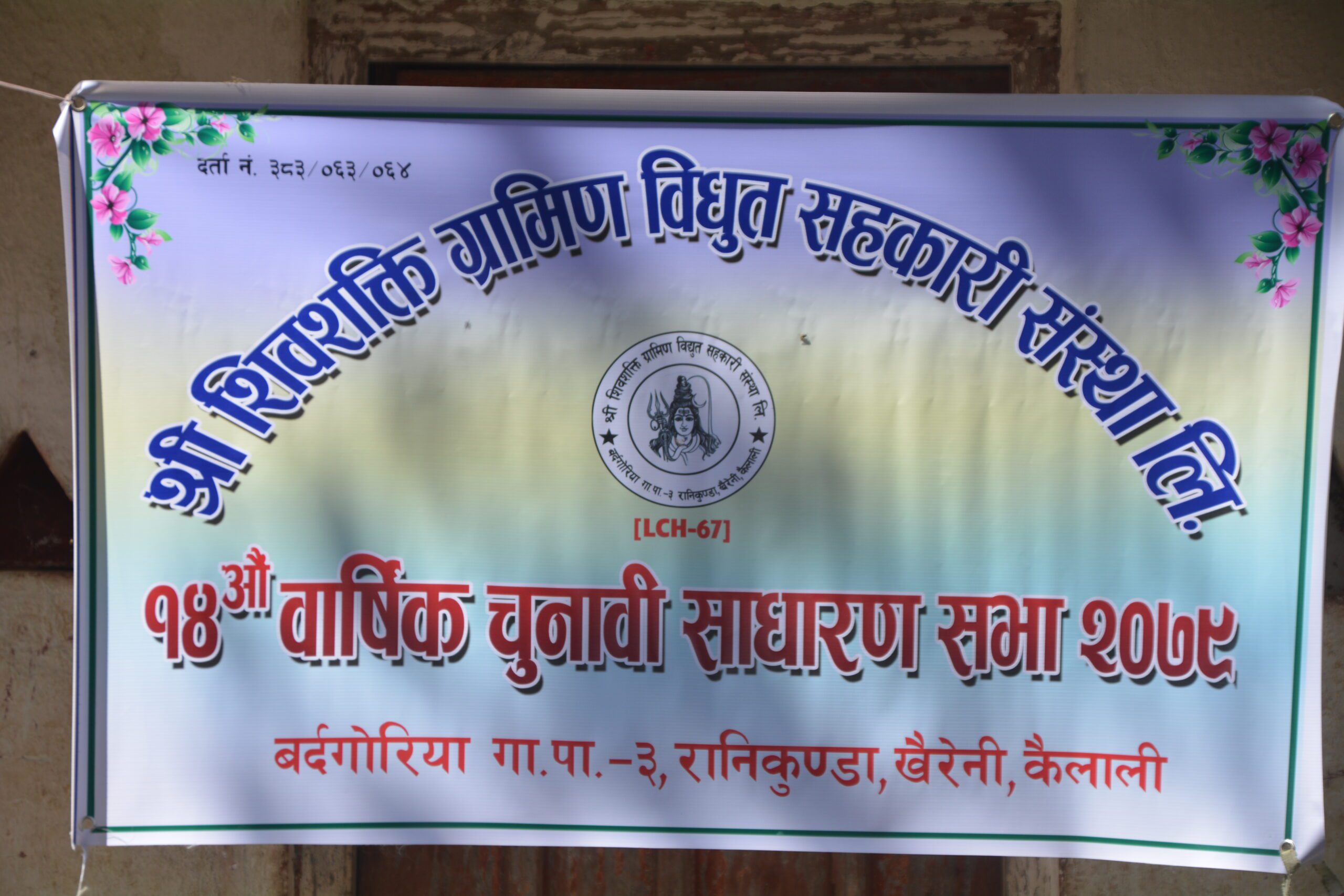 बौनियाँ । कैलालीको बर्दगोरिया गाउँपालिका वडा नम्बर ३ रानीकुण्डा, खैरेनीमा रहेको शिवशक्ति ग्रामीण विद्युत सहकारी संस्थाको १४ औं वार्षिक चुनावी साधारणसभा शनिबार सम्पन्न भएको छ ।