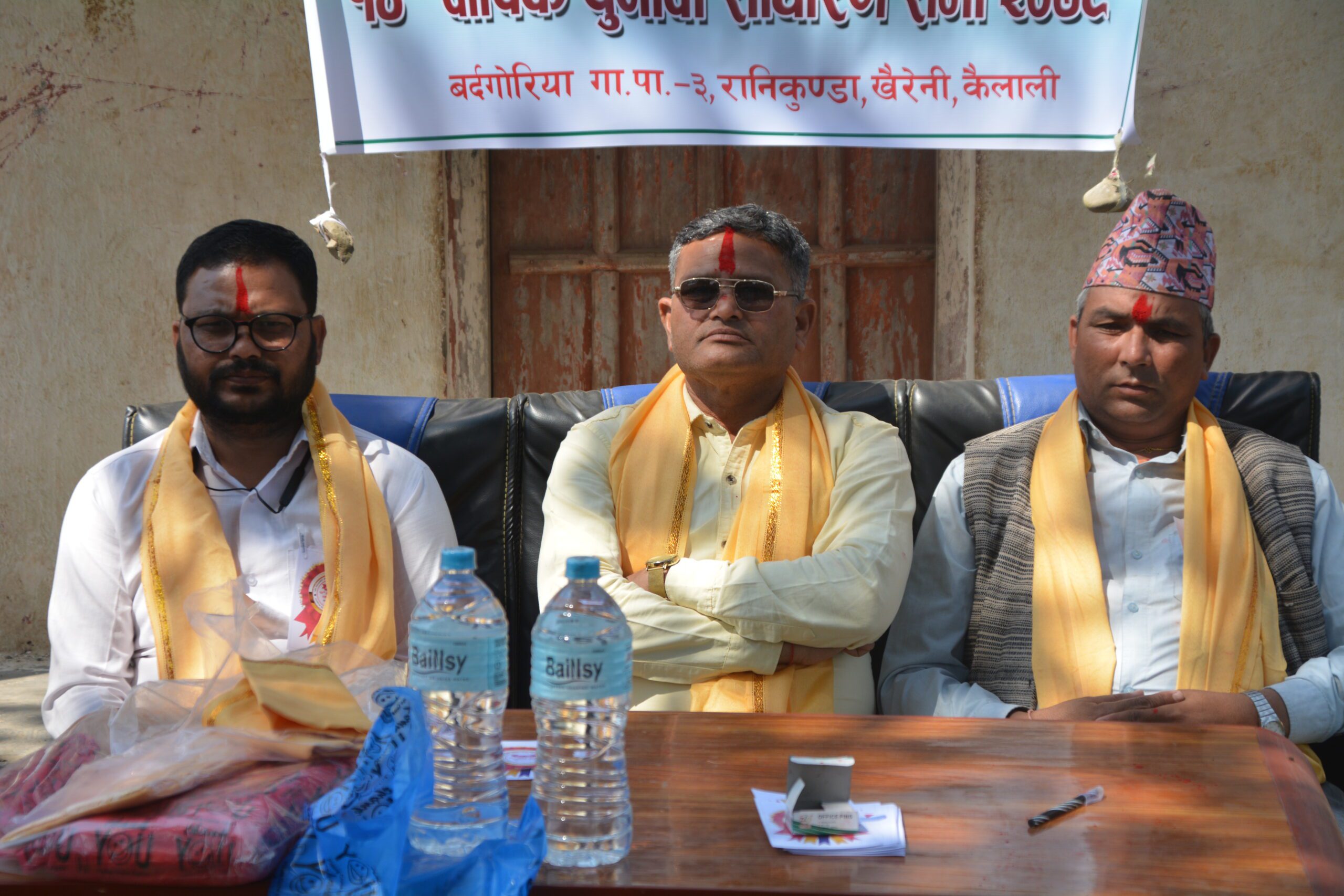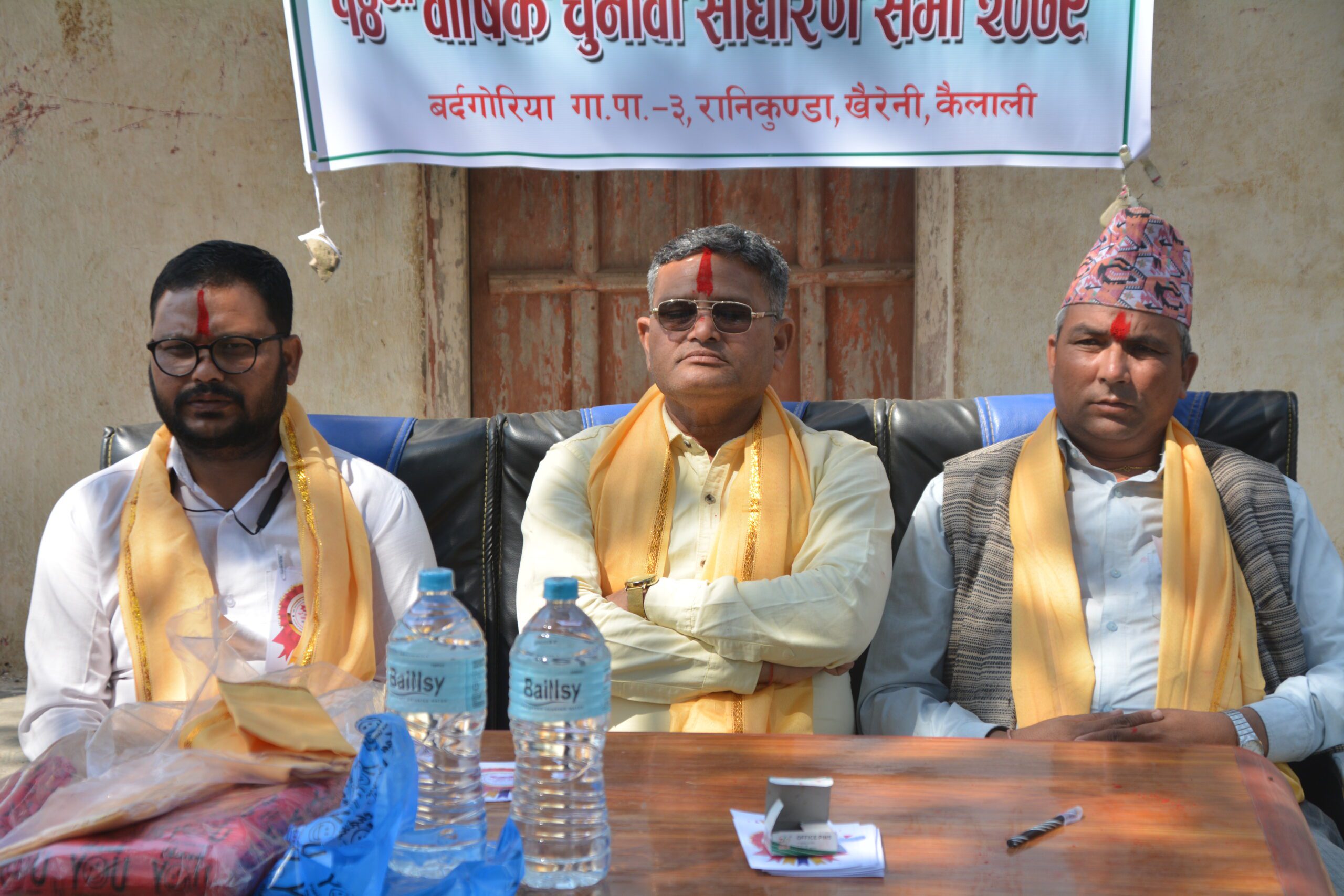 संस्थाका अध्यक्ष नवराज टमट्टाको सभापतित्वमा भएको कार्यक्रममा वडा नम्बर – ३ का वडाअध्यक्ष मनऋषि आचार्य प्रमुख अतिथि रहेका थिए । यस्तै,कार्यपालिका सदस्य भीम बहादुर विश्वकर्मा बिशिस्ट अतिथि रहनु भएको थियो । कार्यक्रममा बर्दगोरिया गाउँपालिका न्यायकपालिका सदस्य बसन्ती साउँद,वडा सदस्य राम बहादुर चौधरी,भावना विक र कपिल गुरुङ्ग,जगदम्बिके भगवती माध्यमिक विद्यालयका शिक्षक अभिभावक संघका आत्माराम रिजाल, न्यू जोती आधारभुत विद्यालय व्यवस्थापन समितिका अध्यक्ष मान वहादुर विक,जगदम्बिके भगवती माध्यमिक विद्यालयका प्रधानाध्यापक नेत्र बहादुर खड्का, बसन्त मुरारी नमूना माध्यामिक विद्यालय व्यवस्थापन समितिका अध्यक्ष टक कुँवर ,जगदम्बिके भगवती माध्यमिक विद्यालय व्यवस्थापन समितिका अध्यक्ष राजेश चौधरी,रानीकुण्डा खानेपानी उपभोक्ता तथा सरसफाई समितिका अध्यक्ष टंक राज ओली, न्यू लालीगुराँस ग्रामीण विद्युत सहकारी संस्थाका अध्यक्ष लोकेन्द्र न्यौपाने,राम जानकी मन्दिर संरक्षण समितिका अध्यक्ष शिव राज गाैतम,साइनिङ्ग स्टार युवा क्लवका वरिष्ट उपाध्यक्ष गणेश विक, के के युवा क्लवका अध्यक्ष शिखर विक,लालीगुराँस सामुदायिक वन उपभोक्ता समूहका अध्यक्ष भिम बहादुर कुँवर,रानीजरुवा सामुदायीक वन उपभोक्ता समूहका अध्यक्ष लाल सिंह विश्वकर्मा, दानुवा फाटा नमूना सामुदायीक वन उपभोक्ता समूहका अध्यक्ष टेक राज जोशी लगायतले शुभकामना मन्तव्य राखेका थिए ।