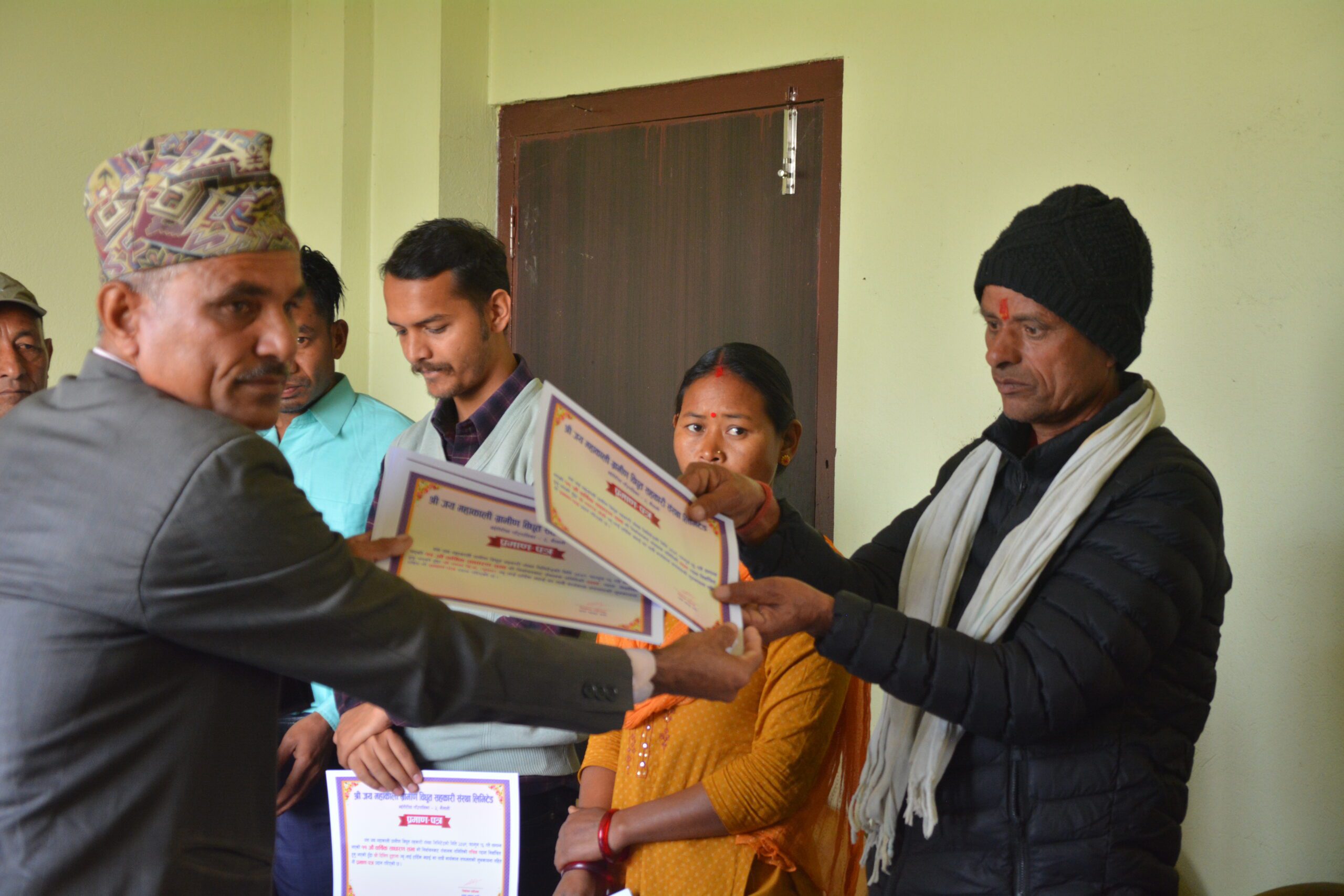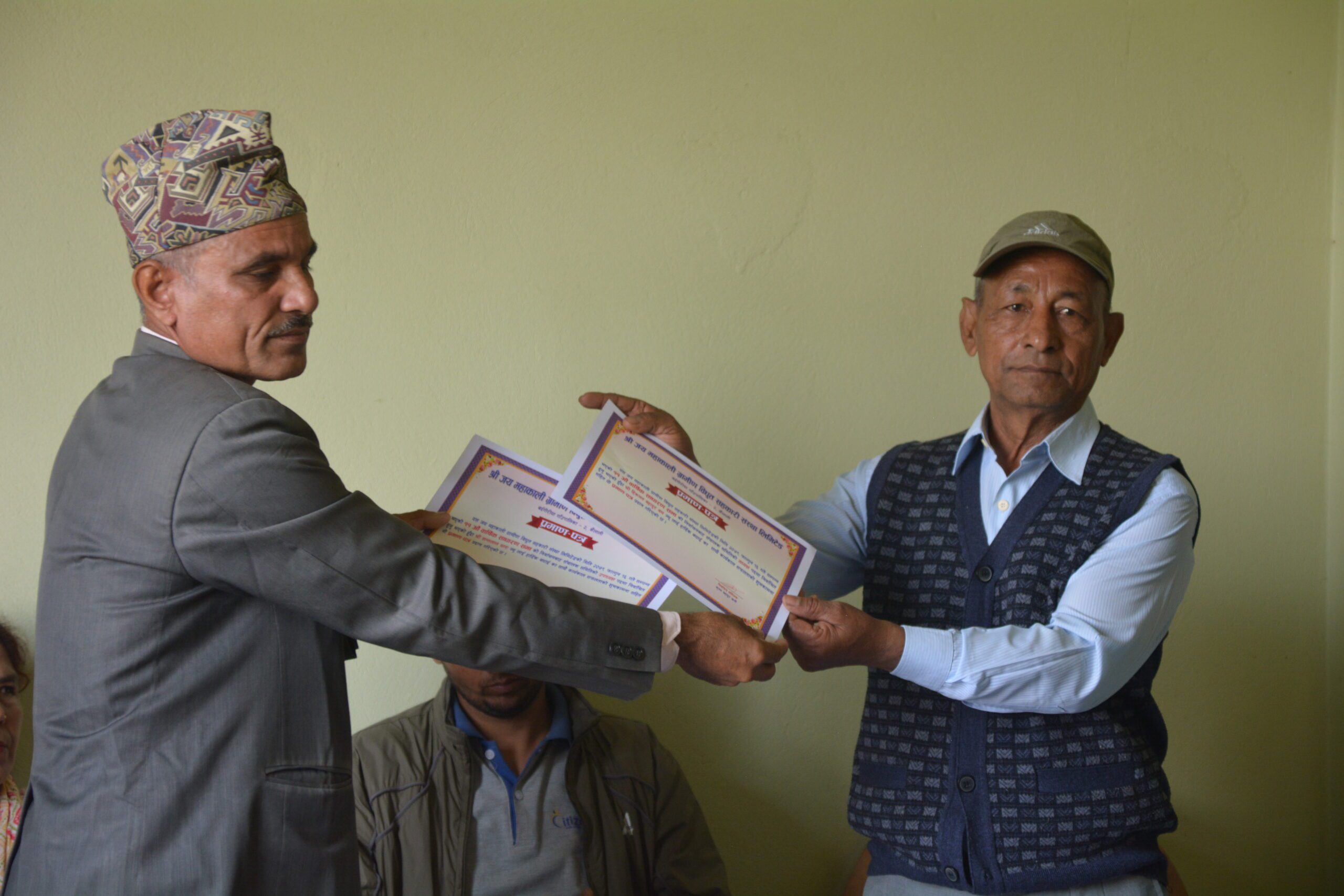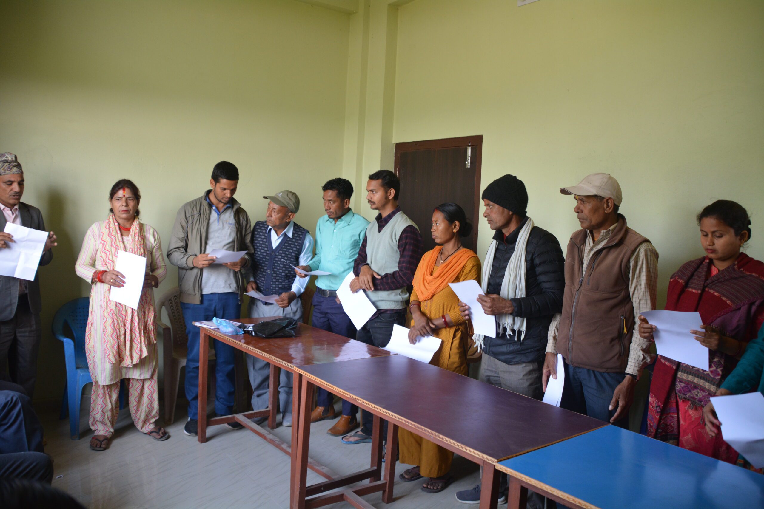 सपथ ग्रहण कार्यक्रममा उपाध्यक्ष,कोषाध्यक्ष, सचिव, र सदस्यहरुलाई समेत सोही कार्यक्रममा सपथ ग्रहण गराईएको थियो । सोही कार्यक्रममा लेखा समितिका संयोजक र सदस्यलाई समेत सपथ ग्रहण गराईएको थियोे । सपथ ग्रहण कार्यक्रममा नवनिर्वाचित अध्यक्ष,उपाध्यक्ष,कोषाध्यक्ष,सचिव , सदस्यहरु र लेखा समितिका संयोजक र सदस्यलाई र निर्वाचन मण्डलका सदस्य हरुलाई मायाको चिनो प्रदान गरिएको थियो । कोसेली एफएमका स्टेशन म्यानेजर लिला जंग शाही र वैज्ञानिक मिडियाका प्रबन्धक निर्देशक टीकाराम साउँदलाई संस्थालाई विभिन्न खण्डमा सहयोग गरेको भन्दै मायाको चिनो प्रदान गरिएको थियो ।