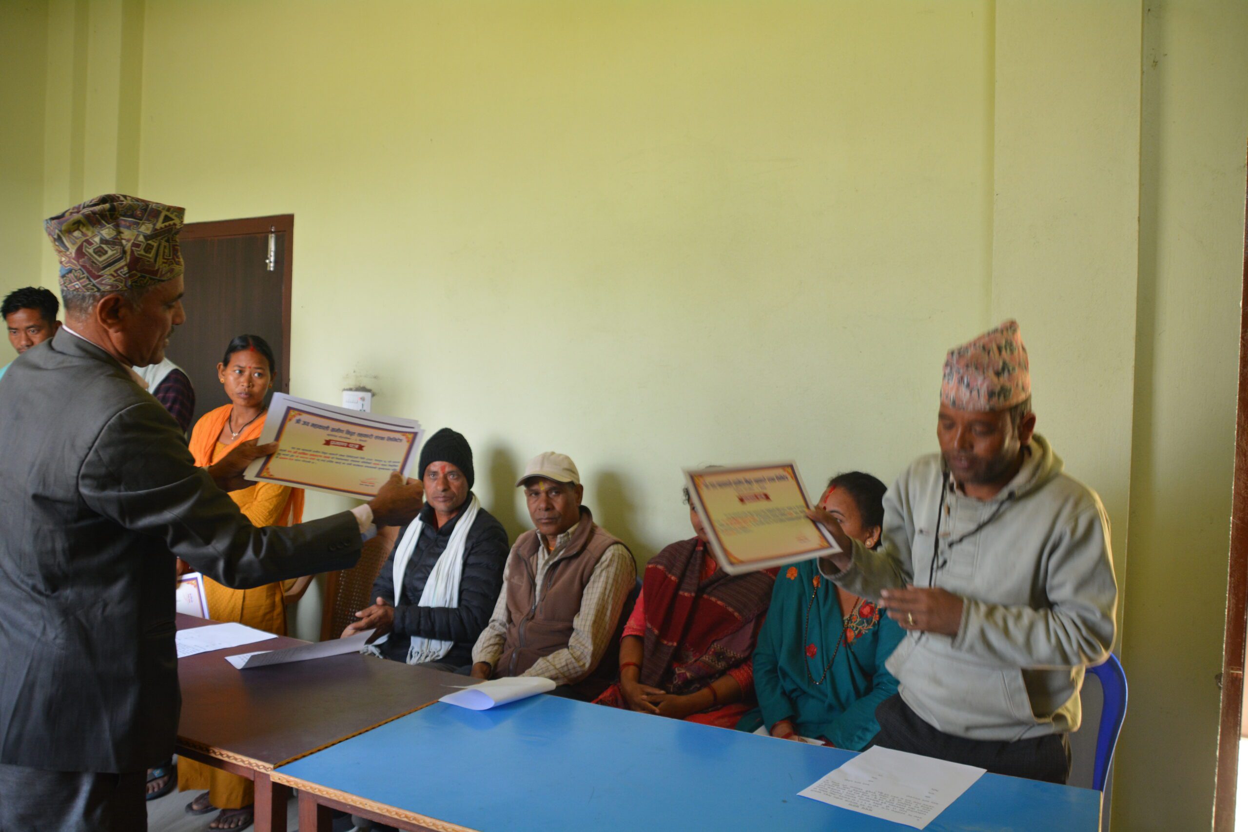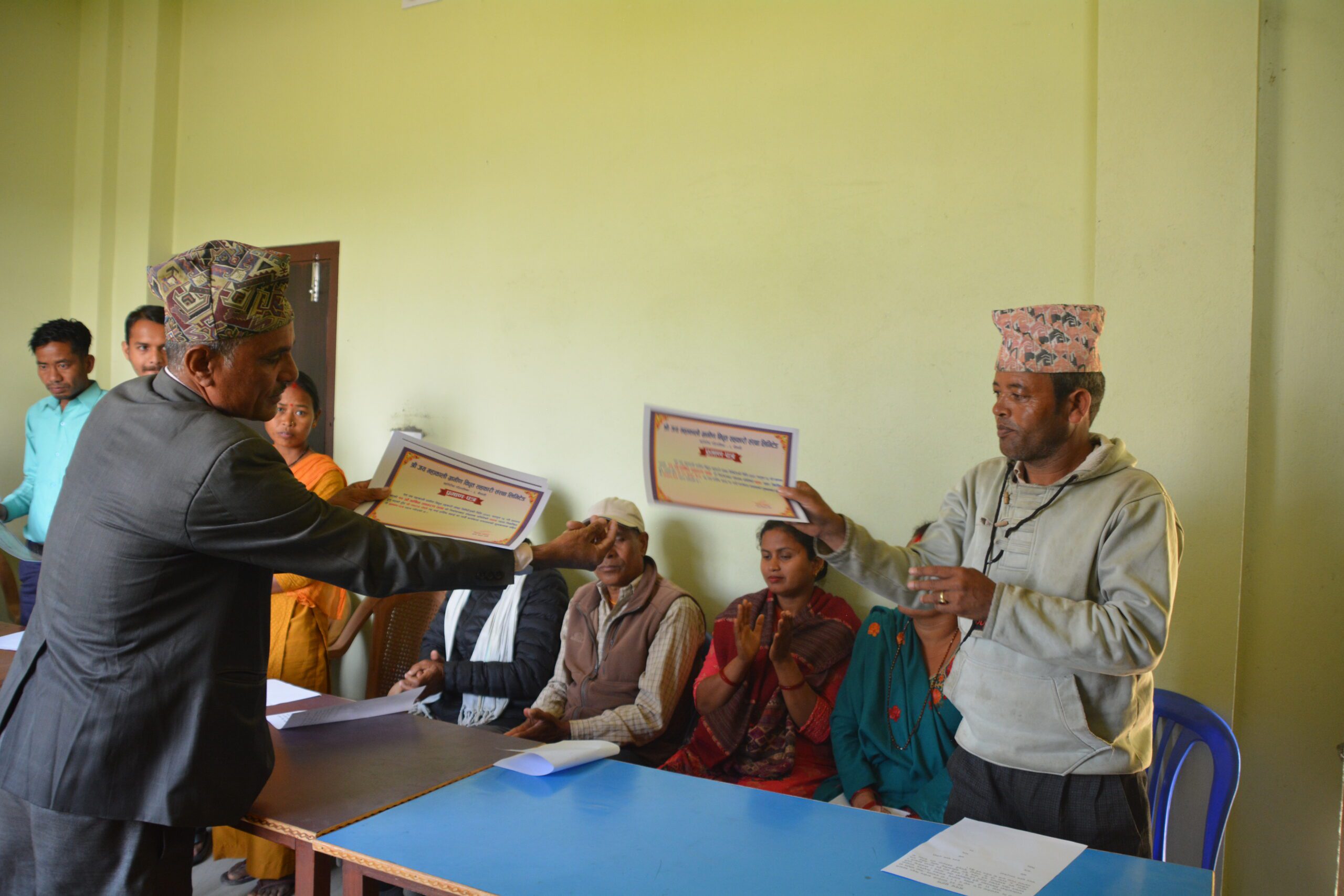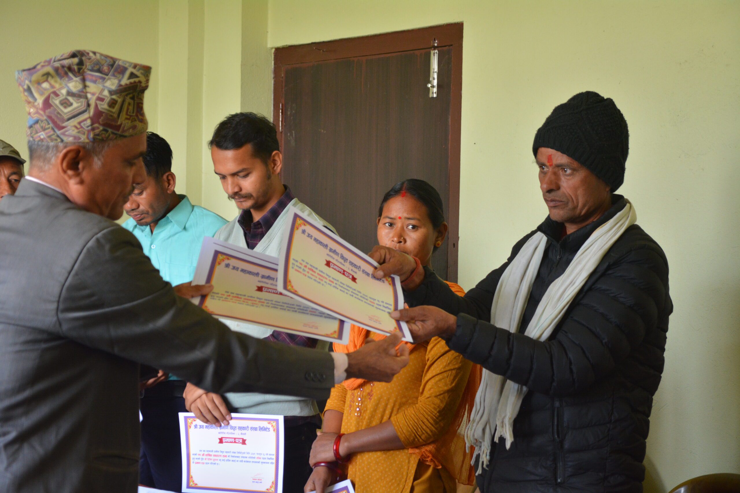 सपथ ग्रहण कार्यक्रममा उपाध्यक्ष,कोषाध्यक्ष, सचिव, र सदस्यहरुलाई समेत सोही कार्यक्रममा सपथ ग्रहण गराईएको थियो । सोही कार्यक्रममा लेखा समितिका संयोजक र सदस्यलाई समेत सपथ ग्रहण गराईएको थियोे । सपथ ग्रहण कार्यक्रममा नवनिर्वाचित अध्यक्ष,उपाध्यक्ष,कोषाध्यक्ष,सचिव , सदस्यहरु र लेखा समितिका संयोजक र सदस्यलाई र निर्वाचन मण्डलका सदस्य हरुलाई मायाको चिनो प्रदान गरिएको थियो । कोसेली एफएमका स्टेशन म्यानेजर लिला जंग शाही र वैज्ञानिक मिडियाका प्रबन्धक निर्देशक टीकाराम साउँदलाई संस्थालाई विभिन्न खण्डमा सहयोग गरेको भन्दै मायाको चिनो प्रदान गरिएको थियो ।