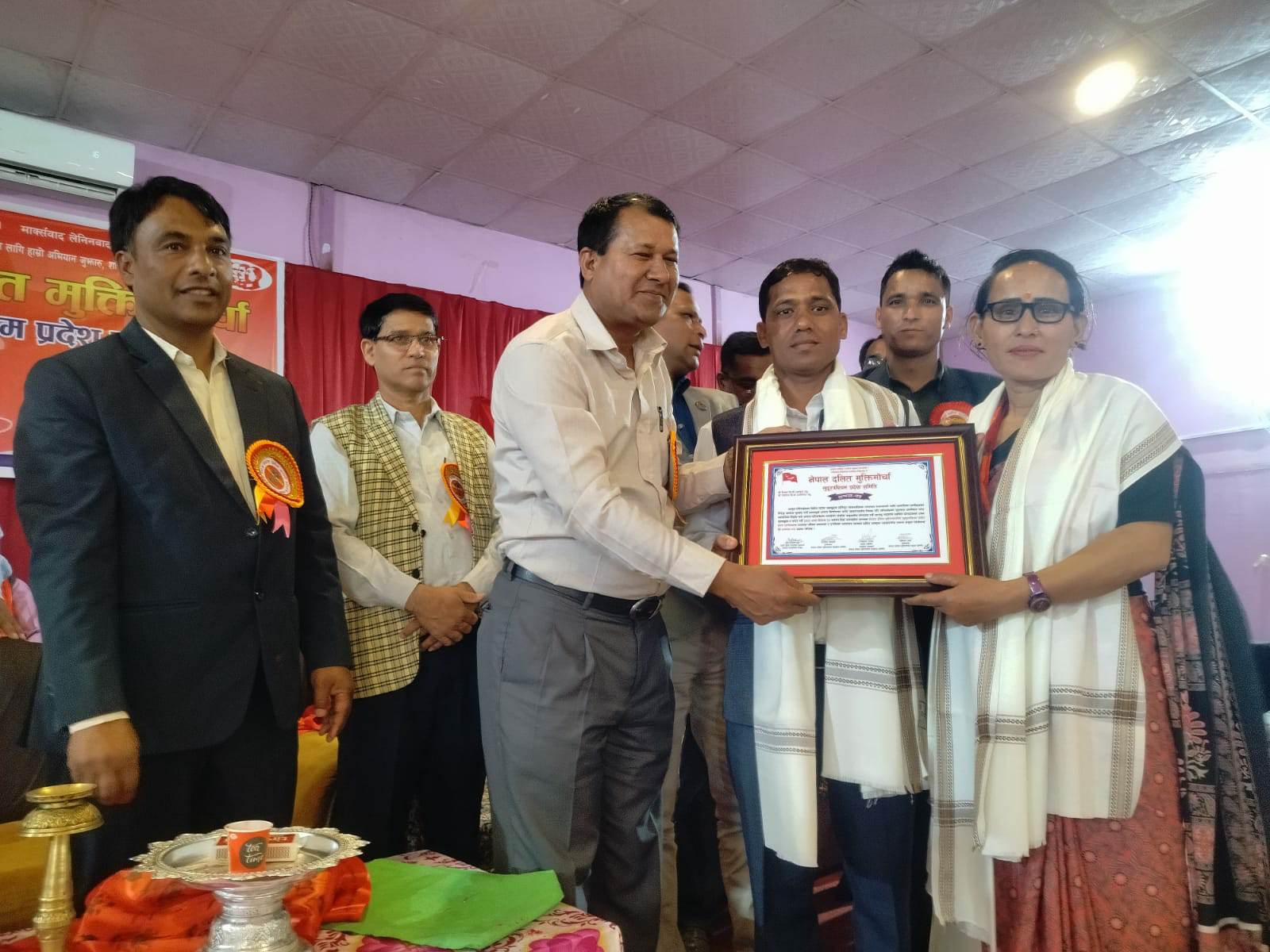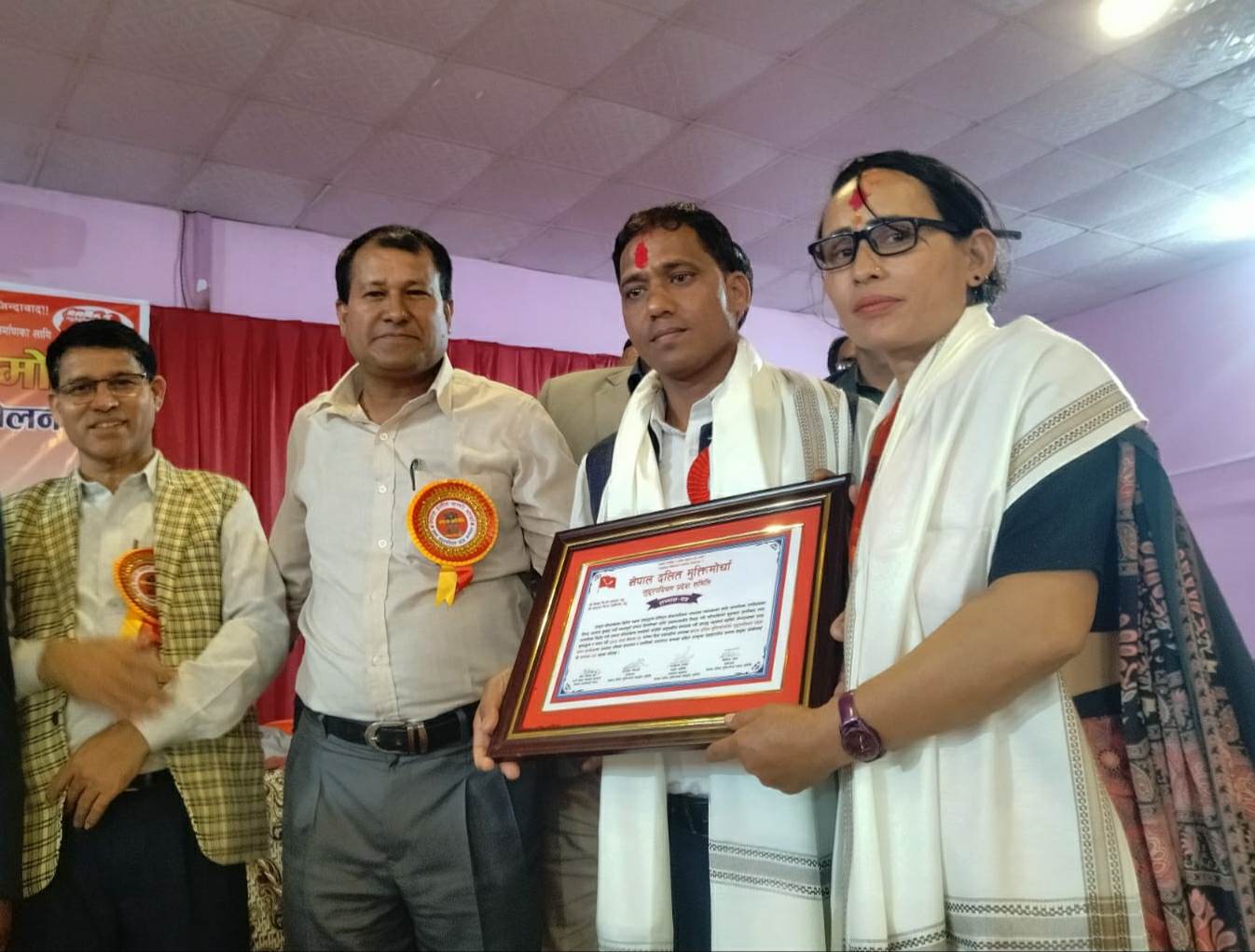 कैलाली। अन्तरजातीय विवाह गरेका नमुना जोडीलाई सम्मानित भएकाछन् । नेपाल दलित मुक्तिमोर्चा सुदूरपश्चिम प्रदेश समितिले अन्तरजातीय विवाह गरेका पत्रकार धनराज विक (अविरल) र जनकलाकार एवम् नेतृ विष्ना विसी (सपना) नमुना जोडीको रुपमा आईतबार धनगढीमा सम्मानित भएकाहुन् । नेपाल दलित मुक्तिमोर्चा सुदूरपश्चिम प्रदेशको प्रथम सम्मेलनका प्रमुख अतिथि एवम् नेपाल दलित मुक्तिमोर्चाका केन्द्रीय फ्याक्सन इन्चार्ज परशुराम रम्तेल र मोर्चाका केन्द्रीय संयोजक एवम् विशिष्ट अतिथि दलजीत श्रीपालीले दोसल्ला र सम्मानपत्रले सम्मान गरेका थिए । नेपाल दलित मुक्तिमोर्चा सुदूरपश्चिम प्रदेश संयोजक बिनिता ओडले अन्तरजातीय विवाह गरि सामाजिक विद्रोह गरेका जोडीको सामाजिक योगदानको मूल्यांकन र कदर गर्दै सम्मानन गरिएको बताईन् । परिवर्तनको सुरुवात आफैबाट गरेर सामाजिक विभेद र उत्पीडनका विरुद्ध आवाज उठाउँदै निरन्तर सामाजिक कार्यमा सक्रिय रहँदै आएका विक र बिसीको जोडी सहित ६ जोडीलाई सम्मान गरिएको उनले बताईन् ।