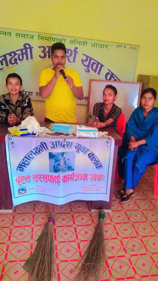 महालक्ष्मी आदर्श युवा क्लबले बृहत् सरसफाइ कार्यक्रम २०८० अन्तर्गत आज विद्यालय, सडक , मठ-मन्दिर,सडक नाला छेउछाउमा रहेका झाडी जगल सरसफाइ गरेको महालक्ष्मी आदर्श युवा क्लबका अध्यक्ष प्रेम सुनारले जानकारी दिनुभयो । महालक्ष्मी आदर्श युवा क्लबले यो भन्दा पहिले युवाहरूको व्यक्तित्व तथा नेतृत्वमा विकासका लागि विभिन्न मेला महोत्सवमा युवा युवतीलाई कला नृत्य प्रश्तुत गराउँदै आएको सुनारले बताए । यसै गरी सरसफाइ कार्यक्रमलाई निरन्तरता दिँदै जाने अध्यक्ष सुनारले बताए । सरसफाइ कार्यक्रममा वडा सदस्य शंकर विक,समाज सेवी, बुद्धिजीवी लगायत स्थानीय र महालक्ष्मी आदर्श युवा क्लबका पदाधिकारी र स्थानीय युवायुवतीहरुको सहभागिता रहेको थियो ।
