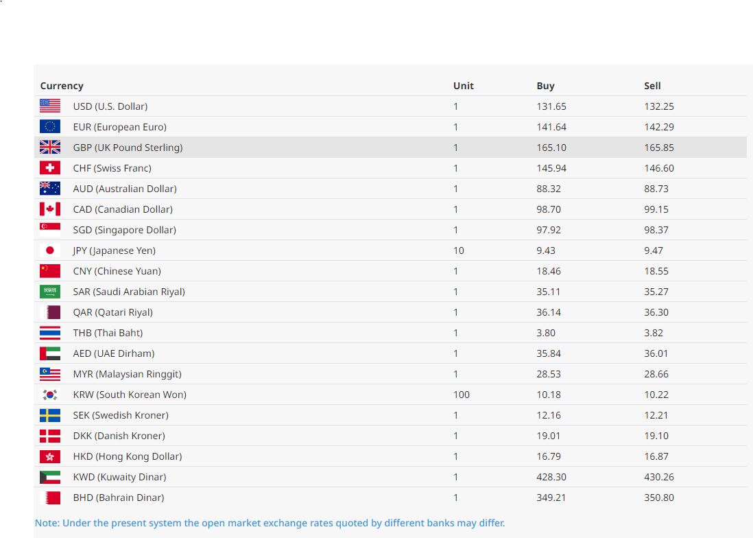 बेलायती पाउण्ड एकको खरिद दर १६५ रूपैयाँ १० पैसा र बिक्री दर १६५ रूपैयाँ ८५ पैसा तथा अष्ट्रेलियन डलर एकको खरिदमूल्य ८८ रुपैयाँ ३२ पैसा र बिक्रीमूल्य ८८ रुपैयाँ ७३ पैसा र क्यानेडियन डलर एकको खरिददर ९८ रुपैयाँ ७ पैसा र बिक्रीदर ९९ रुपैयाँ १५ पैसामा काराेबार गर्न सकिनेछ ।