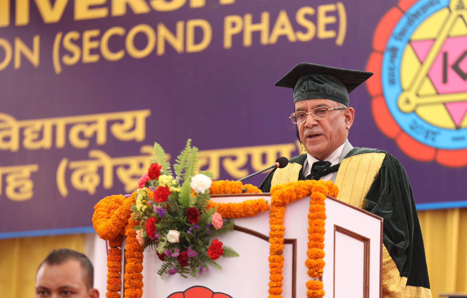 ‘हाल सञ्चालनमा रहेका सबै विश्वविद्यालय र उच्च शैक्षिक संस्थाहरूले पठनपाठन र अनुसन्धानको शैली परिवर्तन गर्न आवश्यक छ। खासगरी विश्वविद्यालयहरूमा स्नातकोत्तर तहका पाठ्यक्रममा अनुसन्धान र नवप्रवर्तनलाई प्राथमिकता दिनुपर्ने हुन्छ। स्नातक तहमा बढी अभ्यासमुखी र सिकाइमा जोड दिनुपर्ने हुन्छ। अनुसन्धानले समाजमा प्रभाव र परिवर्तन ल्याउन नसक्दा साधन र स्रोतको सही सदुपयोग हुँदैन। नेपाल सरकारले पनि विश्वविद्यालय तहको अध्ययन र अनुसन्धानलाई सवल बनाउन सरकारका अनुसन्धान सम्बन्धी कार्यहरू विश्वविद्यालयहरूबाट गराउने निर्णय गरिसकेको हुनाले प्राध्यापकहरूमा राज्यका लागि योगदान गर्ने प्रत्यक्ष अवसर मिल्ने आशा लिएको छु,’ प्रधानमन्त्री प्रचण्डले भने ।