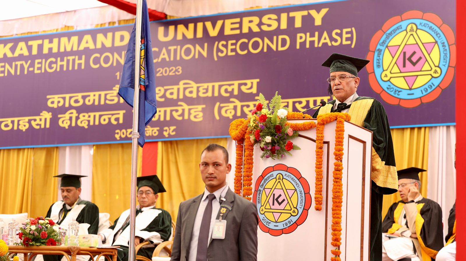 काठमाडौं, २८ जेठ । पुष्पकमल दाहाल प्रचण्डले विश्वविद्यालयको शिक्षा अनुसन्धान र नवप्रवर्तनमा केन्द्रित हुनुपर्ने बताएका छन् । आइतबार दिउँसो धुलिखेलमा आयोजित काठमाडौं विश्वविद्यालयको २८ औं दीक्षान्त (दोस्रो चरण) समारोहमा बोल्दै प्रधानमन्त्री प्रचण्डले विश्वविद्यालयहरूमा स्नातकोत्तर तहका पाठ्यक्रममा अनुसन्धान र नवप्रवर्तनलाई प्राथमिकता दिनुपर्ने र स्नातक तहमा बढी अभ्यासमुखी र सिकाइमा जोड दिनुपर्ने बताएका हुन् ।