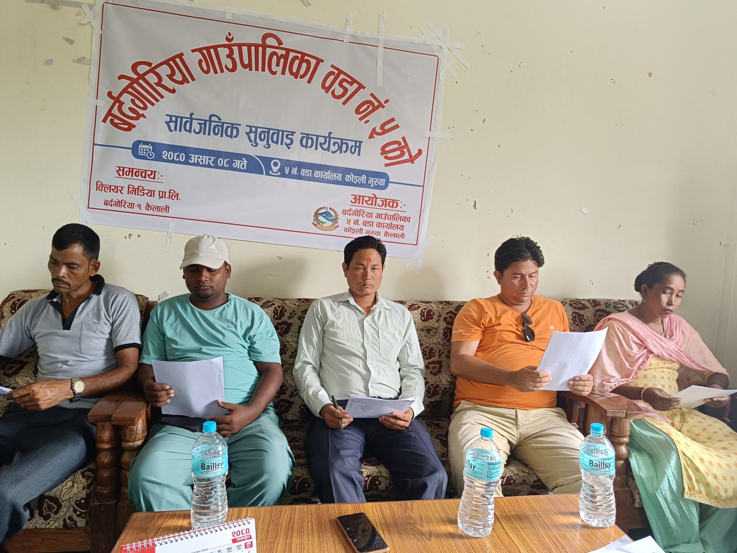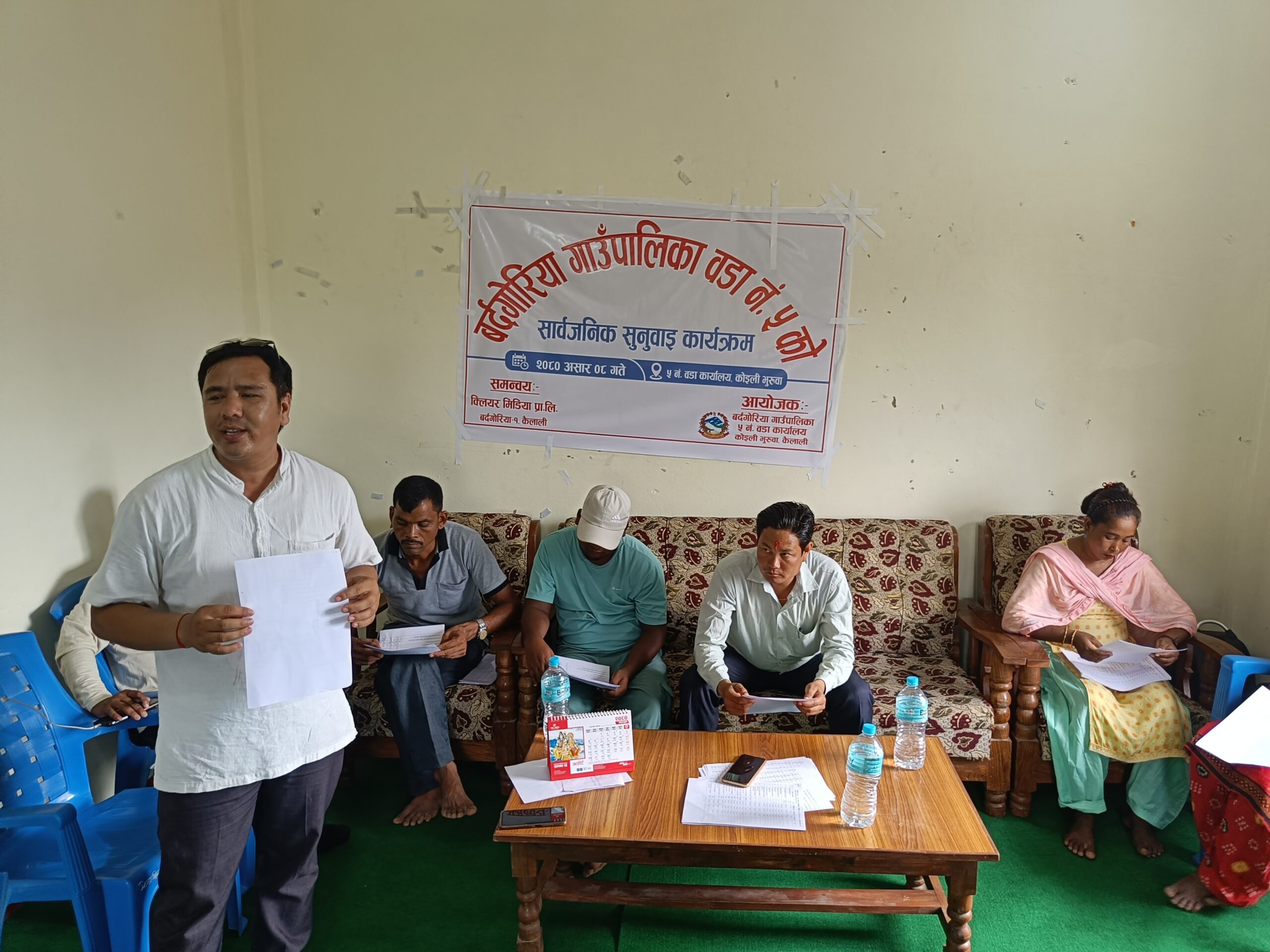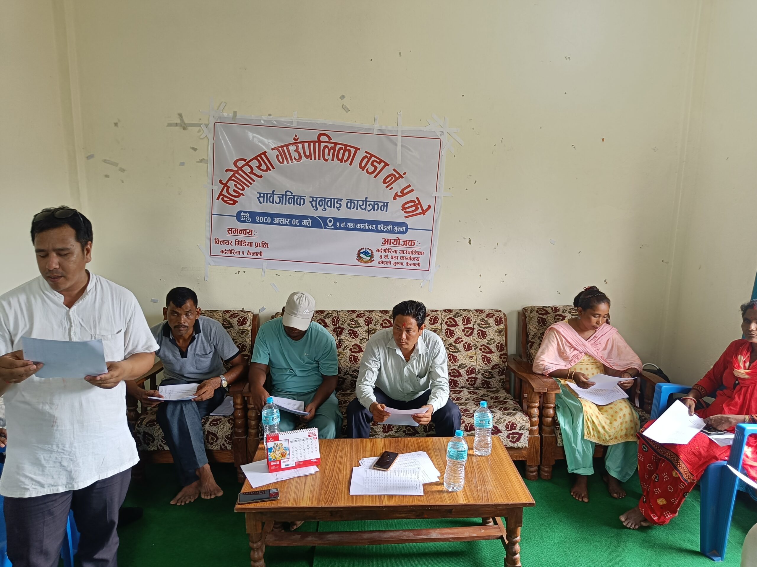 कैलाली । कैलालीको बर्दगोरिया गाउँपालिका वडा नम्बर ५ ले सार्वजनिक सुनुवाइ सम्पन्न गरेको छ । शनिवार एक कार्यक्रमकाको आयोजना गर्दै वडावासीका बिच आर्थिक वर्ष २०७९/०८० का आफ्ना वार्षिक गतिविधिहरू सार्वजनिक गरेको हो ।
