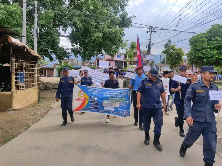 लागुऔषध दुरुपयोग बिरुद्धकाे ऐक्यबद्धता व्यत्ति समाज र राष्ट्रकाे प्रतिबद्धता उल्लेखित ब्यानर र प्लेकार्ड सहितको बिधार्थि,शुरक्षाकर्मि युवाहरूको समुहले लम्किबजार परिक्रमा गरेको थियो ।