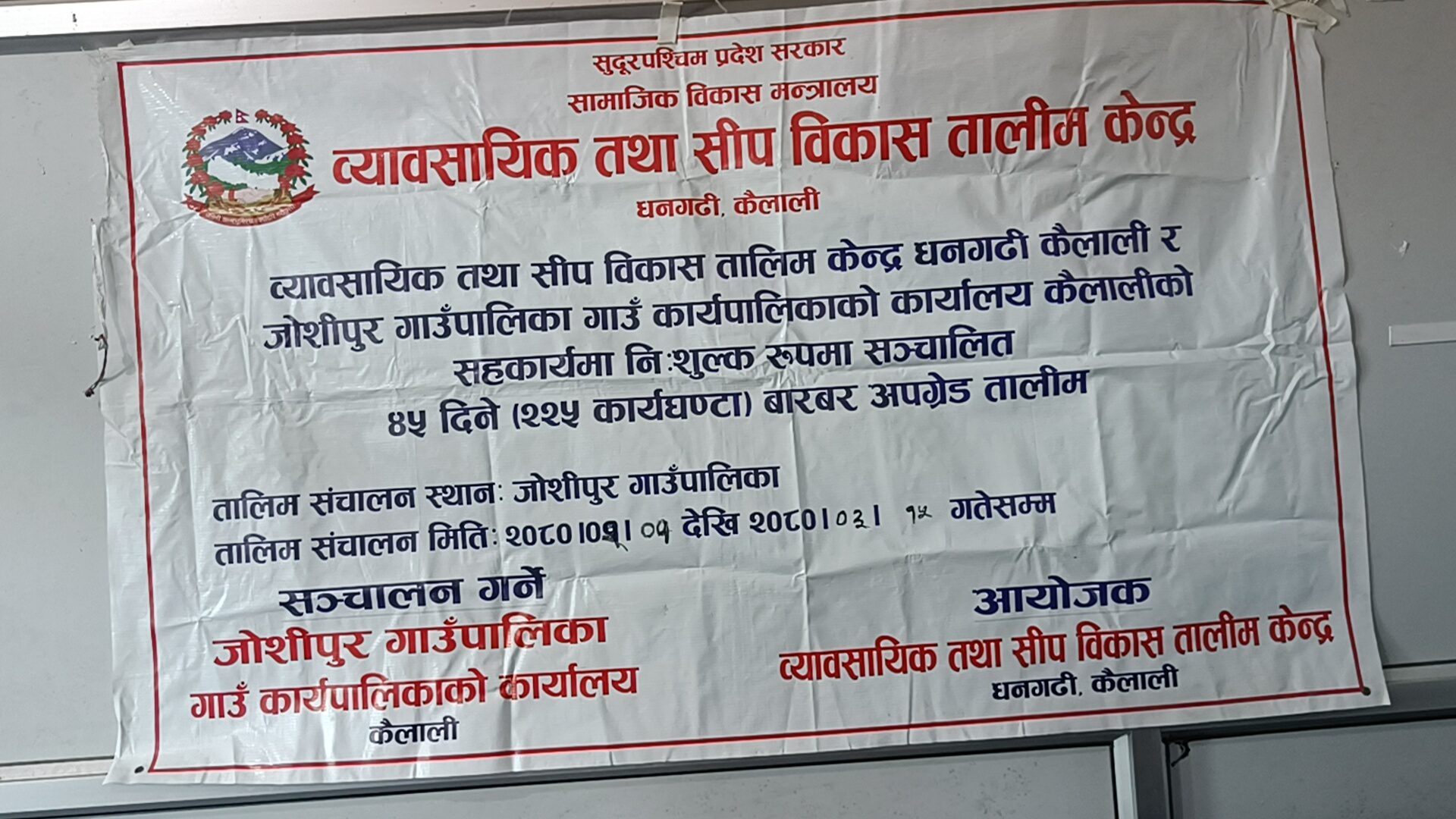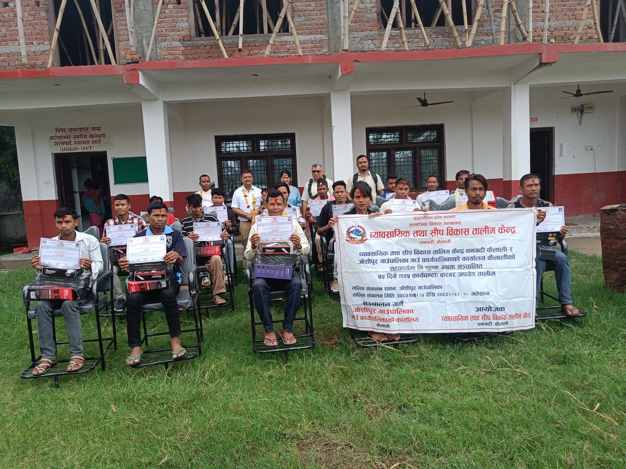उक्त ४५ दिने तालिममा १८ जनाको सहभागिता रहेको थियो । तालिमले बेरोजगार युवाहरूलाई आर्थिक रूपमा सबल बनाउन ठूलो मद्दत पुर्याउने प्रशिक्षक बृर्जु चौधरीले बताउनुभयो । तालिममा सहभागिलाई प्रमाणपत्र तथा व्यवसाय संचालनमा सहयोग पुर्याउने उदेश्यले आवश्यक औजार पनि वितरण गरिएको थियो । कार्यक्रमको संचालन जोशीपुर गाउँपालिका रोजगार शाखा प्रमुख शुसिला बम (देउवा) ले गर्नुभएको थियोे ।
