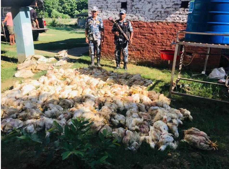 भारतबाट नेपालतर्फ मोटरसाइकलमा राखी ल्याउँदै गर्दा सशस्त्र प्रहरी बल नेपाल सीमा सुरक्षा गुल्म हरपुरका सशस्त्र प्रहरी निरीक्षक सुबाष खत्रीको कमाण्डमा खटिएको मोबाइल गस्ती टोलीले ६ क्विन्टल ६० किलो बोइलर कुखुरा नियन्त्रणमा लिइएको हो । सशस्त्र प्रहरीलाई देखे वित्तीकै मोटरसाइकलबाट कुखुरा फालि मोटरसाइकल लिएर मानिस फरार भएको सशस्त्र प्रहरी २६ नं गणका सूचना अधिकारी सशस्त्र प्रहरी नायब उपरिक्षक देव बहादुर चन्दले जानकारी दिनुभयो । उक्त बरामद अवैध कुखुरा महेशपुर क्वारेन्टाईनको रोबरमा खाडल खनेर कुखुरा नष्ट गरिएको खत्रीले जानकारी दिए ।
