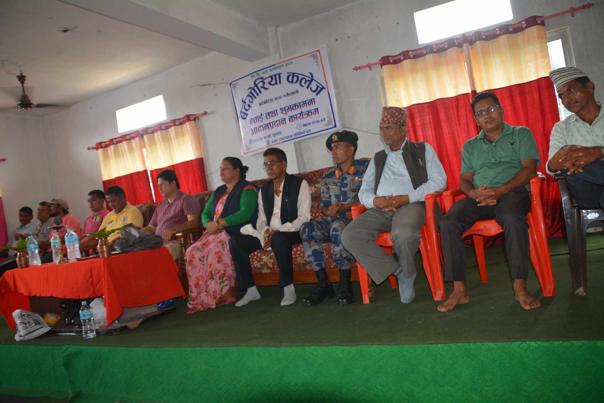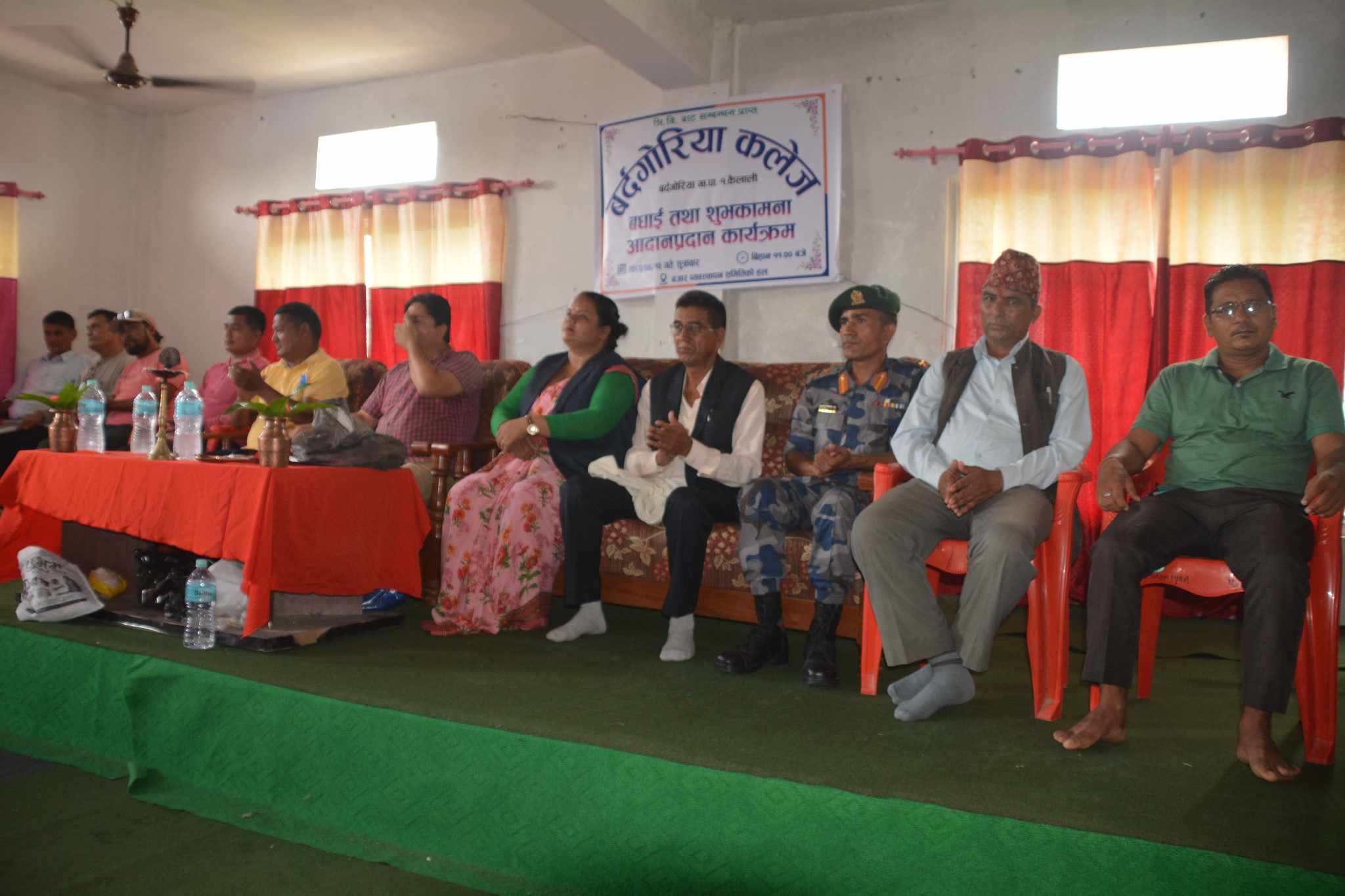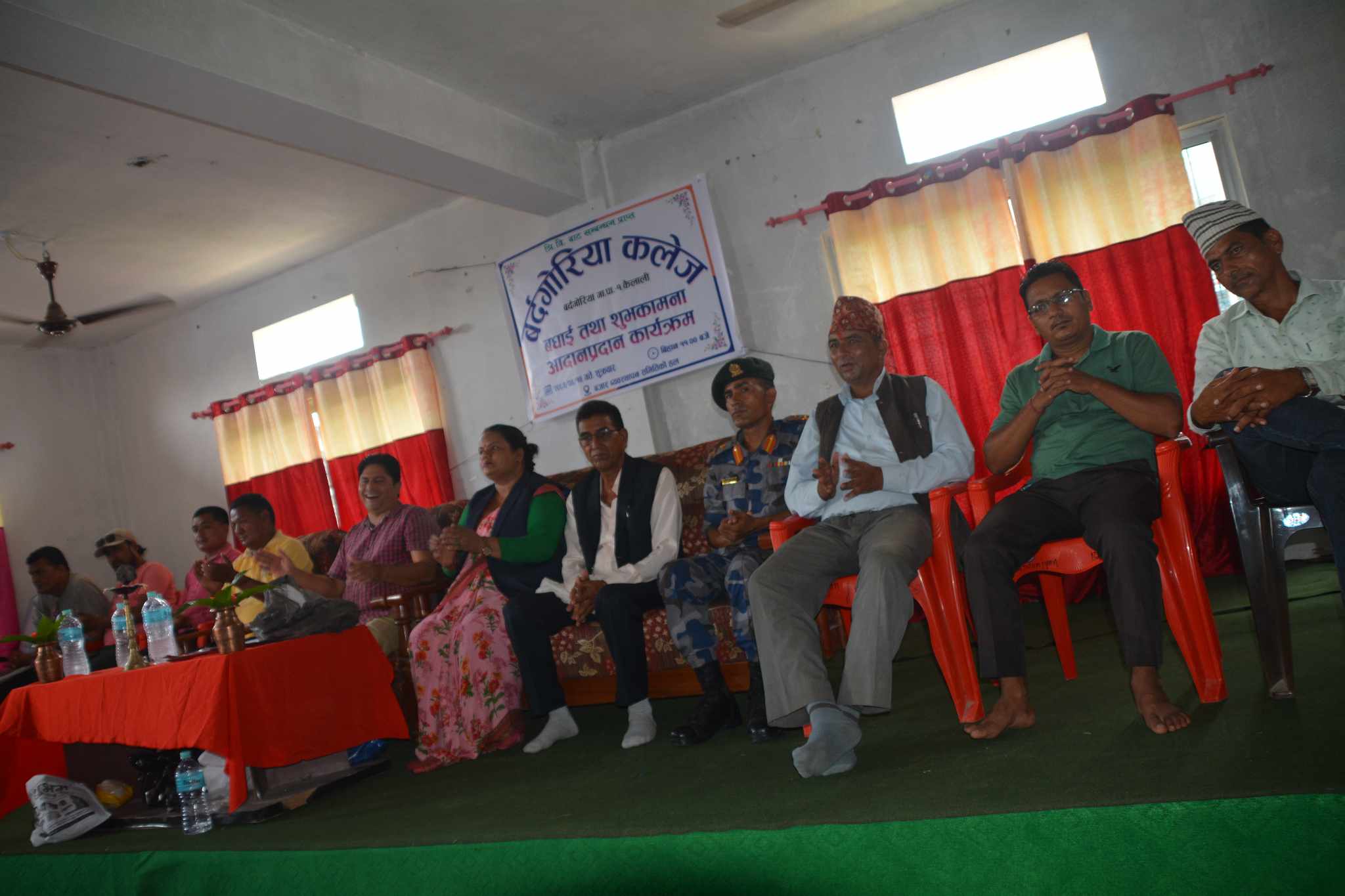 कलेज ब्यबस्थापन सनितिकी सदस्य पबित्रा जैसी गिरिको स्वागत मनतब्य संगै सुरु भएको कार्यक्रममा बिशिस्ट अतिथी पालिका उपाध्यक्ष गणेश राज गिरी ,पुर्व गाउपालिकाका अध्यक्ष वलिराम चौधरी ,वडा नम्बर १का वडा अध्यक्ष मिथुन गौतम ,मोहन्याल गाउपालिकाका वडा नम्बर १ का वडा अध्यक्ष प्रेम बुढा ,नेपाली काङ्ग्रेसका कृष्ण बिस्ट,एमालेका मिलन ओलि ,नेकपा माओवादी केन्द्रका रुपक सुनार,रास्टिय स्वतन्त्र पार्टीका केशव भण्डारी ,रास्टिय प्रजातन्त्र पार्टी का नवीन जोशी ,बसन्त मुरारी नमूना माध्यमिक बिधालयका प्राधानाध्यापक भुमी प्रकाश बम ,बालकन्या माध्यमिक बिधालय ब्यबस्थापन समितिका अध्यक्ष हेमन्त जोशी ,बौनिया बजार ब्यबस्थापन समितिका अध्यक्ष अमरबहादुर बम ,कालिका ग्रामीण बिधुत सहकारी सस्थाका अध्यक्ष देवराज सिह स्वार लगायतका बक्ताले बर्दगोरिया कलेज लाई सबैले आ- आफ्नो क्षेत्रबाट सहयोग गर्नुपर्ने धारणा राखेका थिए ।