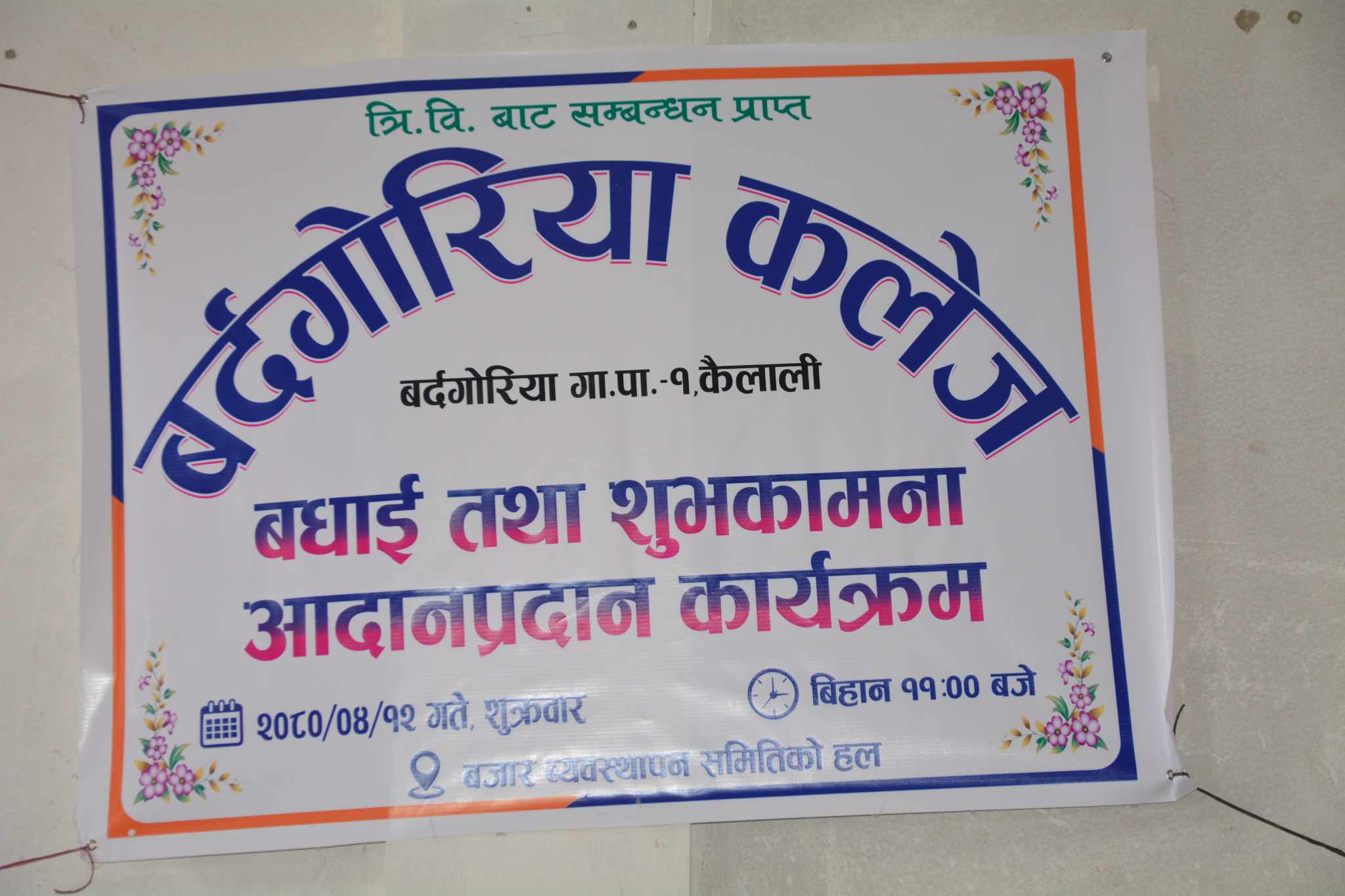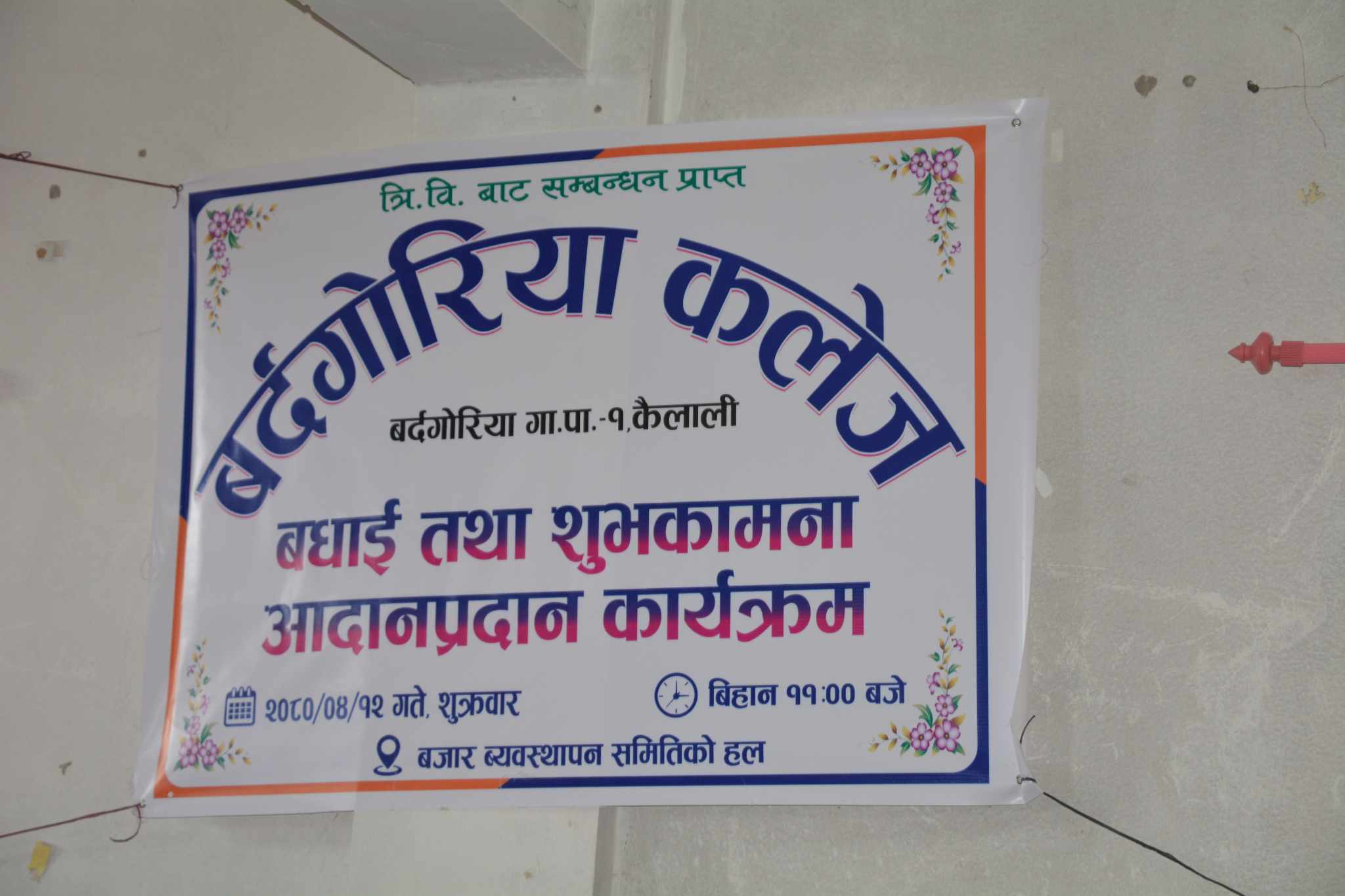 कैलाली । कैलालीको बर्दगोरिया गाउँपालिका अध्यक्ष कर्ण बहादुर कुँवरले बर्दगोरिया कलेजलाई यस क्षेत्रको नमुना कलेजको रुपमा स्थापित गर्ने बताएका छन । शुक्रबार बौनिया बजार व्यवस्थापन समितिको हलमा आयोजित त्रिभुवन बिश्वविद्यालयबाट मान्यता प्राप्त गरेको बर्दगोरिया कलेजको बधाई तथा शुभकामना आदानप्रदान कार्यक्रममा बोल्दै अध्यक्ष कुँवरले सो कुरा बताएका हुन ।