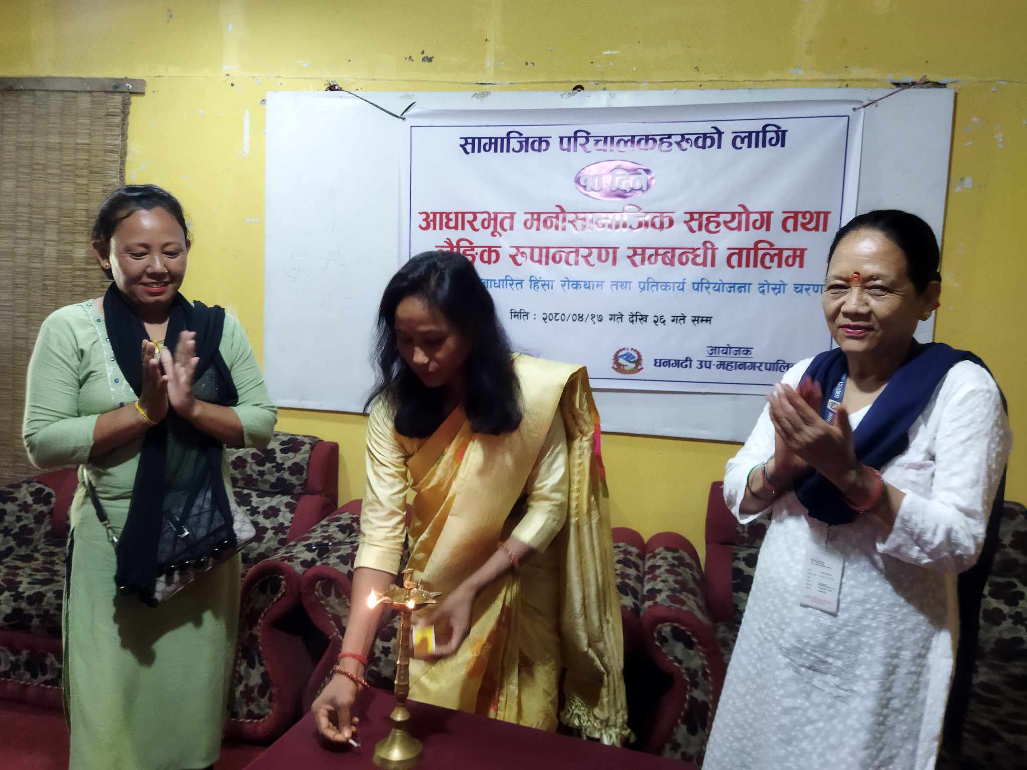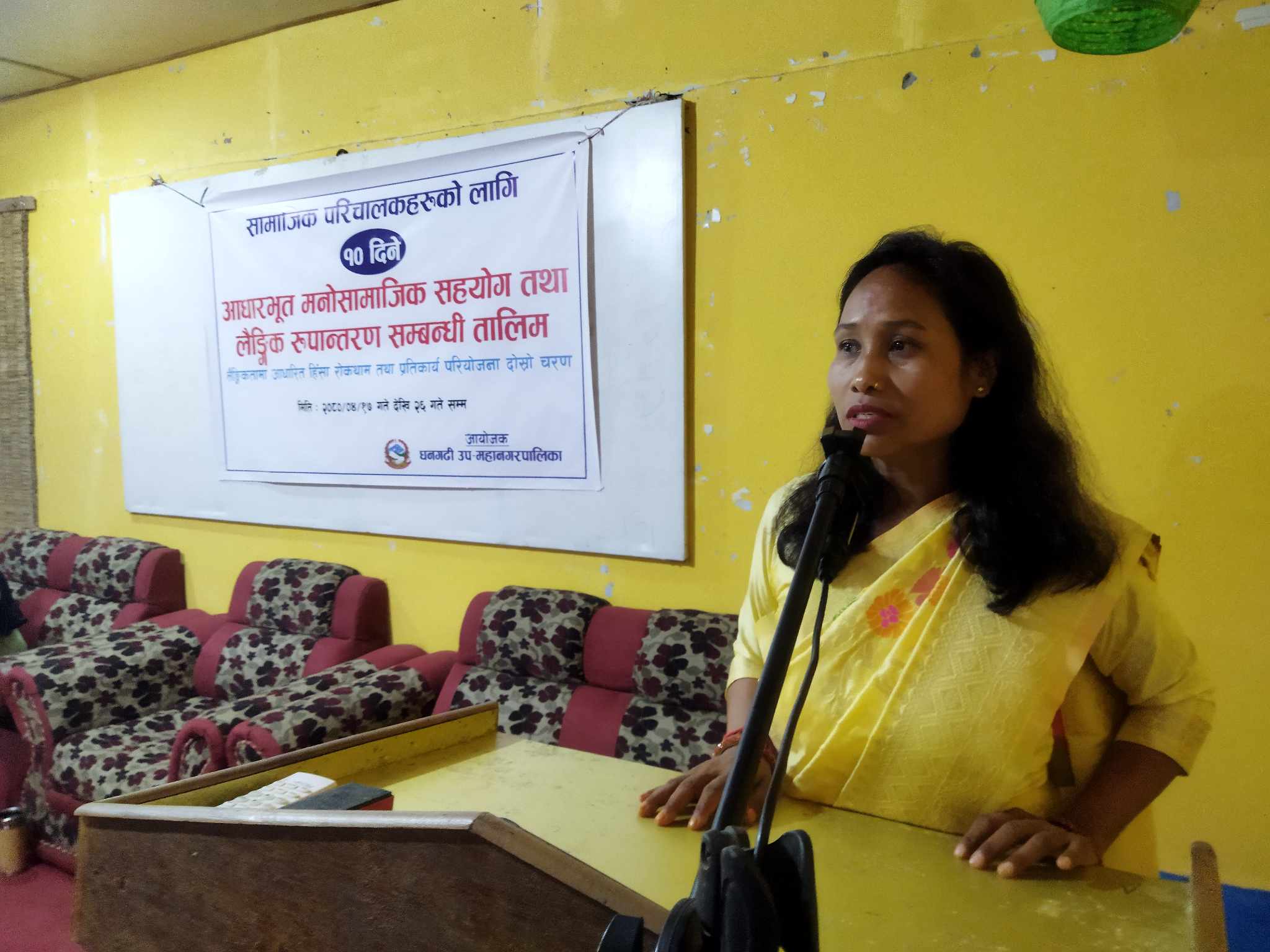 तालिमको उद्घाटन समारोहका अध्यक्ष एवम् धनगढी उपमहानगरपालिकाको नगर उपप्रमुख कन्दकला रानाले परिवर्तनका लागि सामाजिक र मानविय विकास हुनुपर्ने बताईन् । सामाजिक र मानविय विकास भएन भने भौतिक विकास अपुरो हुने भन्दै धनगढी उपमहानगरपालिका सामाजिक र मानविय विकासका पक्षमा रहेको रानाले बताईन् । लैंगिक हिंसा पीडितलाई सहयोग गर्ने, मनोसामाजिक समस्यामा परेकाहरुलाई मनोसामाजिक परामर्श सेवा दिने काम भईरहेको उनले बताईन् ।