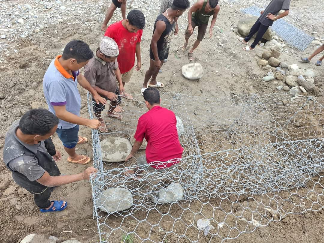 उनले भने– ’उक्त तटबन्धका लागि आवश्यक पर्ने ग्याबिन जाली गाउँपालिकले व्यवस्थापन गर्ने भनेको छ । तटबन्ध कार्य सोही स्थानका स्थानीय वासीको जनश्रमदान मार्फत हुँदै छ । यो तटबन्ध अहिले वस्ती जोखिममा बाट बचाउनको लागि बनाएको हो । तर उक्त बस्तीलाई नदि कटानको जोखिम बाट बचाउनका लागि चालु आर्थिक वर्षको मंसिर सम्ममा तटबन्धका लागि केन्द्र सरकार, प्रदेश सरकार र गाउँपालिका सरकारको साझेदारीमा ३ करोड बराबरको ठेक्का खुल्ने छ ।