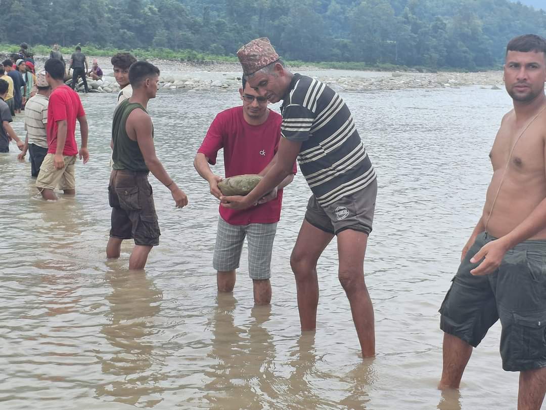 बाढीका कारण बस्ती जोखिममा परेपछि तत्कालका लागि वस्ती जोखिम बाट बचाउनका लागि जनश्रमदान मार्फत तटबन्धको कार्य शुरु गरेको मोहन्याल गाउँपालिका अध्यक्ष देविदत्त उपाध्यायले जानकारी दिए।