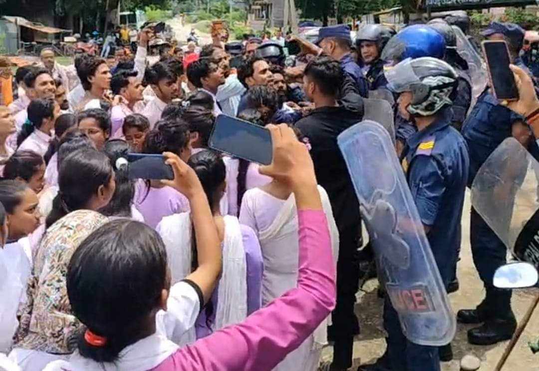 गाउँपालिकाकाे कार्यालय बेलाटारी घेराउ गर्न पुगेपछि प्रहरी र विद्यार्थीबीच तनाव उत्पन्न हुंदा लाठीचार्ज र ५ राउण्ड अश्रुग्यांस प्रहार गरिएकाे छ । प्रहरीतर्फ ७ र विद्यार्थीतर्फ ६ गरि कुल १३ जना घाइते भएका छन् ।