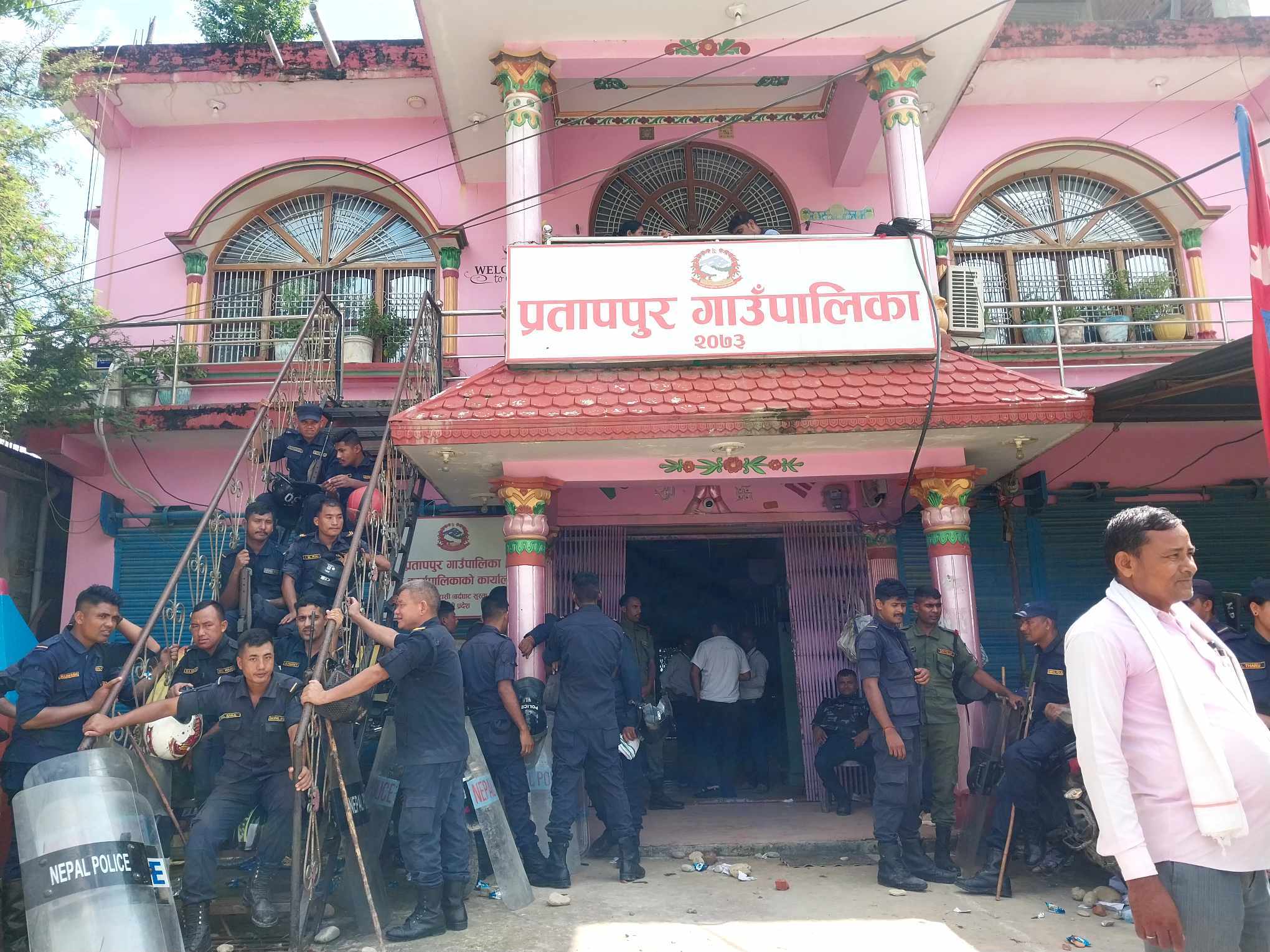 यसैबीच प्रतापपुर गाउँपालिकाका नगर प्रहरी सहितका केही जनप्रतिनिधि पुगेर बुधबार क्याम्पस मुल गेटको ताला फोडेको क्याम्पस व्यवस्थापन समितिका अध्यक्ष अमुल पाण्डेले बताए । ताला फोडेपछि आक्रोशित विद्यार्थीहरु बिहीबार गाउँपालिका घेराउ गर्न पुगेका थिए । सोही क्रममा प्रहरी र विद्यार्थीबीच विवादहुँदा झडप भएको हो ।