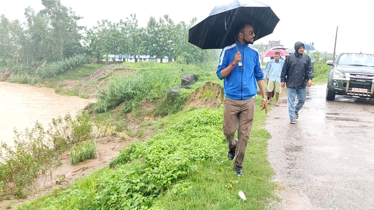 नदी नजिकका बस्तीमा खोलाको पानी पसे पछि सयौँ जमीन काट्न गर्दै आएको छ। सो को अनुगम गर्न उहाँ आज (आईतबार) त्यहाँ पुग्नुभएको हो ।