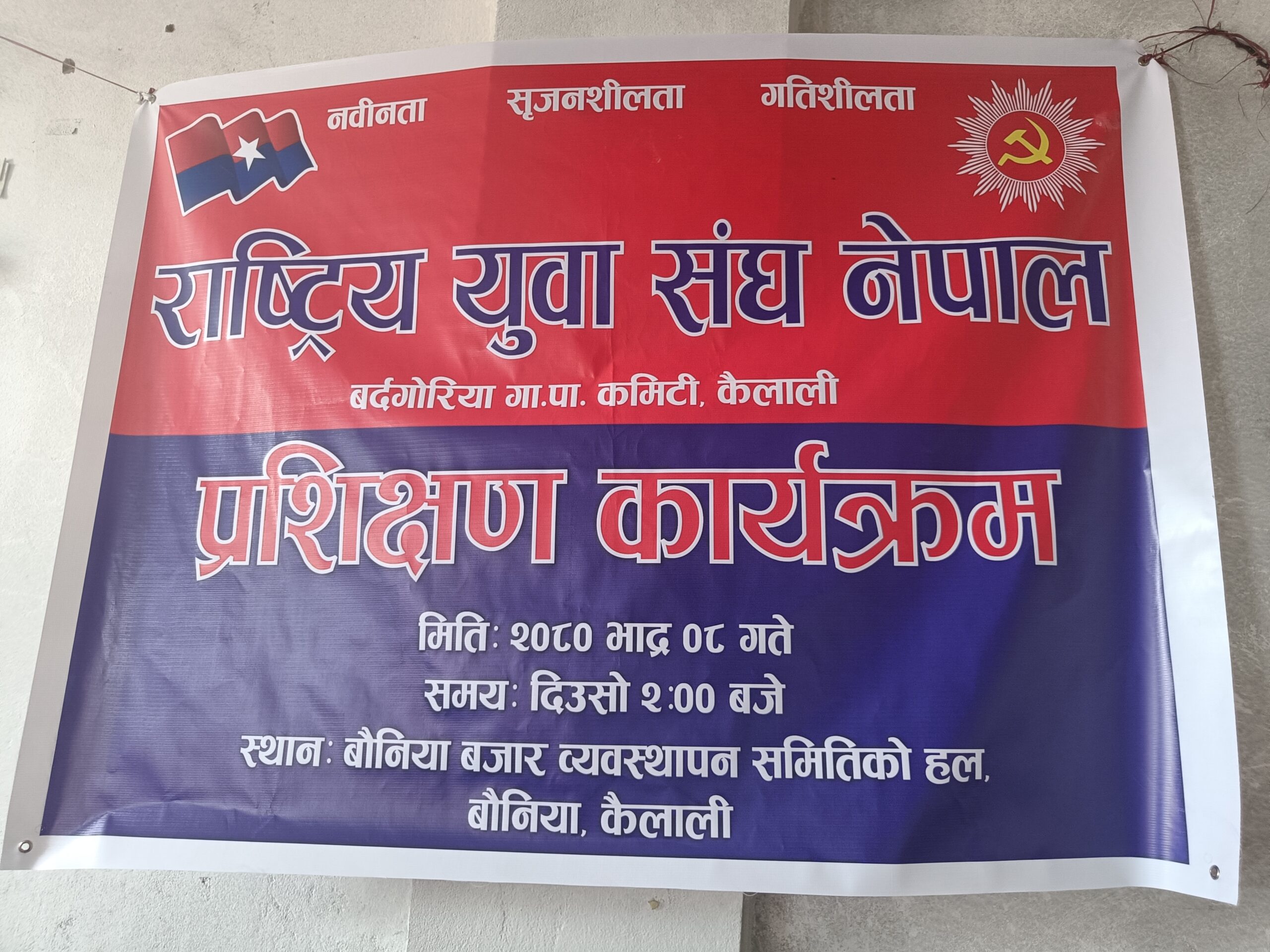 कैलाली । राष्ट्रिय युवा संघ नेपाल बर्दगोरिया गाउँ कमिटीको प्रशिक्षण कार्यक्रम शुक्रबार सम्पन्न भएको छ ।