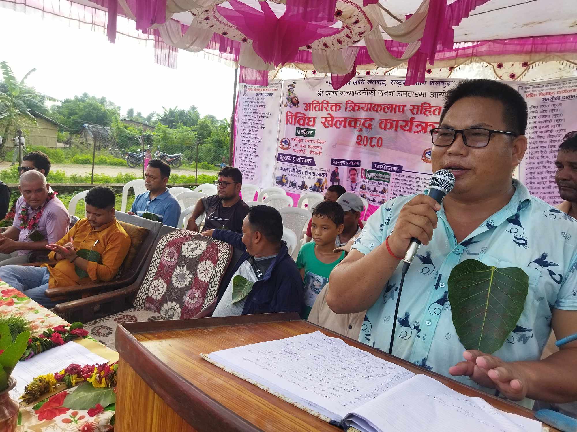 निवर्तमान वडा अध्यक्ष एवम् कार्यक्रमका विशिष्ट अतिथि नेत्र सुनाखरी मगरले समाजमा सबैले मिलेर बस्नुपर्ने भन्दै सामाजिक र मानविय विकासमा लगानी गर्नुपर्ने बताए । आफ्नो कार्यकालमा सहयोग गर्ने सबैलाई धन्यवाद व्यक्तगर्दे खेलको माध्यामबाट गाउँ समाज र देशलाई चिनाउन सकिने उनले बताए । सरकार एक्लैले मात्र केही गर्न नसक्ने भन्दै सामाजिक विकासका काममा सबैले अग्रसर हुनुपर्नेमा मगरले जोड दिए ।