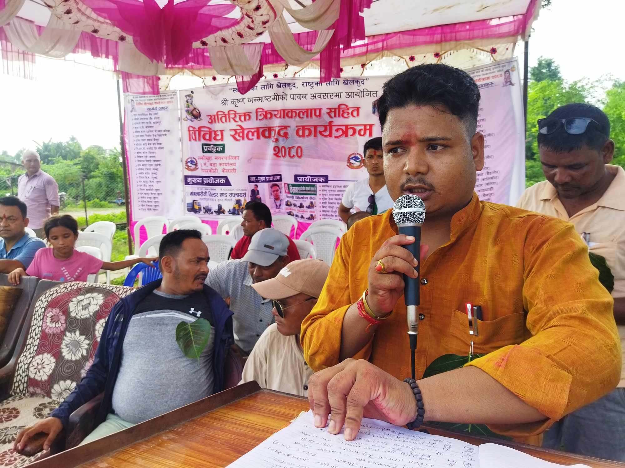 कैलाली। खेल क्षेत्रको विकास संगै सामाजिक विभेदका विरुद्ध सबैले बोल्नुपर्ने सरोकारवालाहरुले जोड दिएकाछन् । श्री कृष्ण जन्माष्टमीको अवसरमा श्री शम्भु सुनन्दा युवा क्लब लम्कीचुहा नगरपालिका ६ चैनपुरले आयोजना गरेको अतिरिक्त क्रियाकलाप सहित विविध खेलकुद कार्यक्रमको उद्घाटन समारोहमा बोल्ने वक्ताहरुले खेल क्षेत्रको विकास संगै परिवर्तनका लागि सामाजिक विभेदका विरुद्ध सबैले बोल्नुपर्नेमा जोड दिएकाहुन् ।
