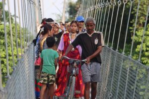 कैलाली । कैलाली जिल्ला को बर्दगोरिया गाउँपालिका वडा नम्बर ६ मा नवनिर्मित झोलुङ्गे पुलको उद्घाटन गरिएको छ । शुक्रबार सुदुरपश्चिम प्रदेशका भुमि व्यवस्था तथा कृषि सहकारी मन्त्री रामेश्वर चौधरी, बर्दगोरिया गाउँपालिका अध्यक्ष कर्ण बहादुर कुवरले वडा नम्बर ६ मा नवनिर्मित सुगरखाल – जोकाही झोलुङ्गे पुलको संयुक्त रूपमा उद्घाटन गर्नुभयो ।