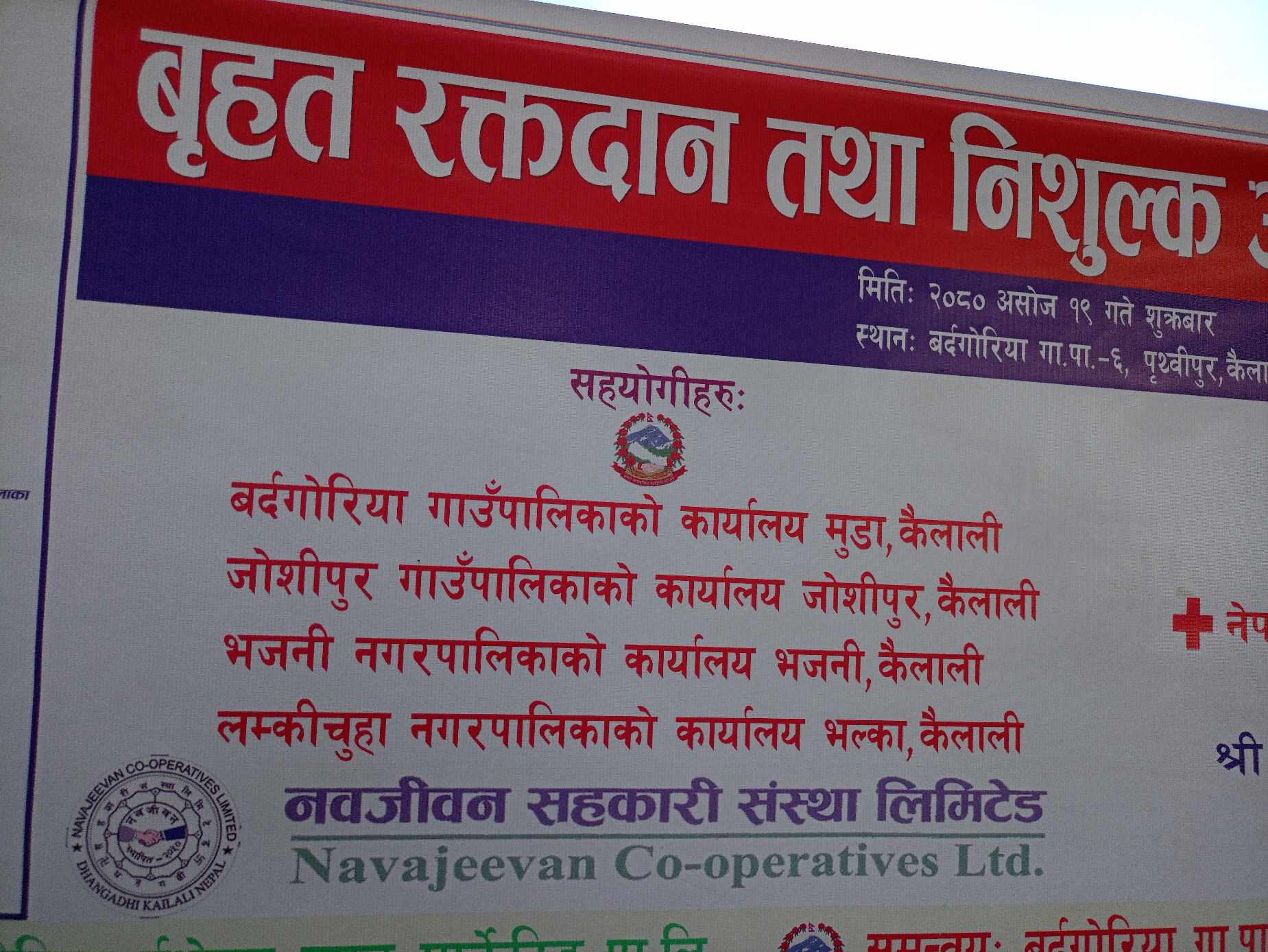 बौनिया । कैलालीको बर्दगोरिया गाउँपालिकामा १ दिने निःशुल्क आँखा शिविर तथा वृहत रक्तदान कार्यक्रम आज सम्पन्न भएको छ ।