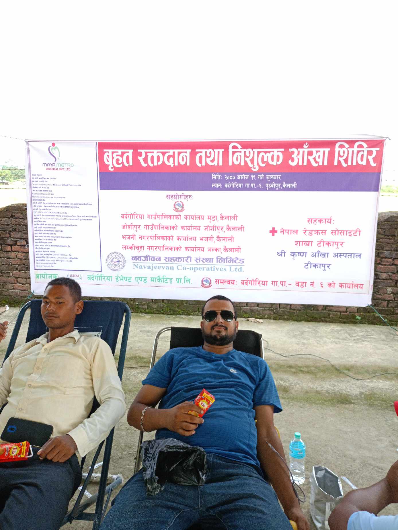 पालिकाको वडा नम्बर -६ स्थित हाटबजारमा नेपाल रेडक्रस सोसाइटी टिकापुर शाखा, श्रीकृष्ण आँखा अस्पताल टिकापुरको सहकार्य तथा बर्दगोरिया वडा नं -६ को समन्वयमा बर्दगोरिया इभेण्ट एण्ड मार्केटिङ प्रा.ली.को आयोजनामा उक्त कार्यक्रम सम्पन्न भएको हो ।