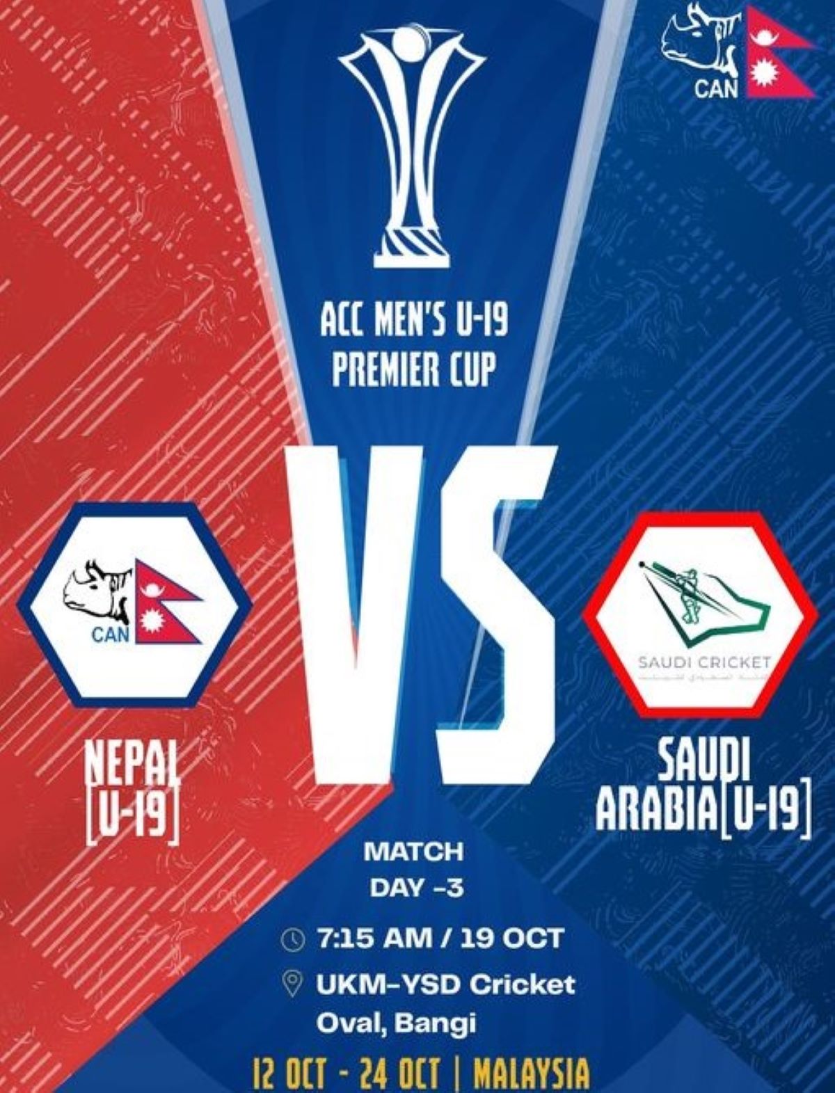 एसीसी यू–१९ प्रिमियर कपः नेपालले साउदी अरबसँग प्रतिस्पर्धा गर्दै