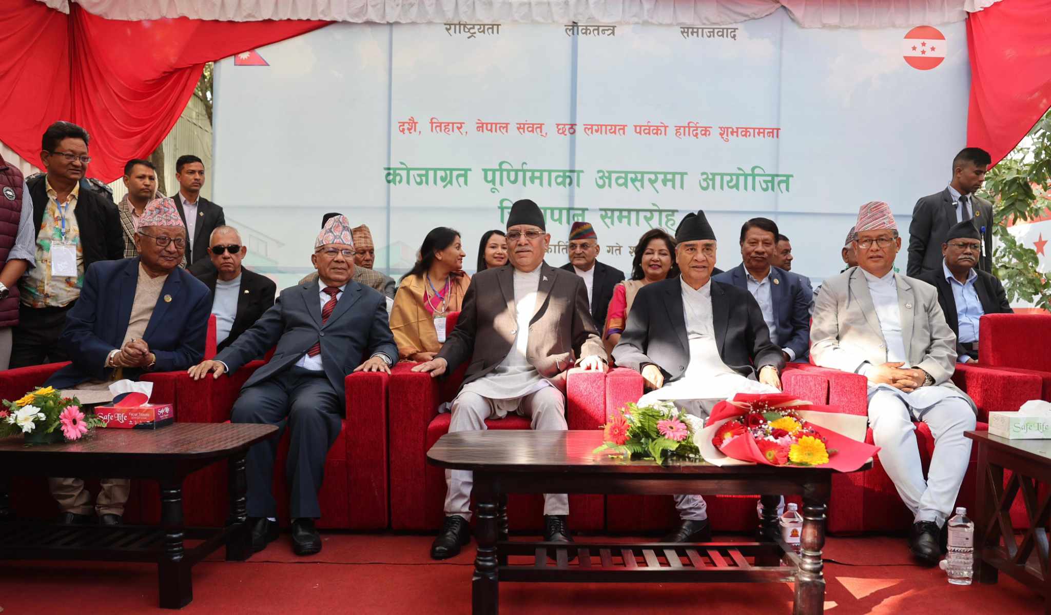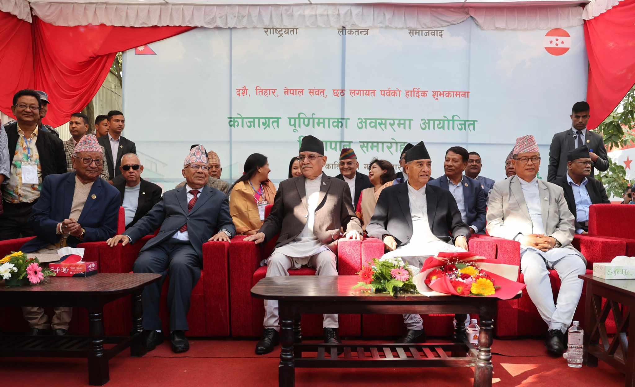 काठमाडौं। नेपाली कांग्रेसको जारी चियापान कार्यक्रममा शिर्ष नेताहरू जाने क्रम जारी रहेको छ । नेकपा एमालेका अध्यक्ष केपी शर्मा ओली पुगेको केही समय पछि प्रधानमन्त्री पुष्पकमल दाहाल प्रचण्ड पनि चियापानमा पुगेका छन् । कांग्रेस हरेक बर्ष कोजाग्रत पुर्णिमाका दिनमा चियापान कार्यक्रमको आयोजना गर्दै आएको छ ।