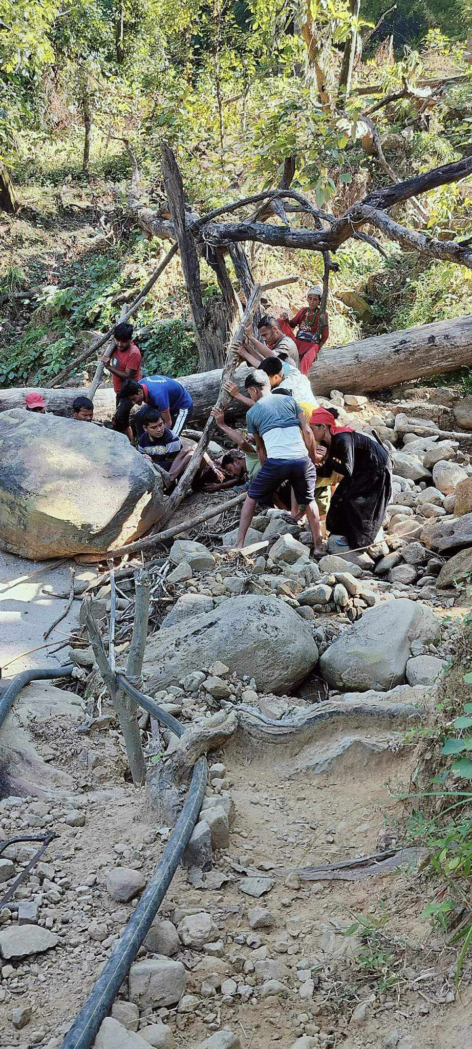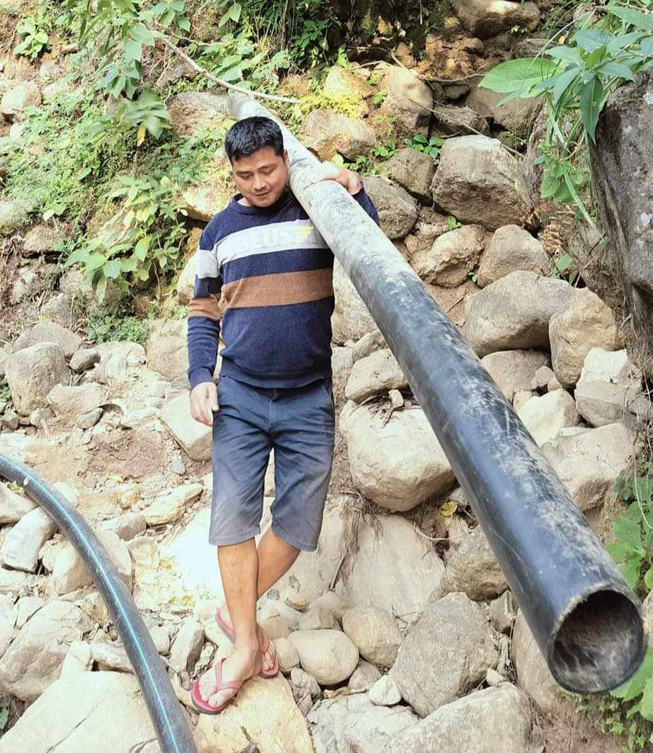 कैलाली । सार्वजनिक पद र प्रतिष्ठामा रहँदा होस् चाहे नरहँदा । काम गर्ने ईच्छाशक्ति भए सामाजिक सेवामा हातेमालो गरेर पनि थुप्रै विकासका कामहरु गर्न सकिन्छ । यस्तै, प्रेरणादायी स्रोत बनेका छन्, कैलालीको मोहन्याल गाउँपालिका–१ का वडाध्यक्ष प्रेमबहादुर बुढा । पछिल्लो समय वर्षाको कारण सिचाँइ आयोजनाका पाइप टुटफुट भएर बिग्रिएका छन् । वर्षायामपछि अस्तव्यस्त उक्त कृषि सिचाँइ आयोजनाको पाइपलाइन मर्मतमा तीन दिनदेखि स्थानीयसँग श्रमदानमा जुटेको उनले सुनाए । कतिपय विकास निर्माणका कामहरु सरकारी बजेटभन्दा बाहिर जनश्रमदान गरेर पनि समस्या समाधान सकिने वडाध्यक्ष बुढाको अनुभव छ । ‘यो आयोजना २०७२/०७३ सालमा रु ३४ हजार लगानीमा बनेको हो । त्यसयता, कुनैपनि निकायबाट विकास र विस्तारका लागि थप बजेट परेको थिएन ।’ उनले भने, ‘वर्षाको बाढी पहिरोका कारण टुटफुट भएको थियो । यसलाई सबै मिलेर मर्मतसम्भार गरेका हौं ।’ उनले अहिले उक्त खोलामा सिचाँइ आयोजनाको मुख्य बाँध भत्किएकाले कृषि तथा खेतीपाती सिचाँइमा समस्या भएको बताए । चालू आर्थिक वर्षमा आवश्यक बजेटको व्यवस्थापन गर्ने योजना रहेको समेत उनले बताए । सामाजिक कार्यमा सक्रिय वडाध्यक्ष बुढाले निर्वाचित हुनुअघि पनि झण्डै ५ किलोमिटर ग्रामीण मोटर बाटोको ट्रयाक खोलेका थिए । जसले यहाँका स्थानीयलाई आवतजावतमा निकै सहज भएको छ ।