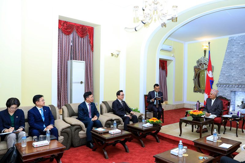 काठमाडौं, १६ कार्तिक । राष्ट्रपति रामचन्द्र पौडेलसँग गणतन्त्र कोरियाका कृषि, खाद्य तथा ग्रामीण मामिलामन्त्री चुङ वाङ केन नेतृत्वको प्रतिनिधिमण्डलले शिष्टाचार भेट गरेको छ।