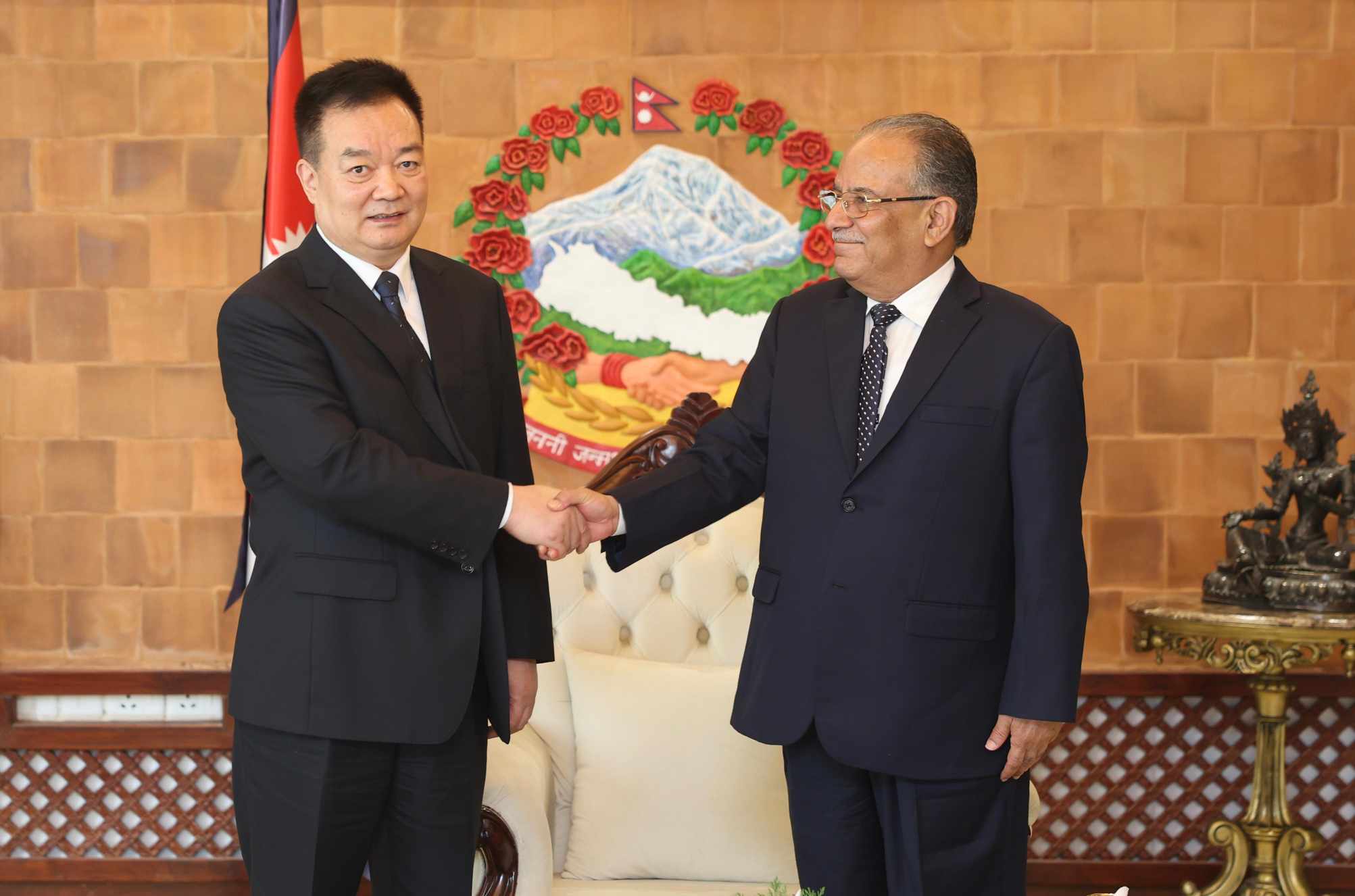 काठमाडौं,। चिनियाँ कम्युनिष्ट पार्टी (सीपीसी) का तिब्बत स्वायत्त क्षेत्रका सचिव वाङ छुङछेङ र प्रधानमन्त्री पुष्पकमल दाहाल प्रचण्डबीच भेटवार्ता भएको छ । बिहिबार प्रधानमन्त्री निवास बालुवाटारमा भएको भेटमा सचिव वाङ छुङछेङ लगायतको टोली सहभागीता रहेको प्रधानमन्त्रीको सचिवालयले जनाएको छ । भेटमा दुई देश बीचको आपसी सहकार्य र आपसी हितका बारेमा छलफल भएको छ ।