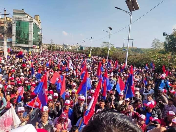 काठमाडौं । एमाले निकट युवा संघले काठमाडौंको तीनकुनेमा शक्ति प्रदर्शन गरिरहेको छ । युवा संघका नेता कार्यकर्ताहरू पार्टीको झन्डासहित तीनकुनेको सडकमा सरकारका बेथितिविरुद्ध नाराबाजी लगाइरहेका छन् । उनीहरुलेभ्रष्टाचार, अपराधसहित बेथितिविरुद्ध नारा लेखिएका प्लेकार्डहरु बोकेका छन् ।तस्बिर : बाबु छत्कुली भ्रष्टाचार, अपराधसहित बेथितिविरुद्ध नारा लेखिएका प्लेकार्डहरु बोकेका छन् ।तस्बिर : बाबु छत्कुली