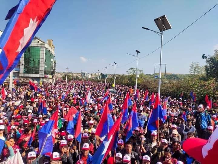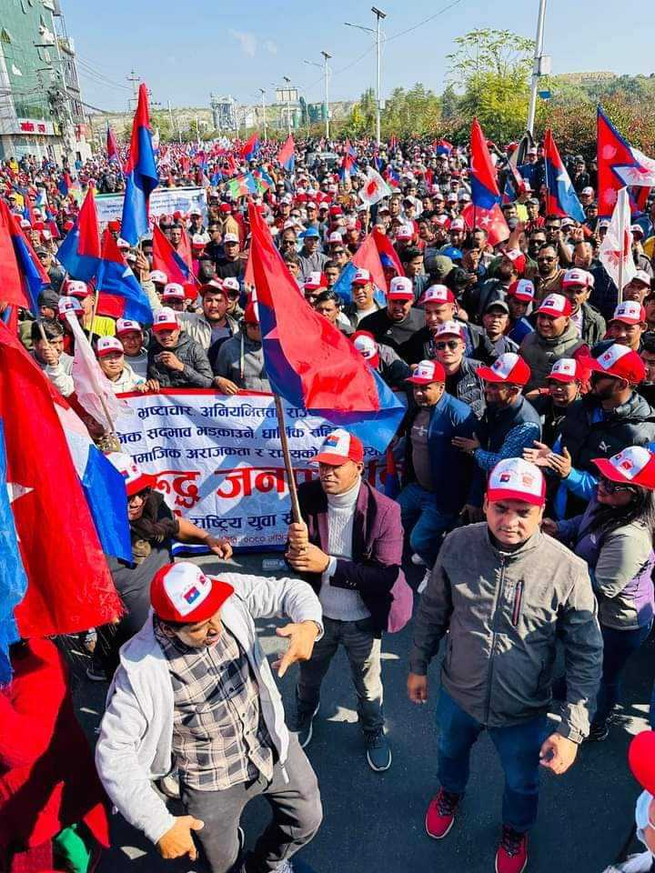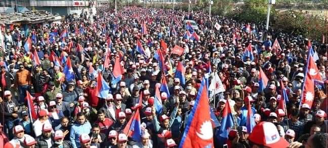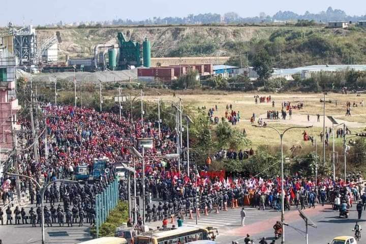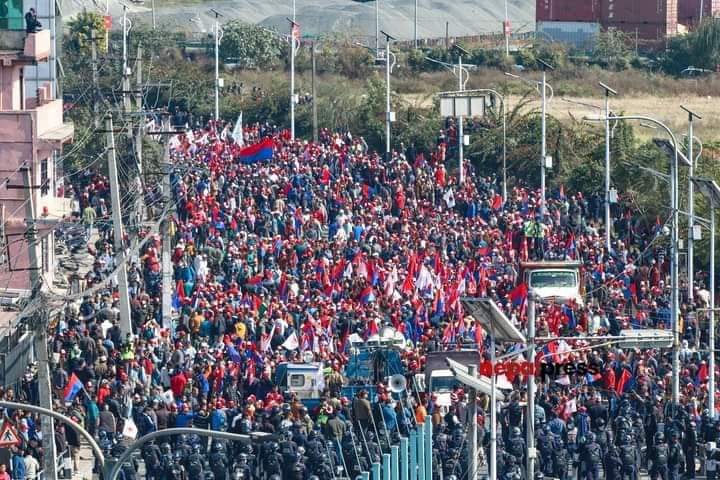 काठमाडौं । एमाले निकट युवा संघले काठमाडौंको तीनकुनेमा शक्ति प्रदर्शन गरिरहेको छ । युवा संघका नेता कार्यकर्ताहरू पार्टीको झन्डासहित तीनकुनेको सडकमा सरकारका बेथितिविरुद्ध नाराबाजी लगाइरहेका छन् । उनीहरुलेभ्रष्टाचार, अपराधसहित बेथितिविरुद्ध नारा लेखिएका प्लेकार्डहरु बोकेका छन् ।तस्बिर : बाबु छत्कुली भ्रष्टाचार, अपराधसहित बेथितिविरुद्ध नारा लेखिएका प्लेकार्डहरु बोकेका छन् ।तस्बिर : बाबु छत्कुली