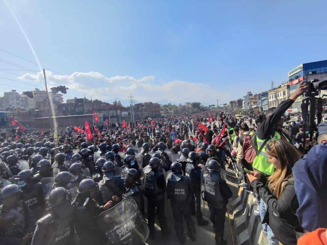 काठमाडौं । मेडिकल ब्यावसायी दुर्गा प्रसाईको कार्यक्रममा झडप भएको छ। बल्खुमा जम्मा भएको प्रदर्शनकारी अब कालिमाटी हुँदै शहर जानेछन भनेर प्रसाईले आब्हान गरे पछि प्रहरीले रोकेको हो ।प्रदर्शनकारी कालिमाटीतर्फ जाने र प्रहरीले रोक्ने भएपछि झडप सुरू भएको हो ।