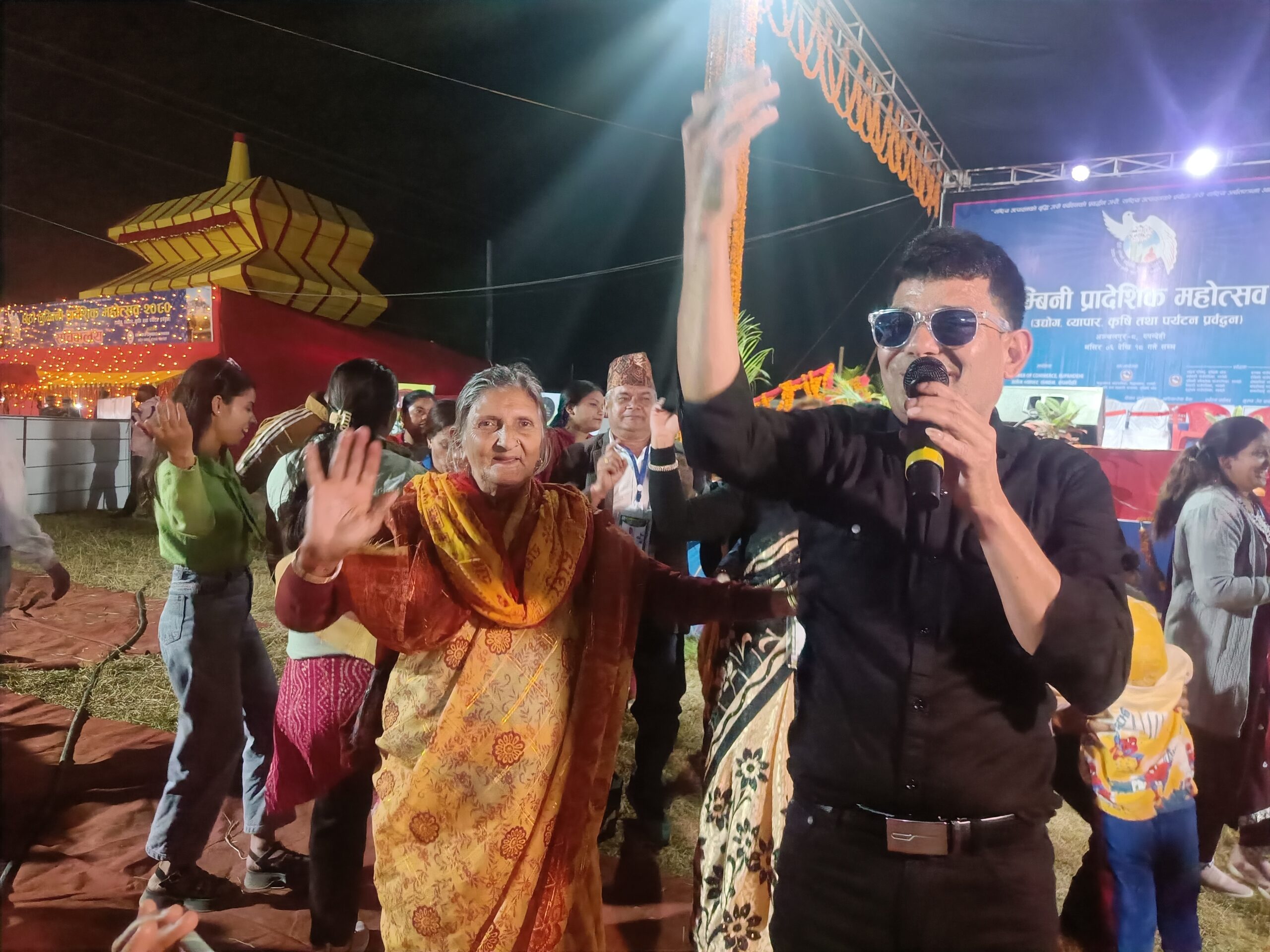 भैरहवा । ‘लेउ खुकुरी लेउ जनता लेउ खुकुरी लेउ, भ्रष्टाचारी जतिलाई पुर्याइदिउँ छेउ’ भन्दै गायक नविन पौडेलले गीत के गाएका थिए रुपन्देहीको सैनामैना बस्ने ८६ वर्षीया ज्ञानधरी अर्याल नाच्न स्टेज निरै पुगिन् । गायक पौडेलेले हालको परिस्थिति र अवस्थालाई संगीतको माध्यमबाट प्रस्तुत गर्दा गीतको लयसँगै उनी निकैबेरसम्म नाचिन् ।उमेरले ज्येष्ठ नागरिक भए पनि नृत्यमा भने ‘भ्रष्टाचारी जतिलाई पुर्याइदिउँ छेउ’ भन्दै दोहोराउँदै तन्नेरीकै शैलीमा अर्याल भुरुक्क भुरुक्क नाचेर साथ दिइन् । देशको समसामयिक अवस्थालाई शब्द सिर्जना साथै स्वरमार्फत् जनतालाई जागरुक गराउने पौडेलको त्यो गीतबाट अर्यालले भरपुर मनोरञ्जन गरिन् ।