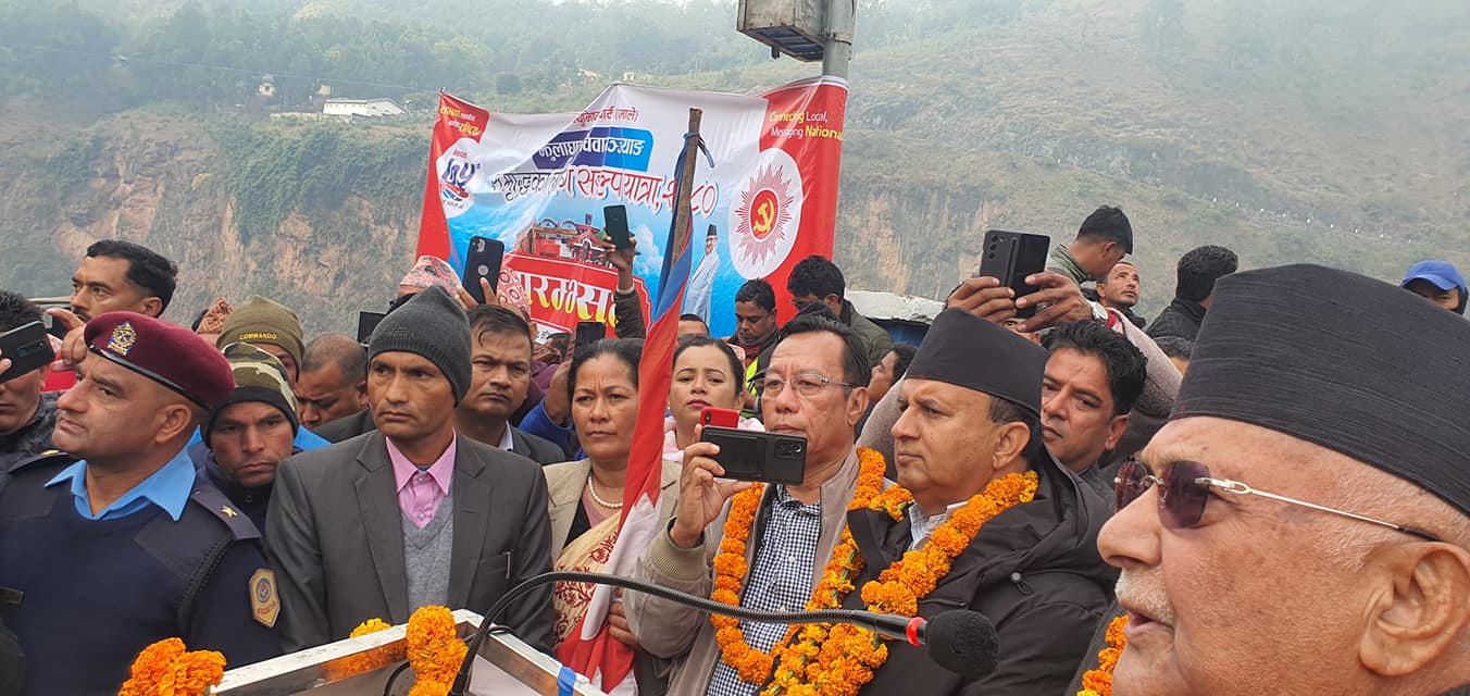 काठमाडौं । नेकपा एमालेको मध्य पहाडी लोक मार्ग पदयात्रा आजबाट सुरु भएको छ।अध्यक्ष केपी शर्मा ओलीले बैतडीको झुलाघाटबाट मध्य पहाडी लोक मार्ग यात्राको उद्घाटन राष्ट्रिय झन्डाको झन्डोतलन गरी सुरू गरेका छन् ।पुष्पलाल राजमार्ग नामकरण गरिएको मध्य पहाडी राजमार्गको करिब एक हजार ८७९ किलोमिटरसम्म एमालेको पदयात्रा आजबाट सुरू हुनेछ भने लगभग तीन साताको समय भित्र यसलाइ पुरा गरिनेछ । जसअनुसार बैतडीको झुलाघाटबाट सुरू भएर चिवाभञ्ज्याङसम्म जारी रहनेछ ।