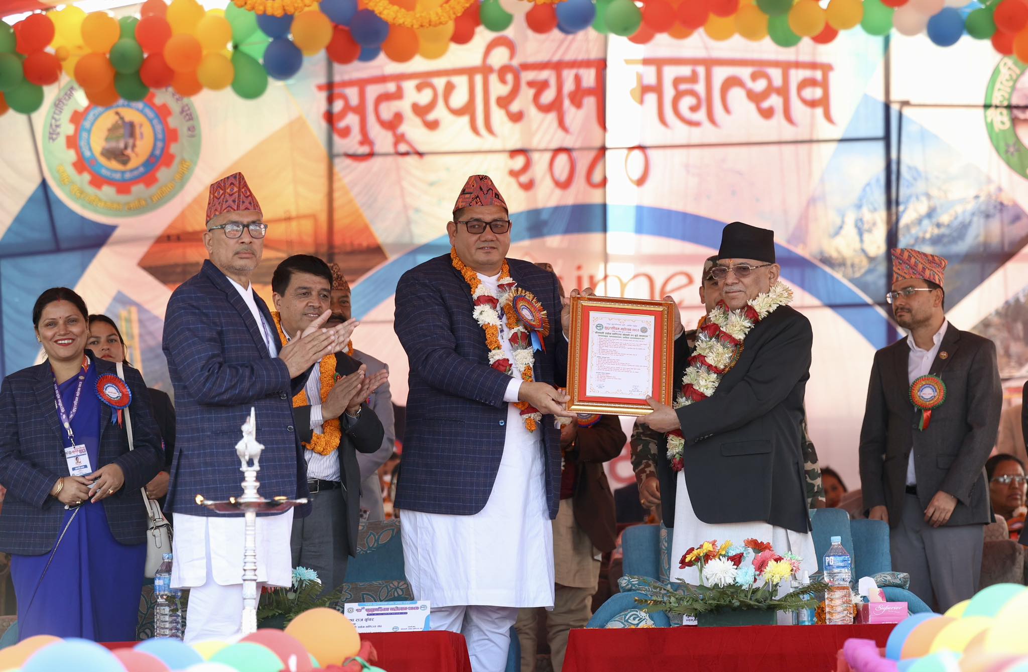 महोत्सवको प्रधानमन्त्री दाहालले उदघाटन गरेका हुन्। सो अवसरमा उद्योग वाणिज्य संघका अध्यक्ष पुष्पराज कुँवरले १० बुँदे मागसहित प्रधानमन्त्रीलाई १० किलोको माला लगाएका छन्।कैलाली उद्योग वाणिज्य संघले २०६३ सालदेखि धनगढीमा सुदूरपश्चिम महोत्सव आयोजना गर्दै आएको छ। शुक्रबार महोत्सवको १७ औं संस्करणको अवसरमा प्रधानमन्त्री दाहाललाई १० बुँदे मागपत्र बुझाइएको छ।