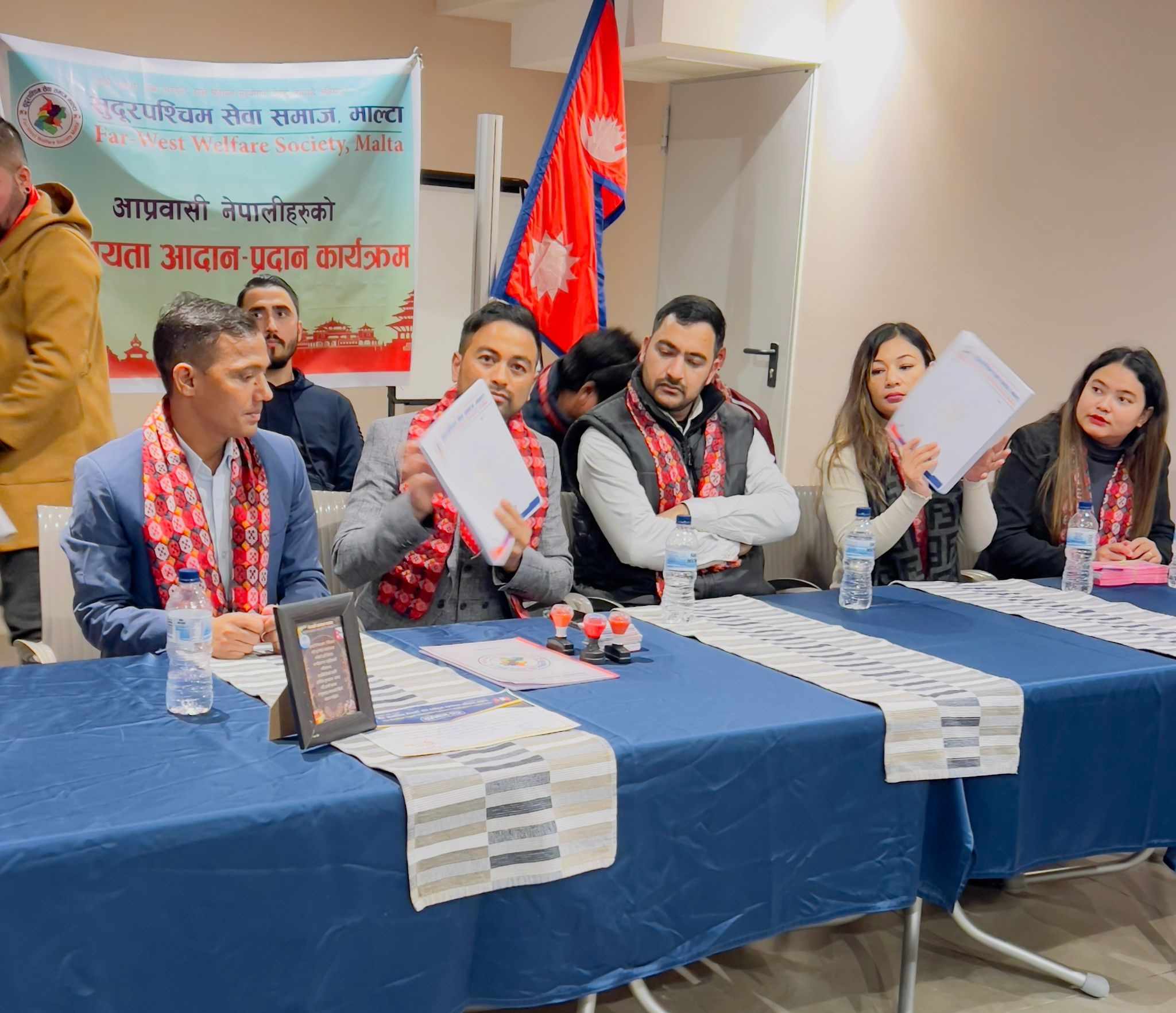 नेपालबाट सुदूरपश्चिम सेवा समाज माल्टाका लागि विधान निमार्ण गरी विधान लगायतका आवश्यक सामाग्री लेटरप्याड, सदस्यताकार्ड, नगदी रसिद्, स्टयामप्याड र ब्यानर बनाई माल्टासम्म ल्याई सहयोग गरेकोमा पत्रकार तथा मानवअधिकारकर्मी धनराज अविरललाई समाजको तर्फबाट धन्यवाद् समेत व्यक्त गरेका थए । अध्यक्ष ठगुन्नाले नेपालमा सामाजिक क्षेत्रमा सक्रिय रहेर काम गरेका अविरलको सामाजिक योगदान र व्यक्तित्वको बारेमा प्रकाशपार्दै प्रंशसा गरेका थिए । उनले भने,“सुदूरपश्चिम सेवा समाज माल्टालाई संस्थागत विकास गर्दै प्रभावकारी रुपमा अगाडी बढाउनको लागि धनराज अविरललाई आजको कार्यक्रमबाट संस्थाको प्रवक्ताको जिम्मेवारी प्रदान गरिएको छ ।”