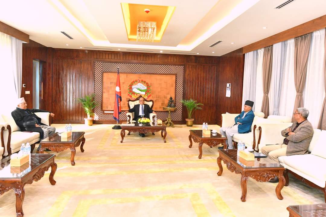 काठमाडौं । प्रमुख तीन दलका शिर्ष नेताहरूका बिचमा भेटबार्ता भएको छ।प्रधानमन्त्री पुष्पकमल दाहाल, नेकपा एमालेका अध्यक्ष केपी शर्मा ओली तथा नेपाली कांग्रेसका सभापति शेर बहादुर देउबाको बिचमा भेटबार्ता भएको हो ।साथमा सो बैठकमा कांग्रेसका प्रमुख सचेतक रमेश लेखकको पनि उपस्थिति रहेको थियो। आसन्न राष्ट्रियसभा निर्वाचन र समायिक राजनीतिक बिषयमा छलफल भएको बताईएको छ।